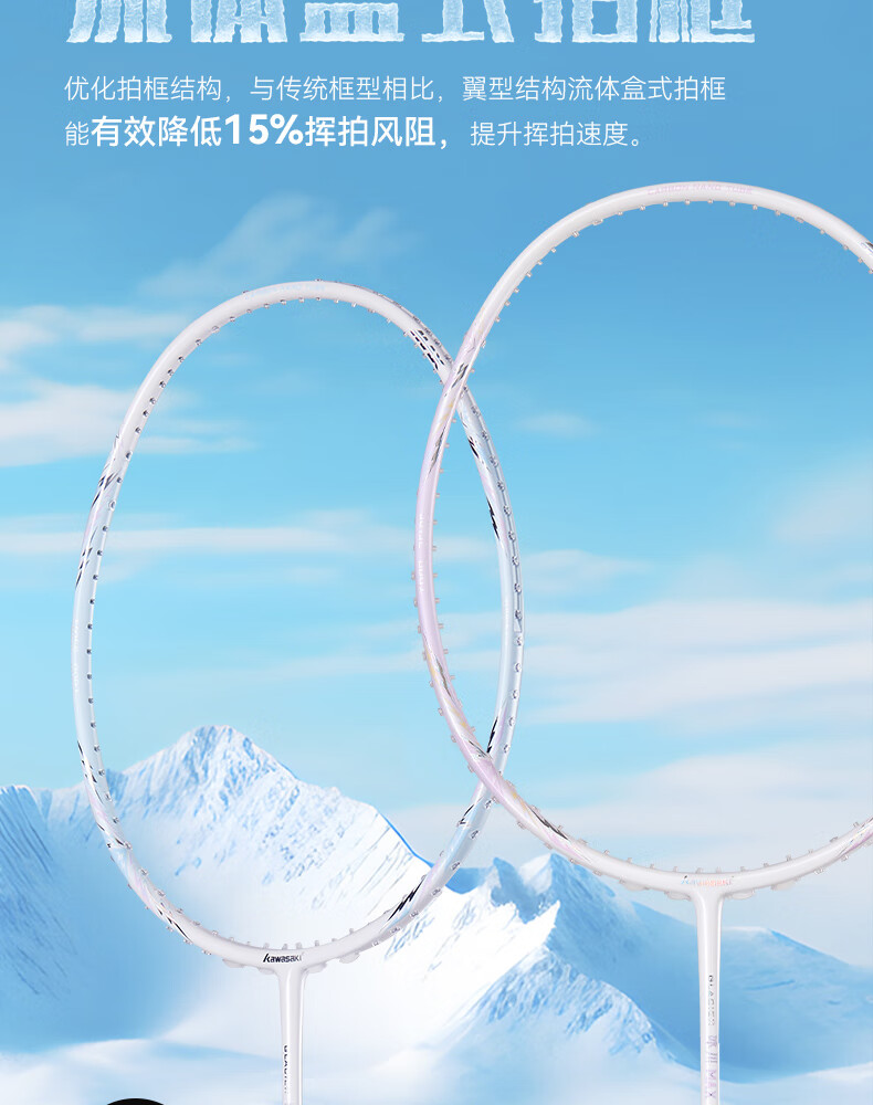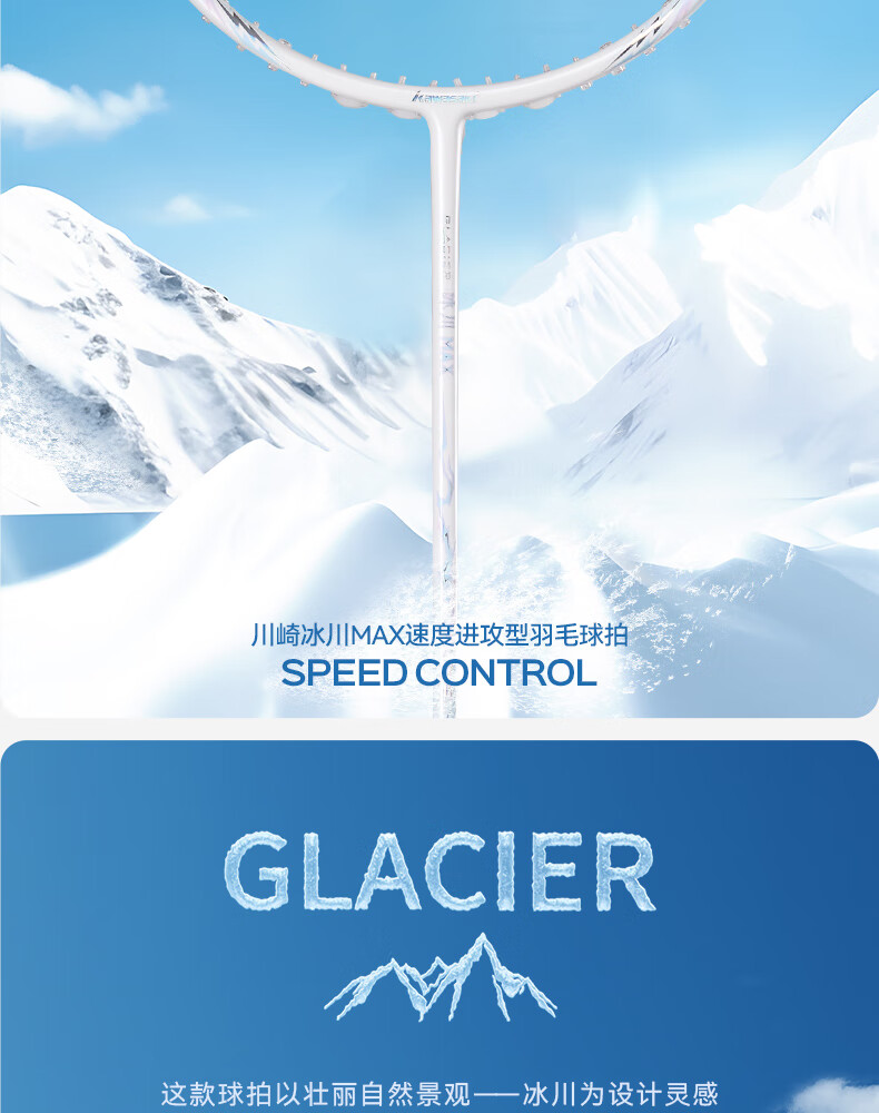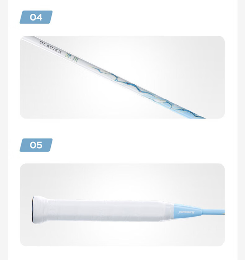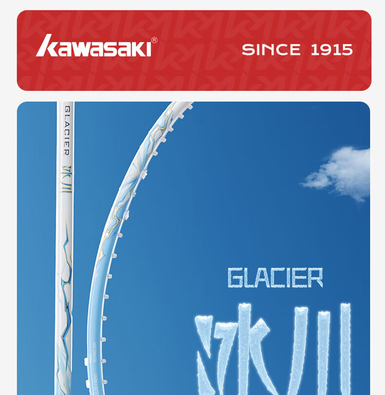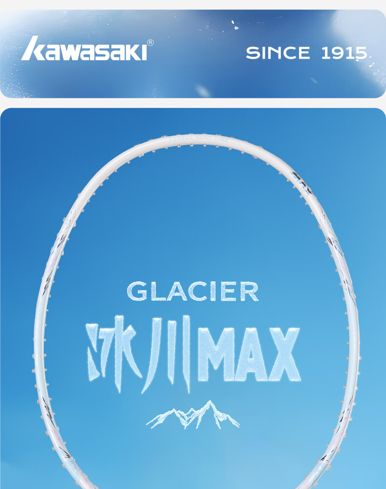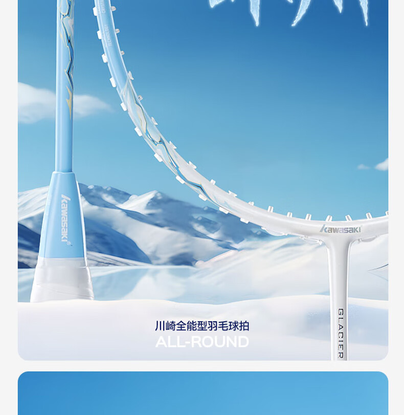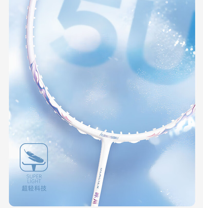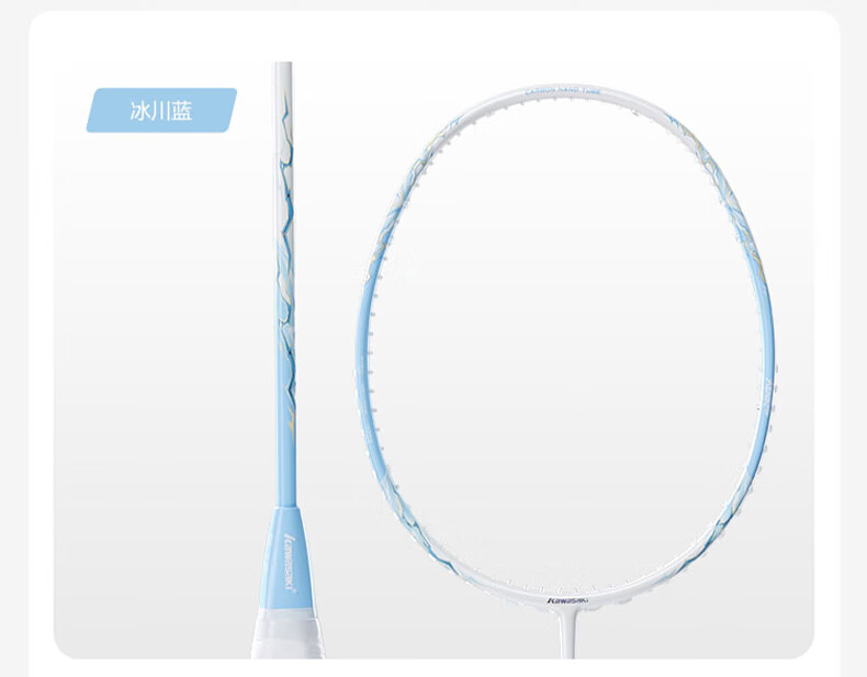 川崎(KAWASAKI)冰川max羽毛球拍碳纤维超轻5U 川崎冰川对拍套装专业训练进阶进攻 【单拍】冰川蓝(白线) 成品拍(备注磅数-默认25磅)