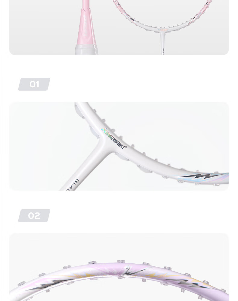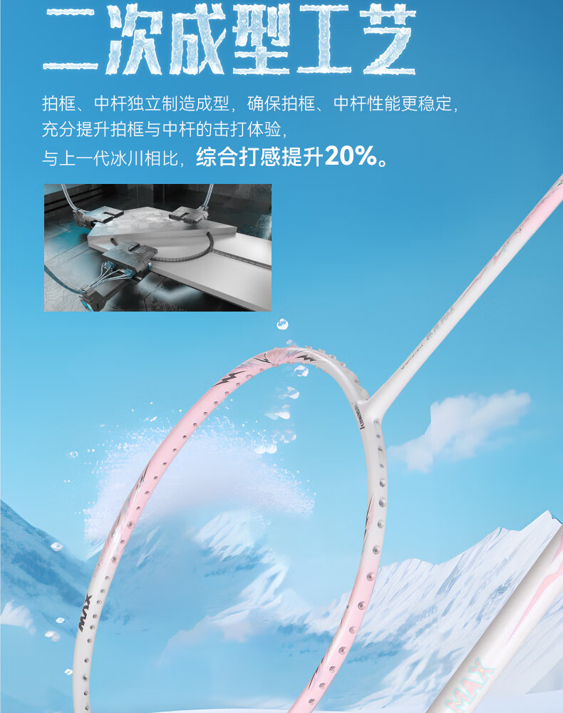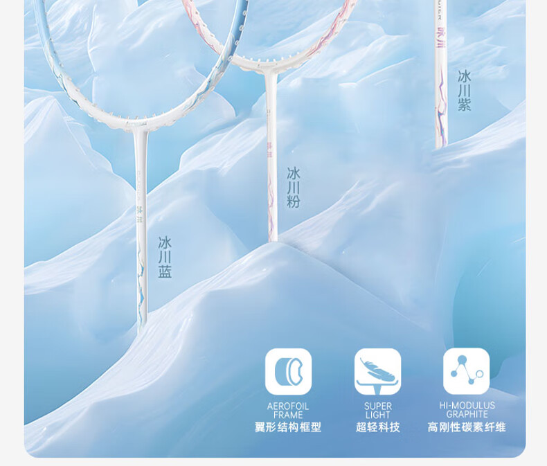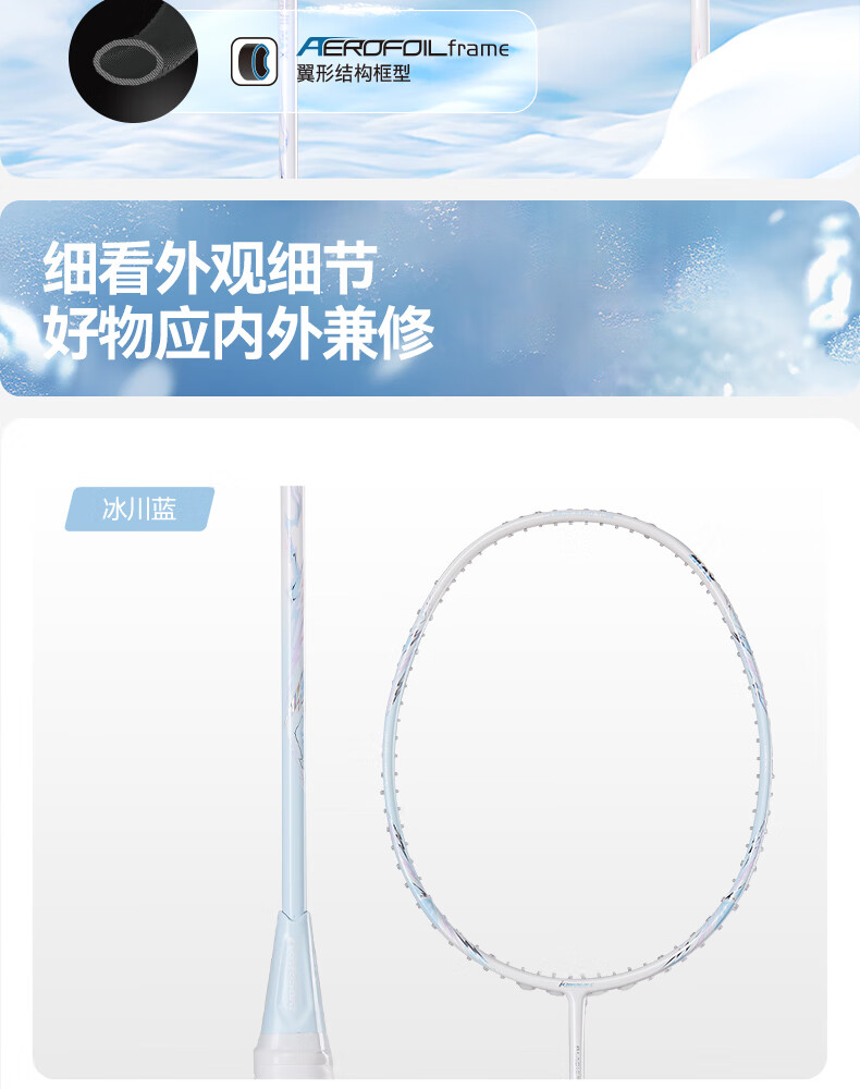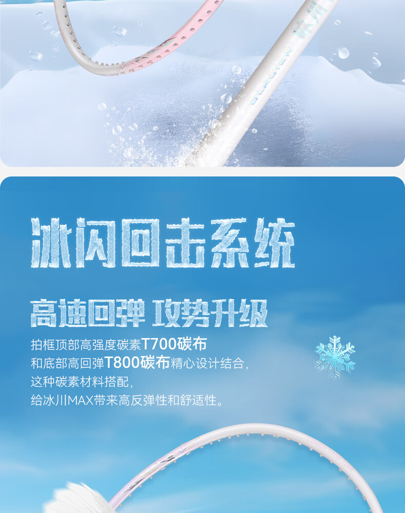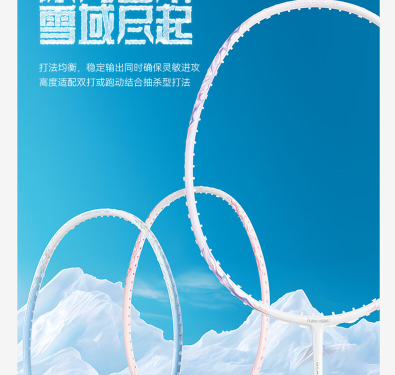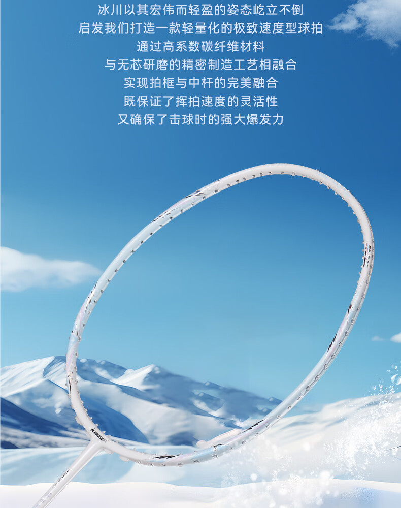 川崎(KAWASAKI)冰川max羽毛球拍碳纤维超轻5U 川崎冰川对拍套装专业训练进阶进攻 【单拍】冰川蓝(白线) 成品拍(备注磅数-默认25磅)