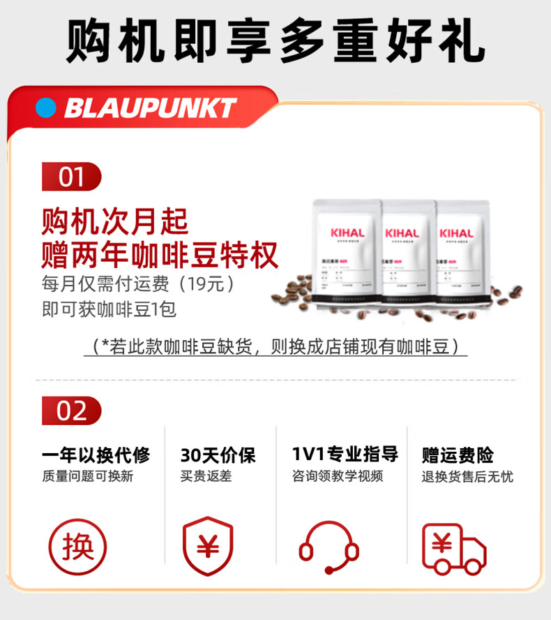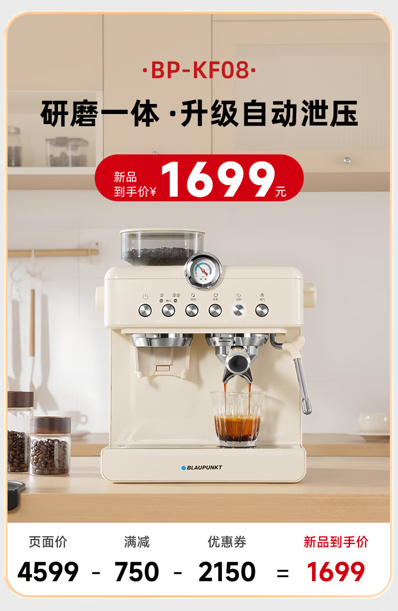 BLAUPUNKT【国家补贴15%】2025新品蓝宝研磨一体咖啡机58MM冲煮头家用小型浓缩意式美式全半自动咖啡机KF08 KF08官方标配