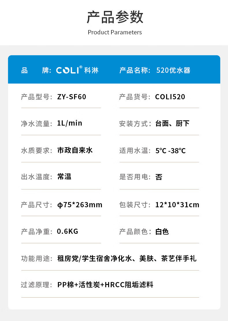 COLI 520优水器洁净皮肤小型净水器创意礼品爸爸爷爷舅舅生日礼物不用电0废水 520优水器