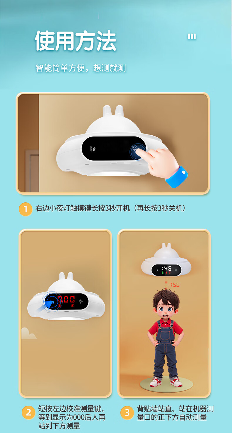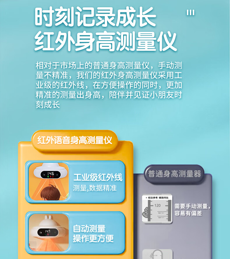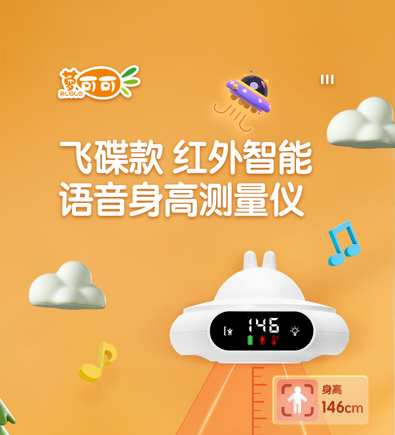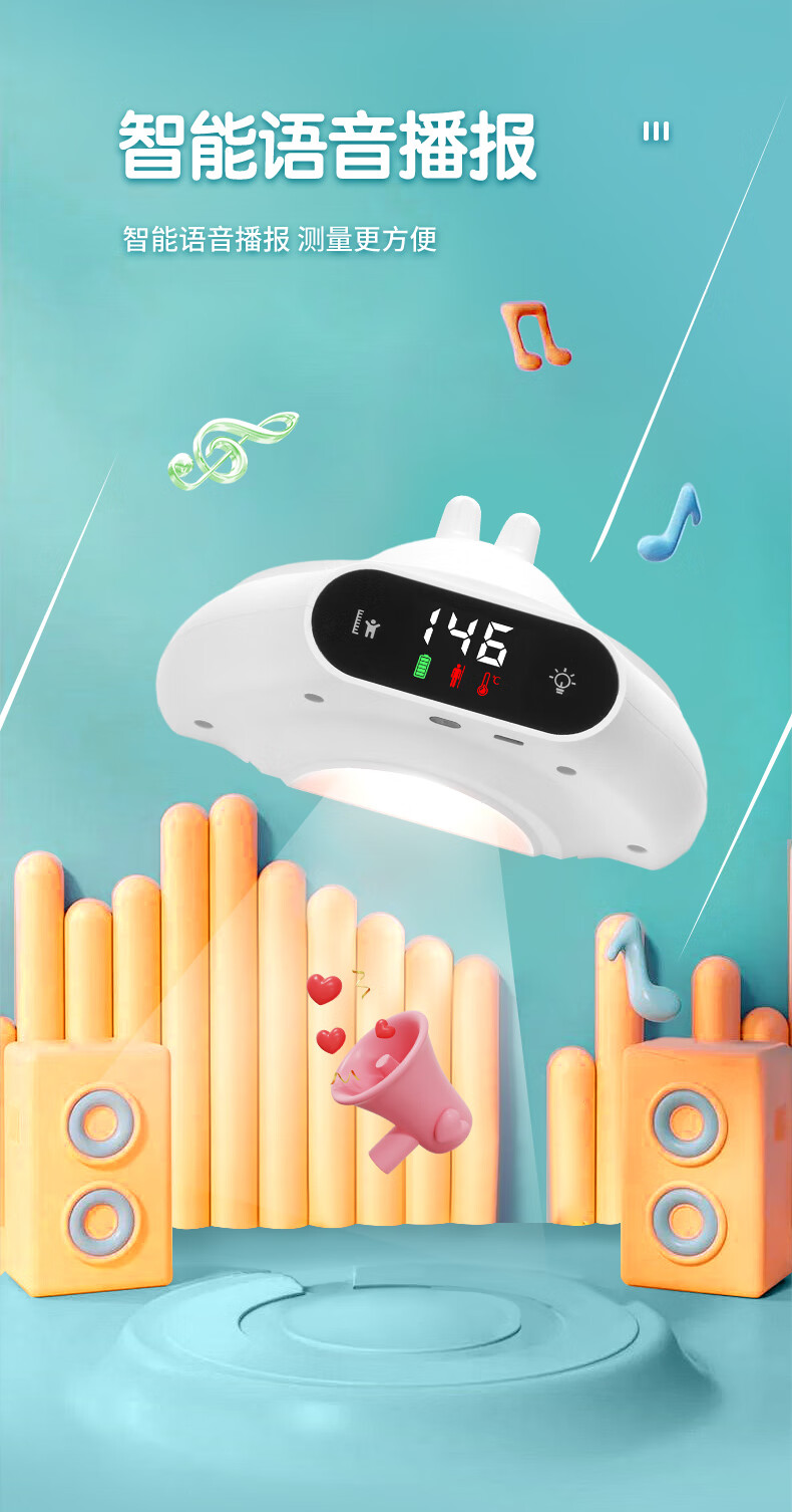 萝可可智能红外线精准电子量身高测量仪儿童贴墙纸量高神器语音播报非体重秤 【语音款】小米白