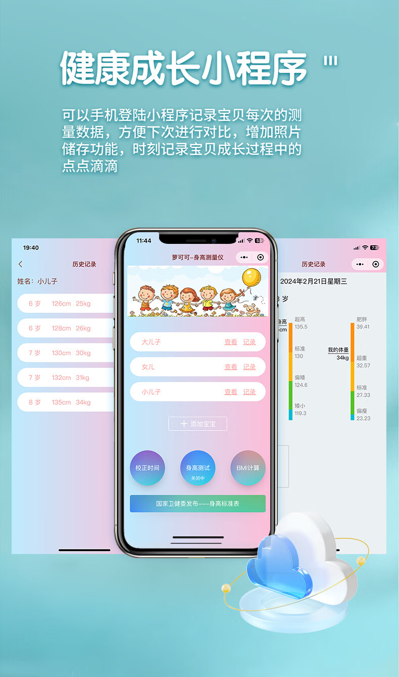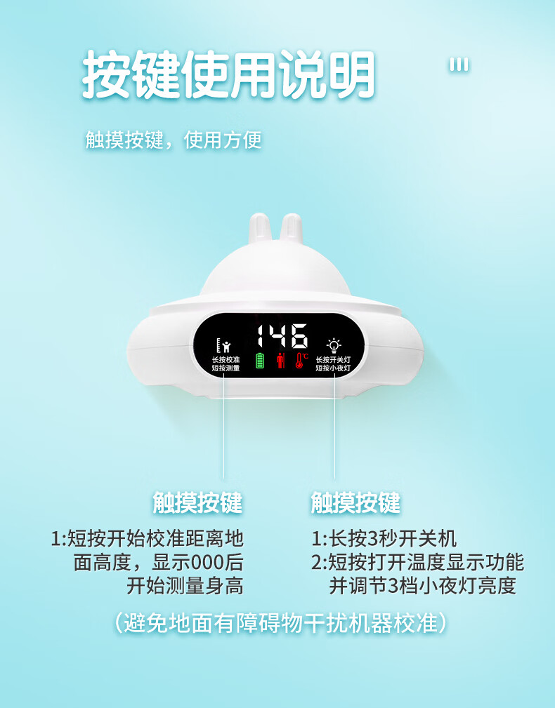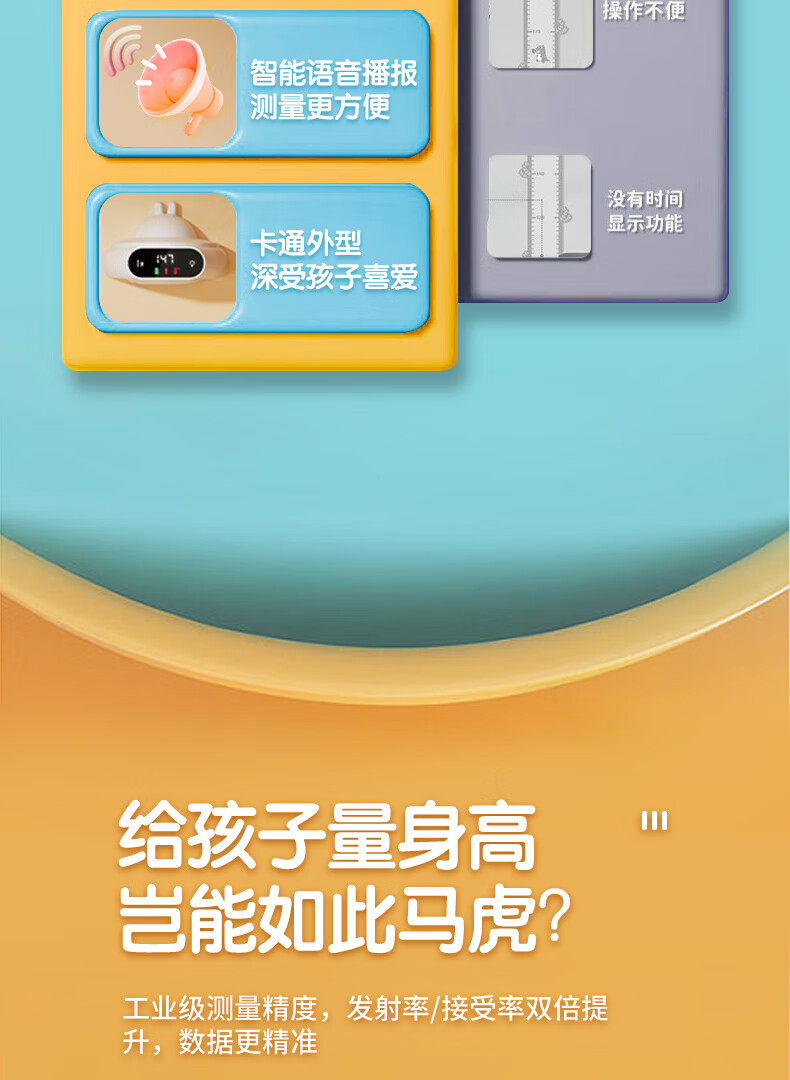 萝可可智能红外线精准电子量身高测量仪儿童贴墙纸量高神器语音播报非体重秤 【语音款】小米白
