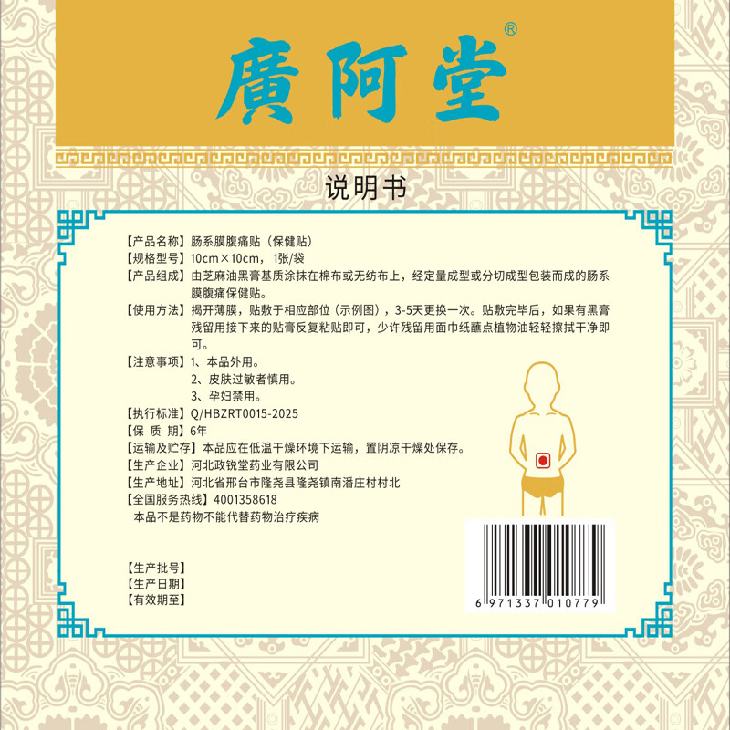 廣阿堂小儿肠系膜淋巴结肿大儿童脐周疼痛腹痛保健贴【非物质文化遗产】 1份(4贴)