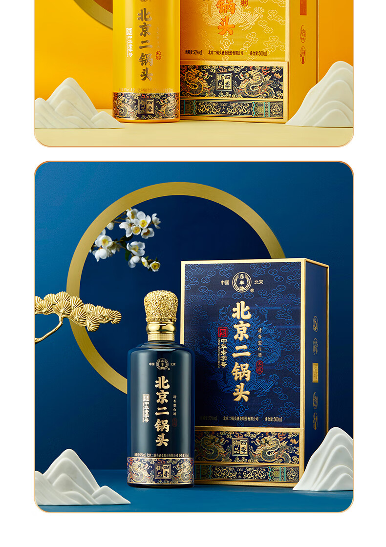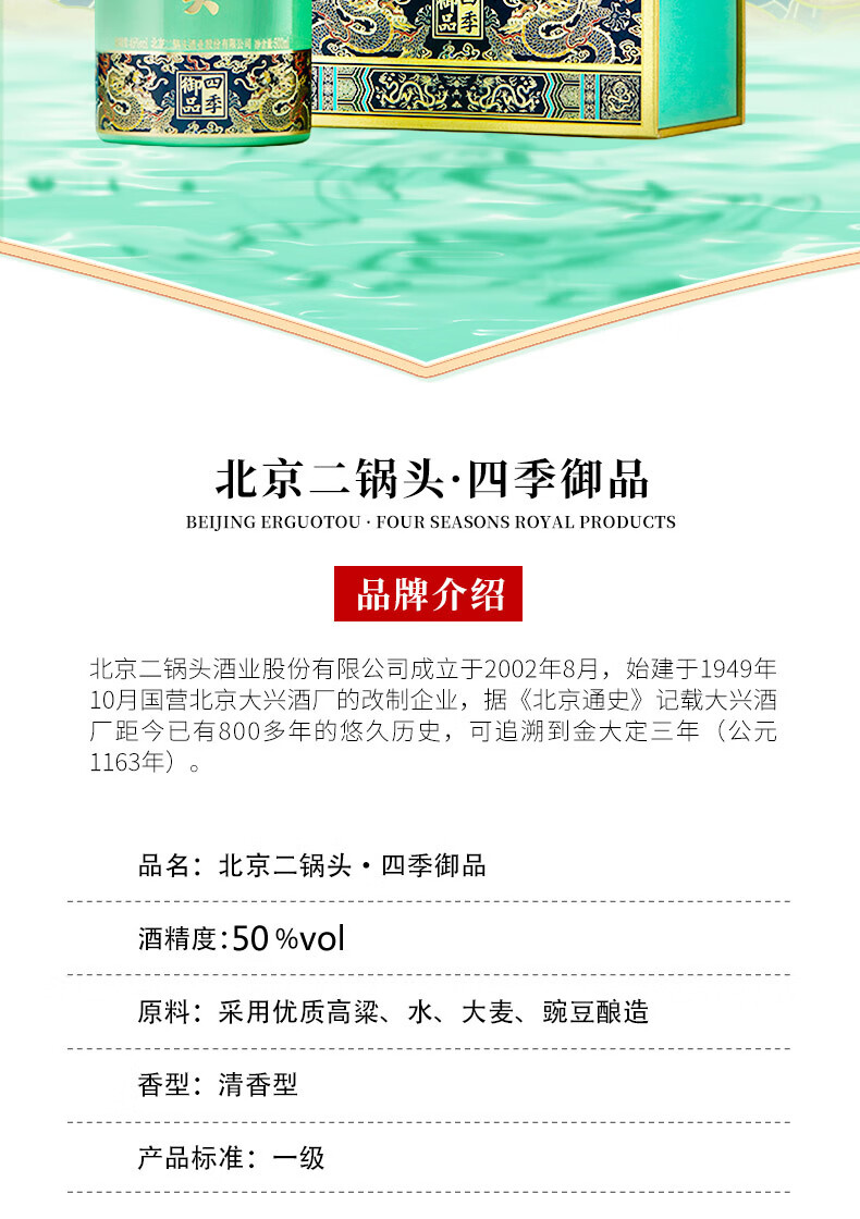永丰北京二锅头白酒 四季御品50度清香型 50度 500mL 1瓶 礼盒-夏