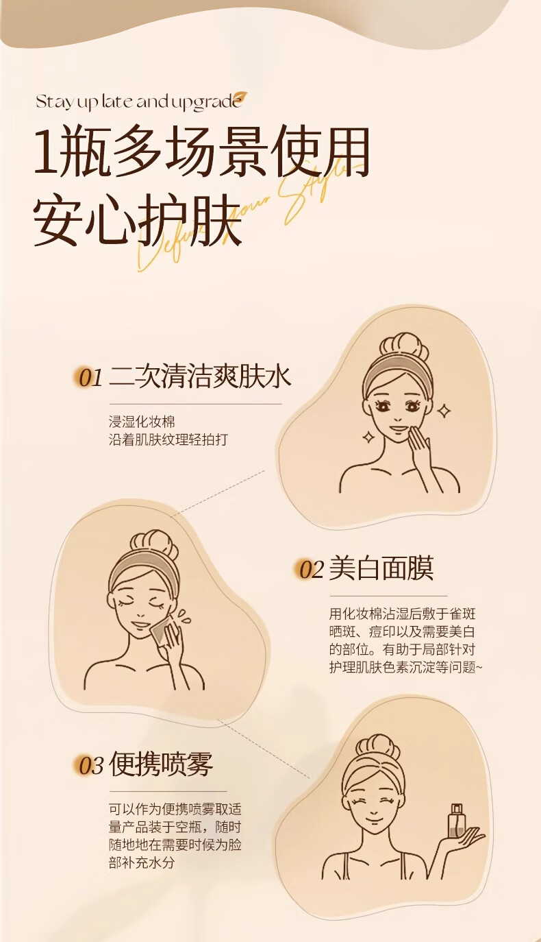 卡咪蛙发光爽肤水补水保湿湿敷水护肤水抗皱紧致护肤化妆去黄提亮精华水 日护夜养熬夜急救【精粹水3瓶】