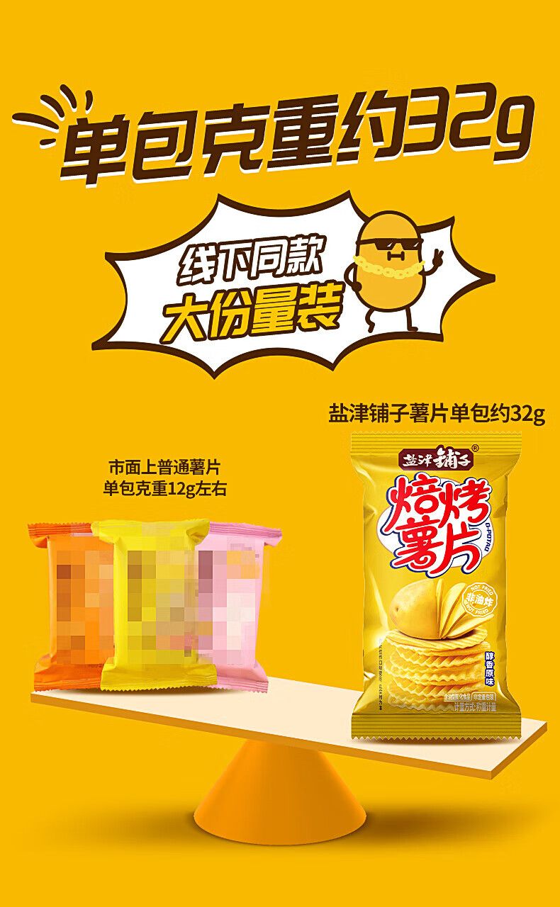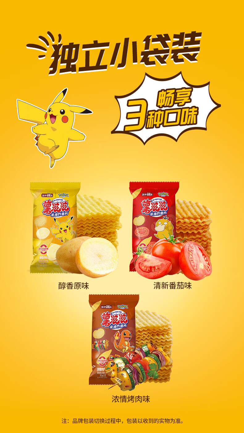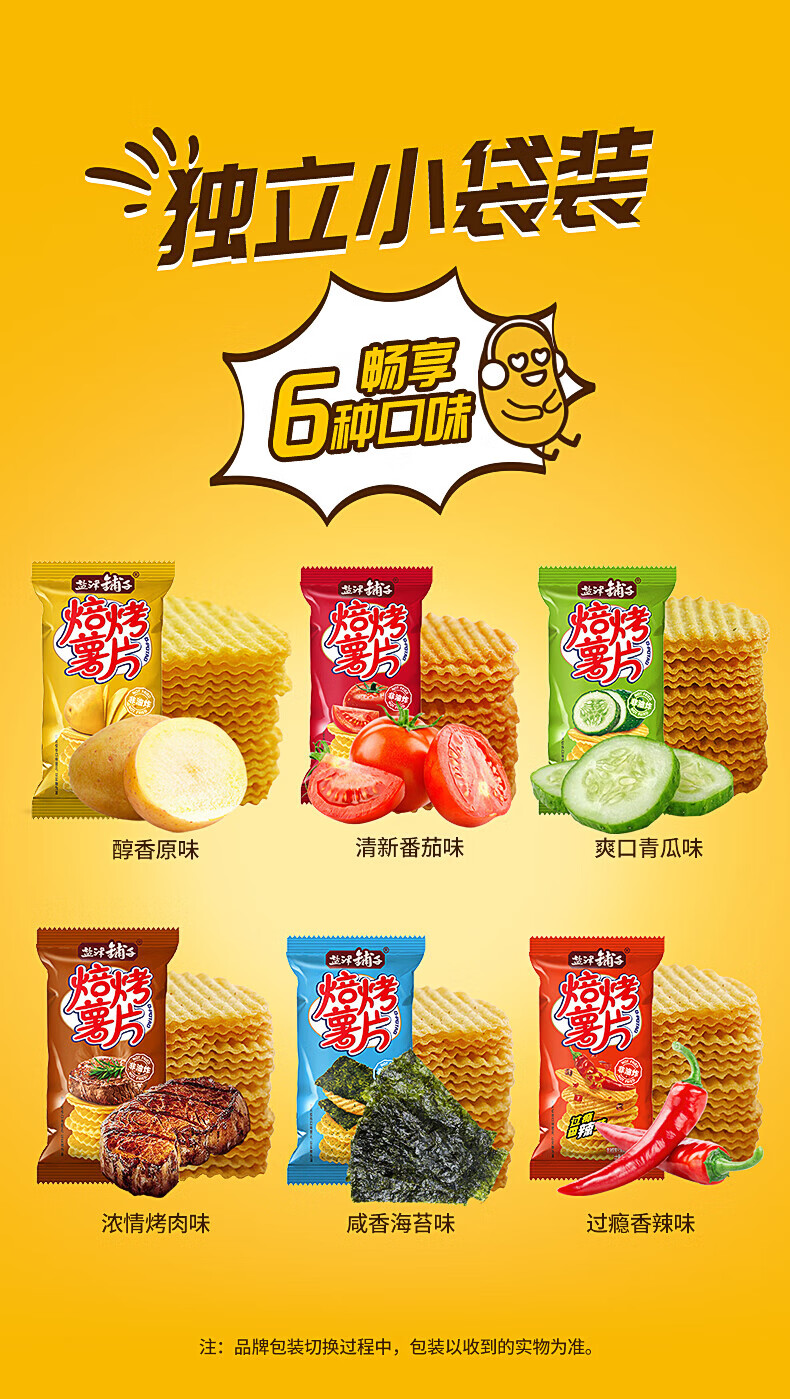 盐津铺子 非油炸薯片薯滋滋 休闲膨化零食品 剧解馋休闲小吃波浪土豆片 14包(原味+番茄+烤肉/共490g)
