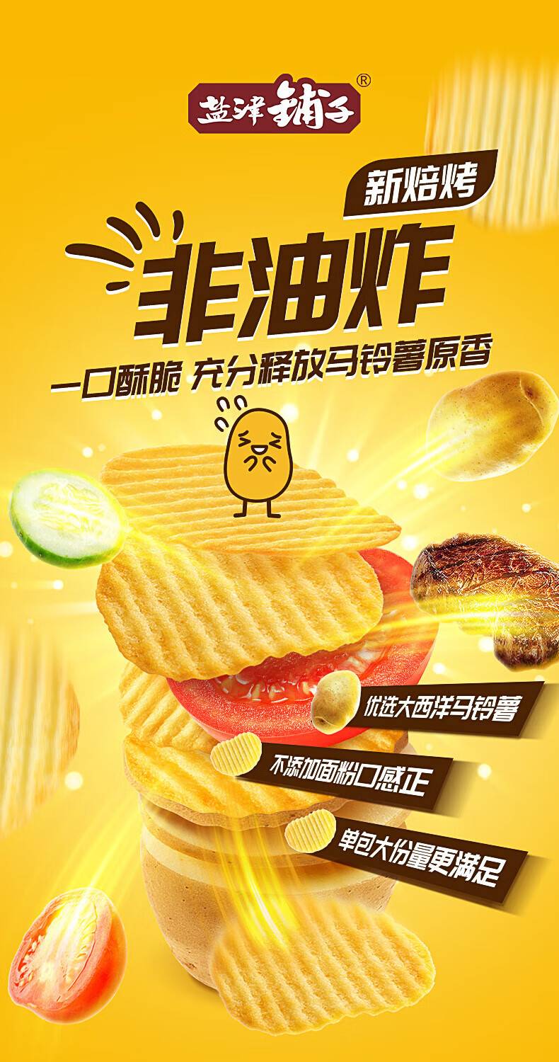 盐津铺子非油炸薯片薯滋滋追剧解馋 休闲小吃波浪土豆片儿童休闲零食 14包约490g(原味+番茄+烤肉)