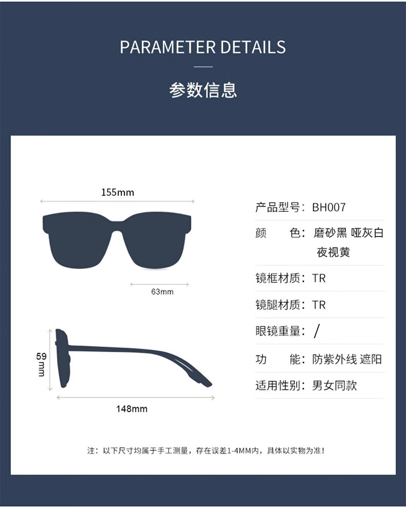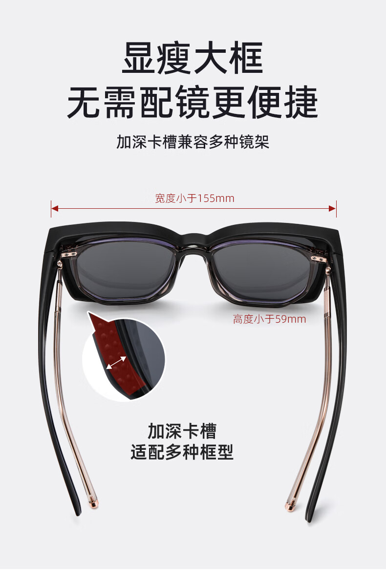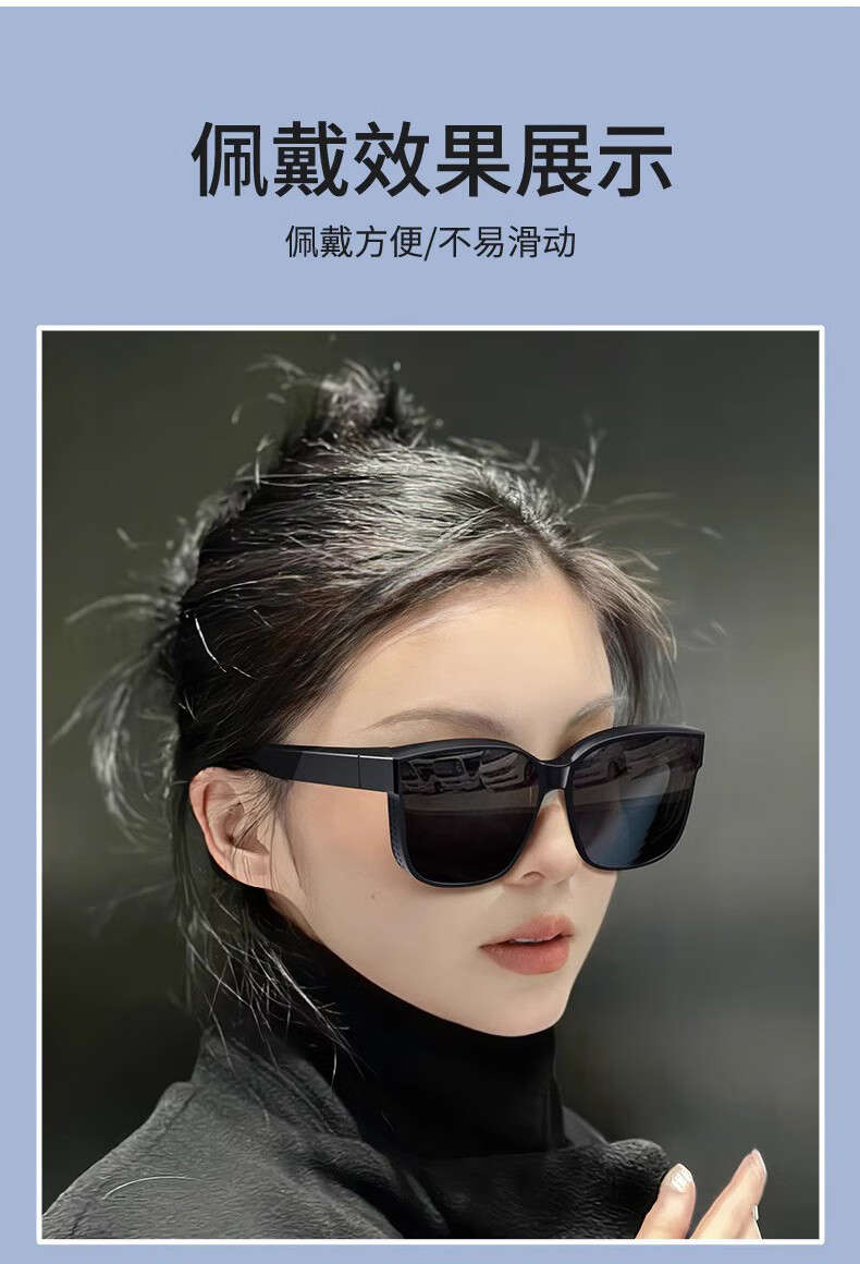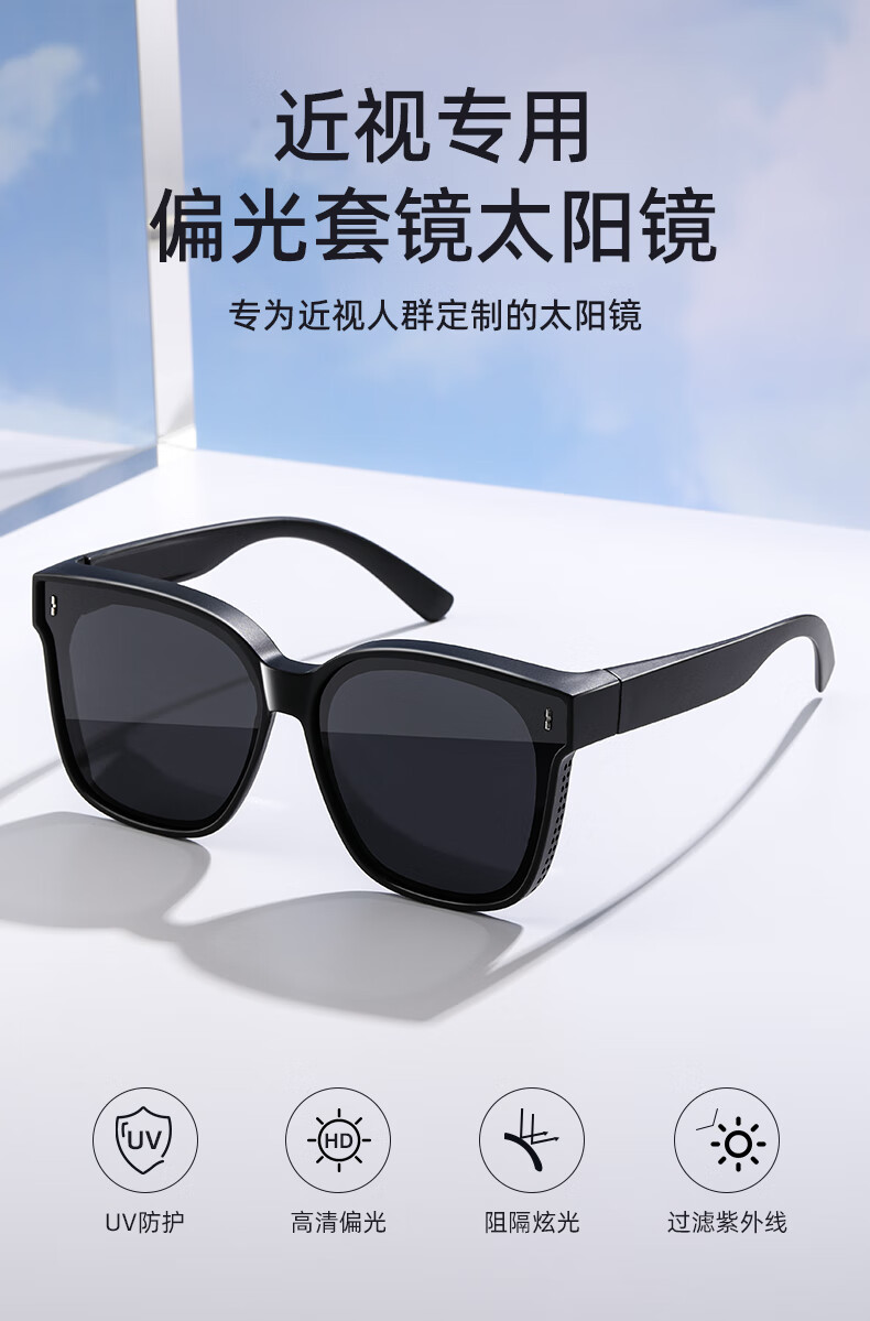 mikibobo太阳镜 墨镜男女 口袋折叠 近视专用套镜 开车防紫外线UV400 折叠云镜黑