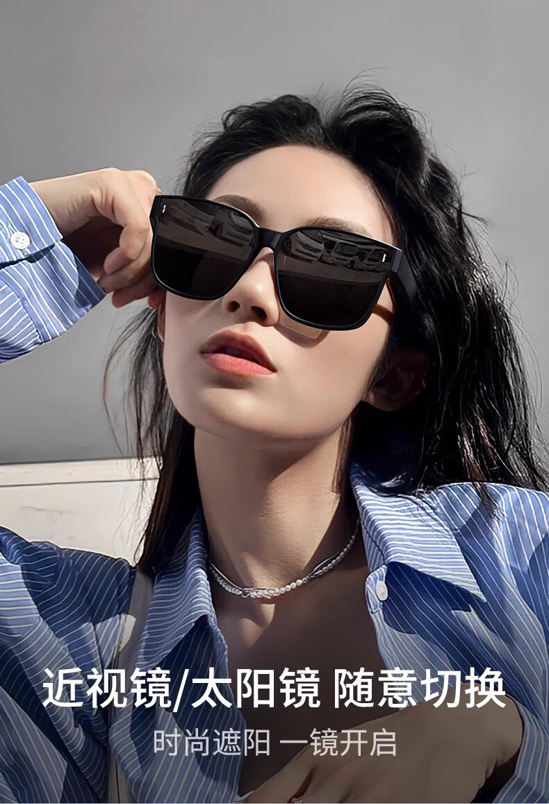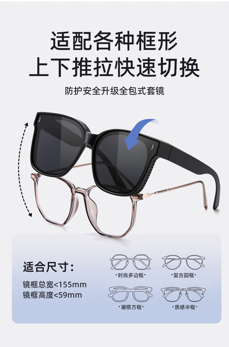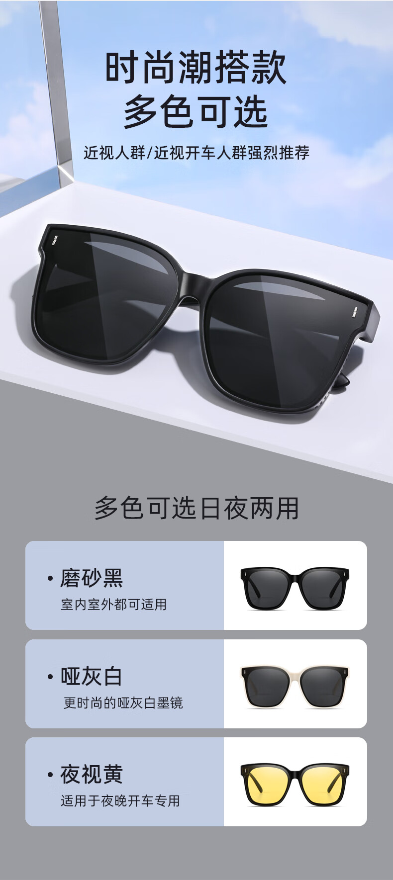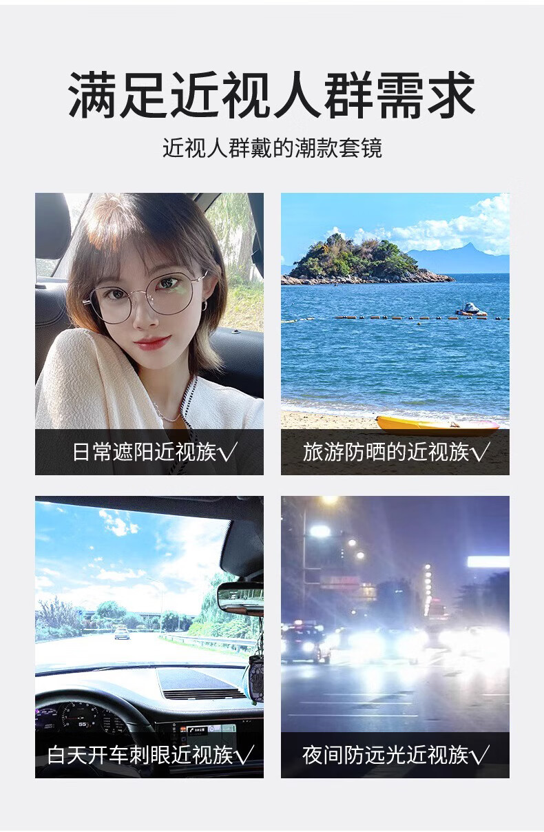 mikibobo太阳镜 墨镜男女 口袋折叠 近视专用套镜 开车防紫外线UV400 折叠雾透灰