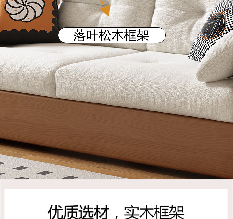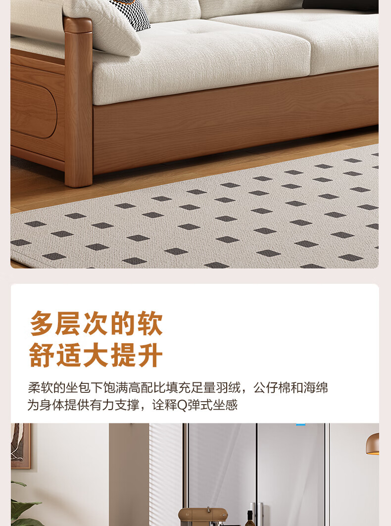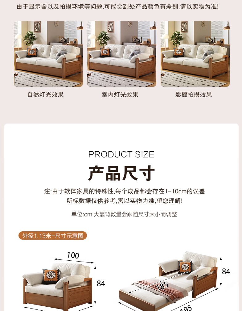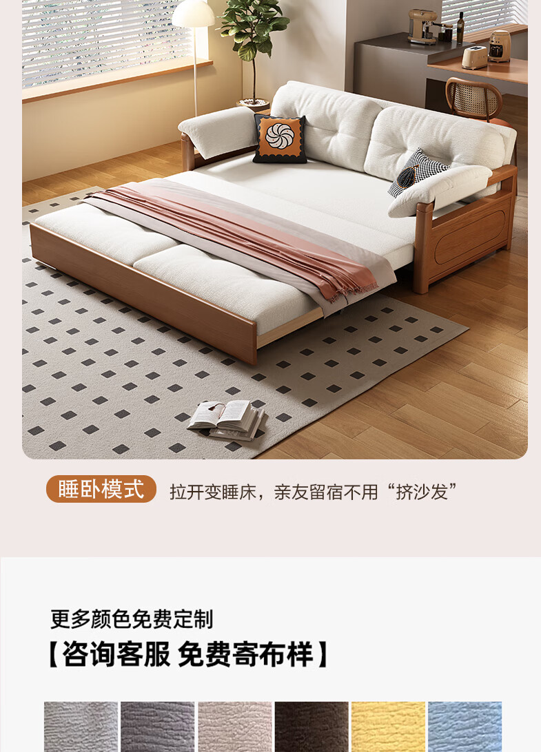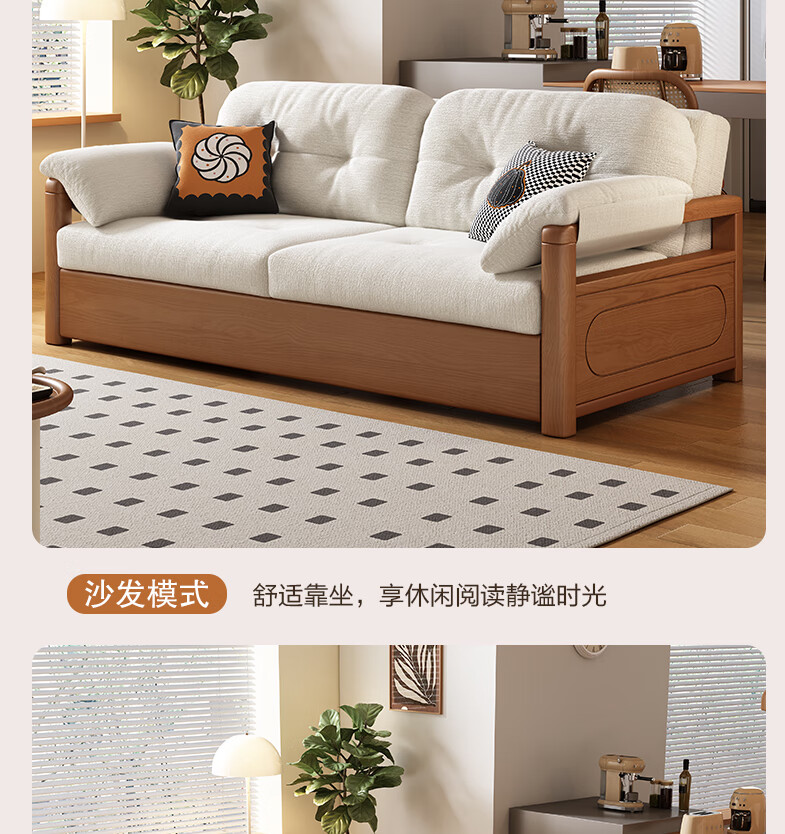 莘联可折叠实木沙发床坐卧一体两用小户型客厅高级感中古风雪尼尔沙发 外径:1.13m(无储物)白蜡木沙发床 高弹海绵款(加厚雪尼尔)
