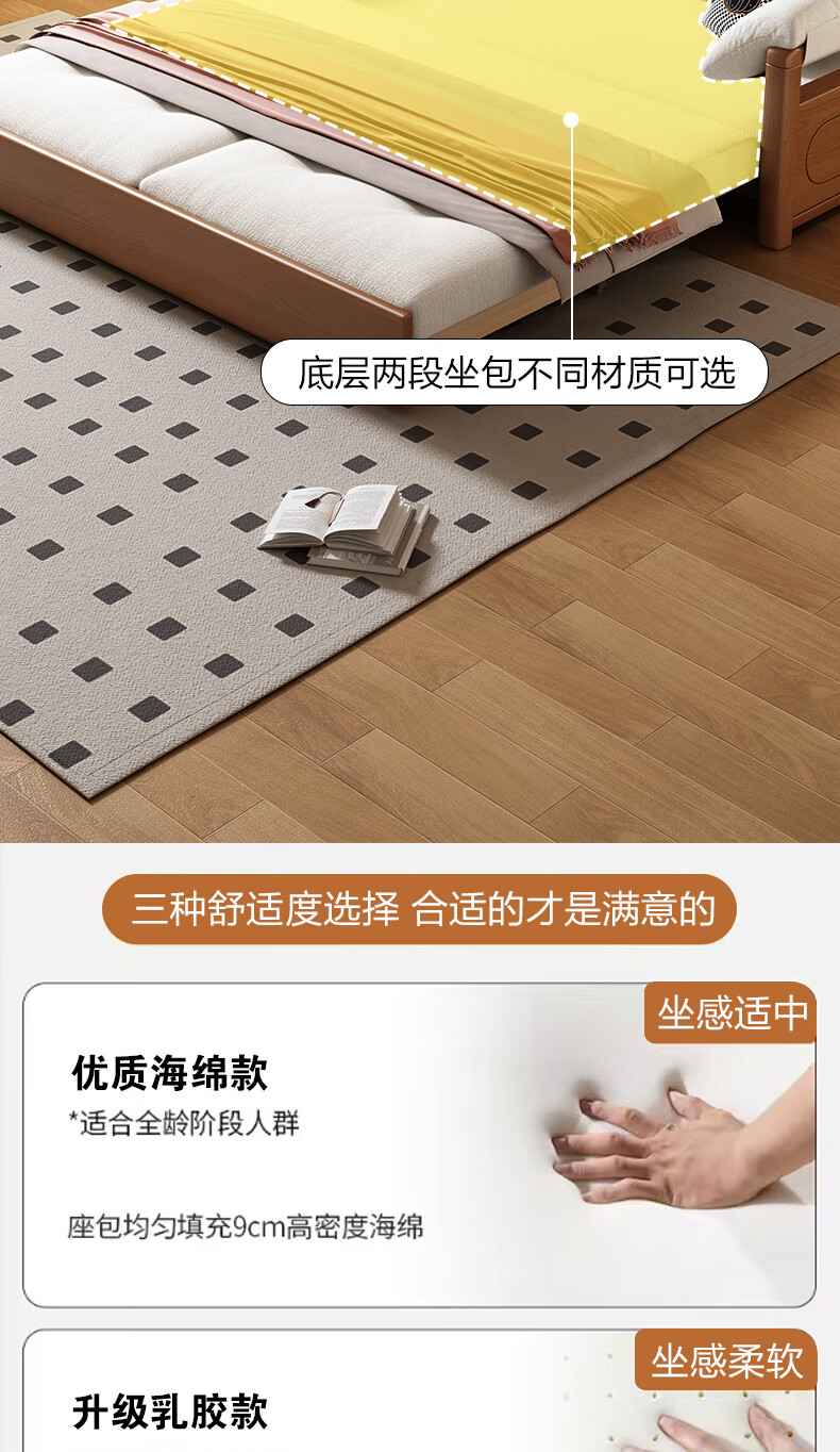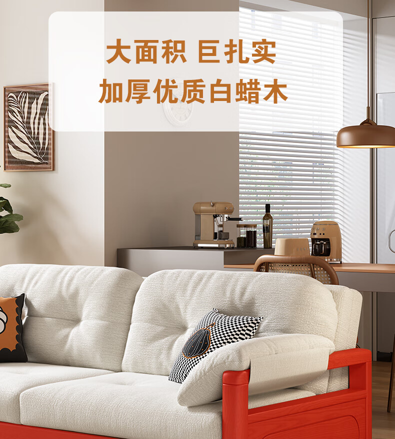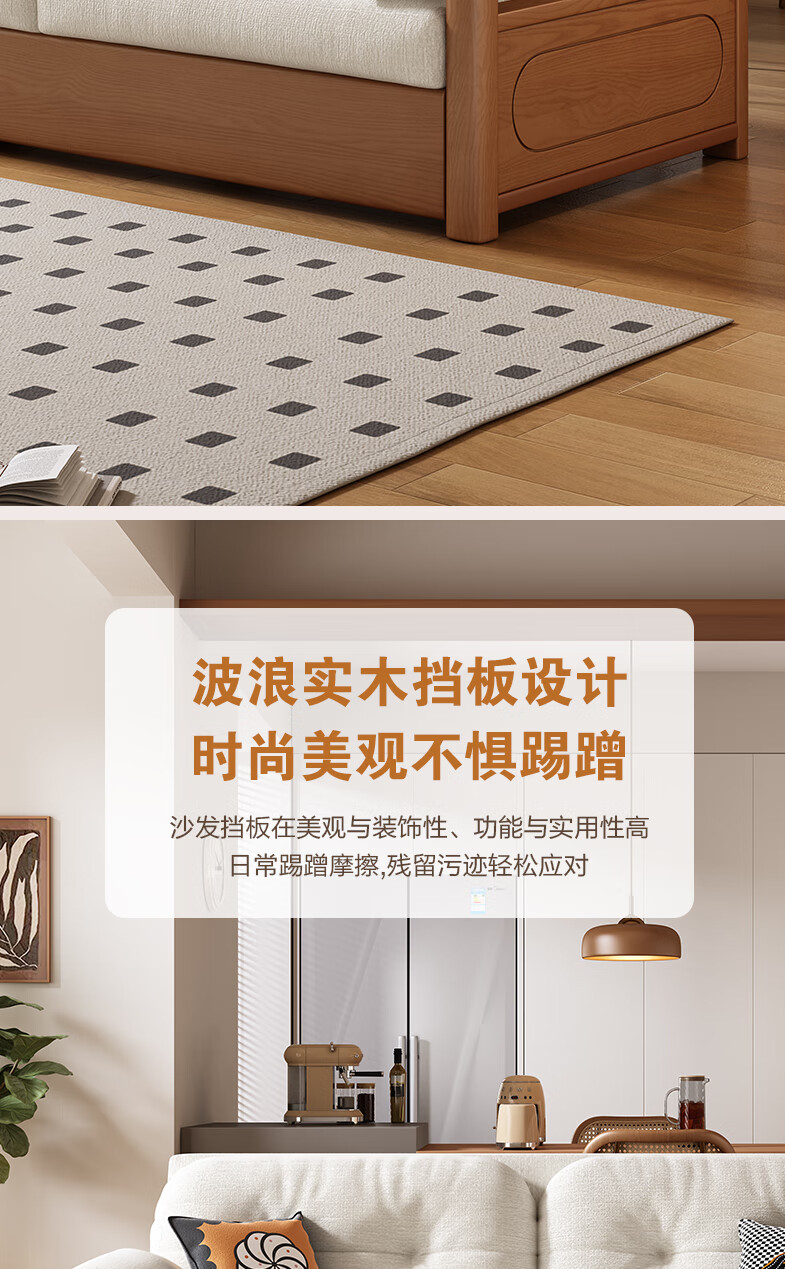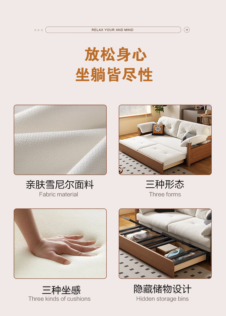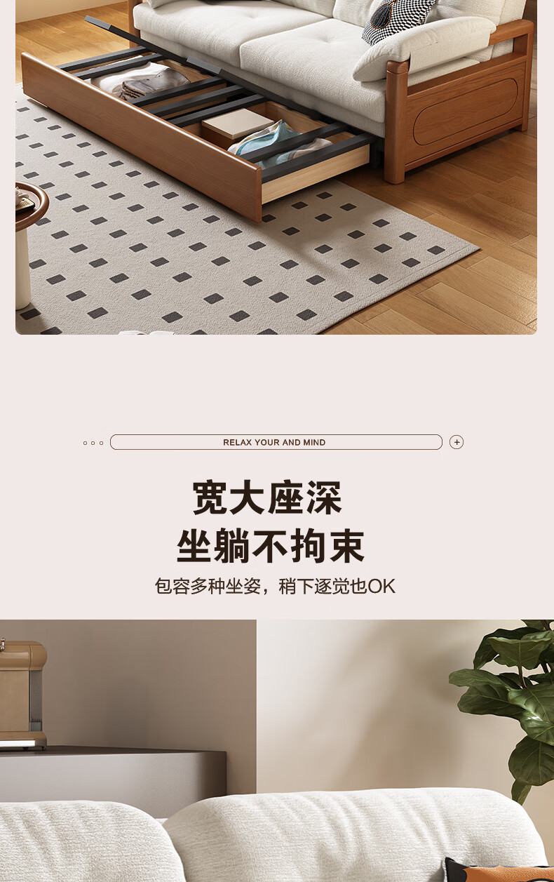 莘联可折叠实木沙发床坐卧一体两用小户型客厅高级感中古风雪尼尔沙发 外径:1.13m(无储物)白蜡木沙发床 高弹海绵款(加厚雪尼尔)