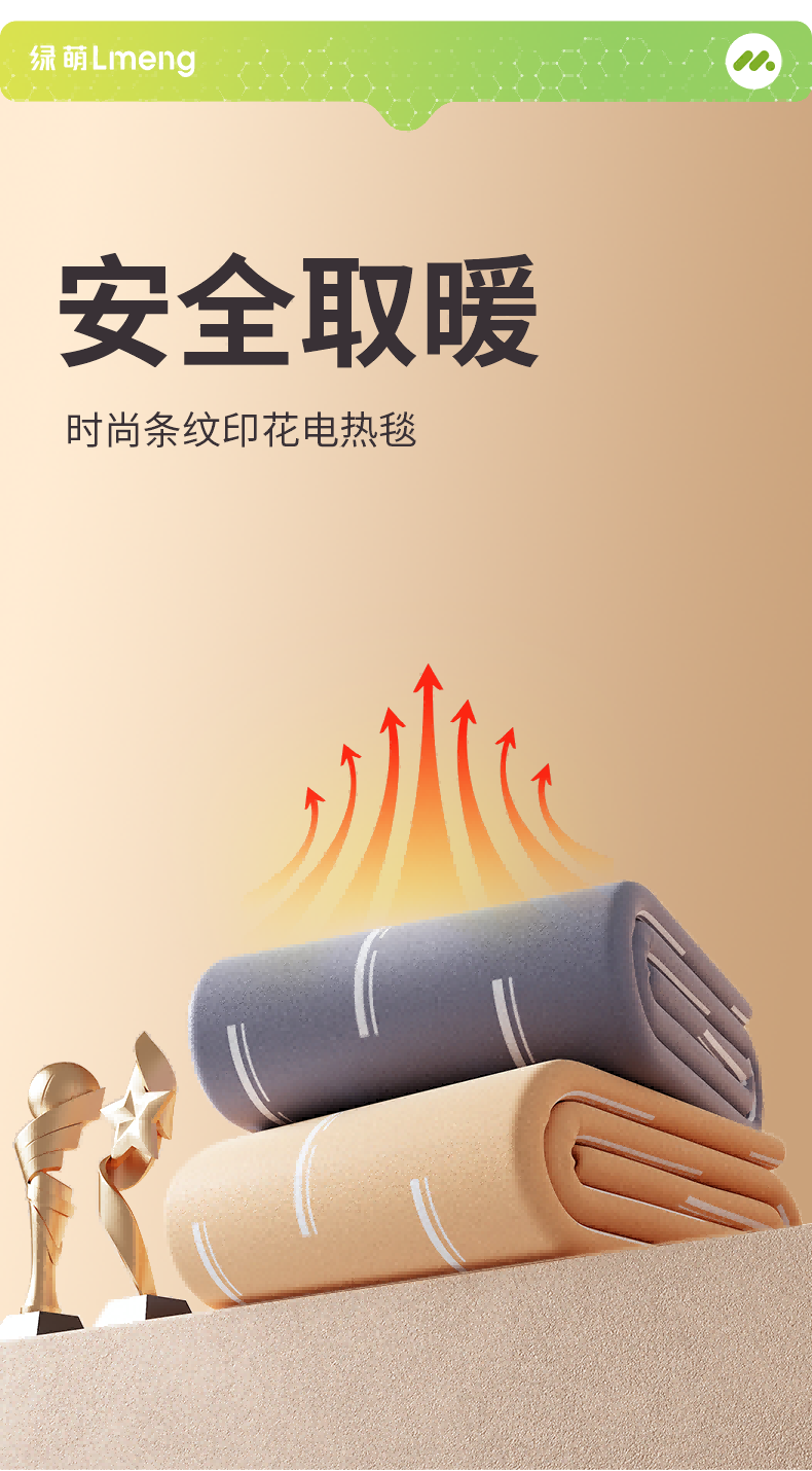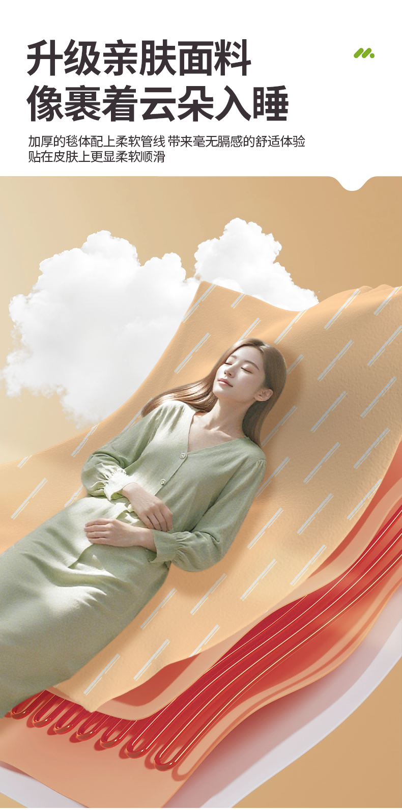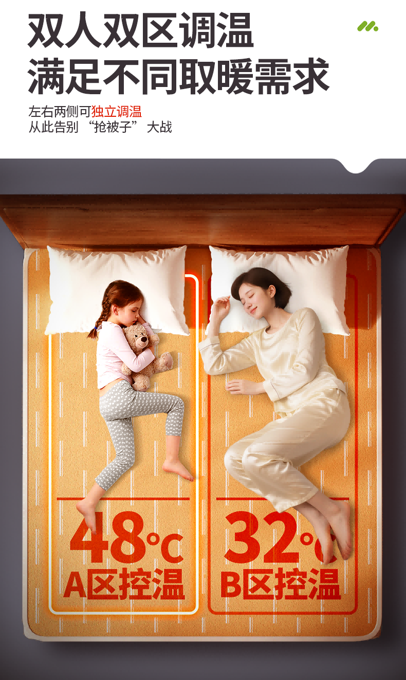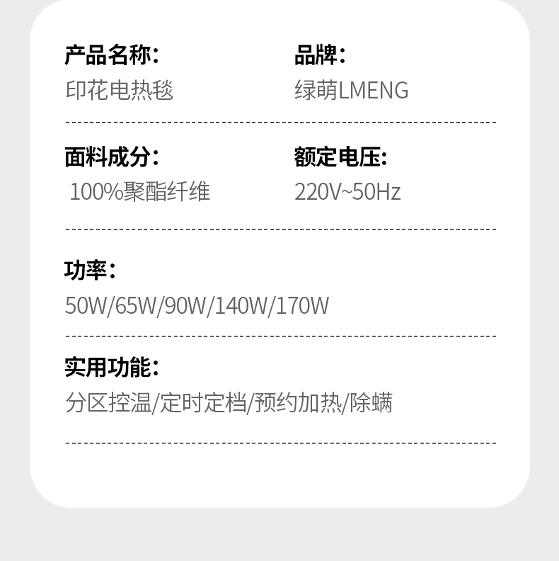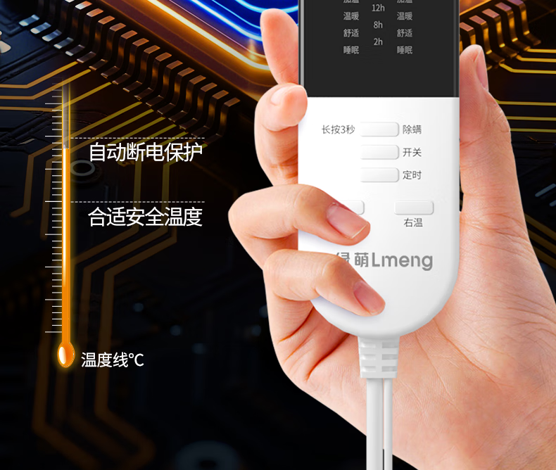 LMENG绿萌电热毯双人双控调温黄印花智能电褥子家用可拆卸水洗1.8*1.5m