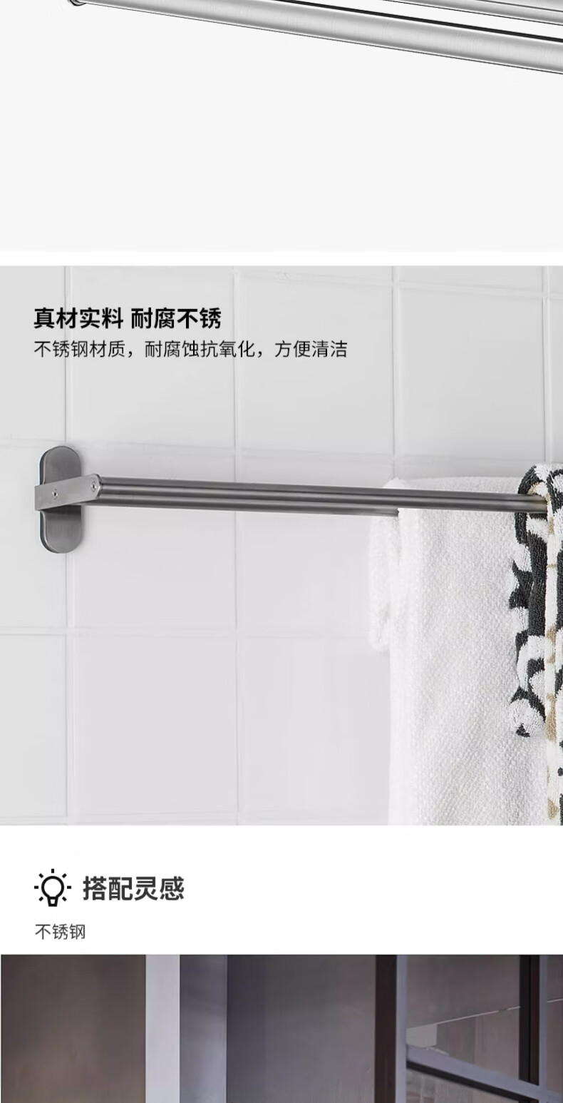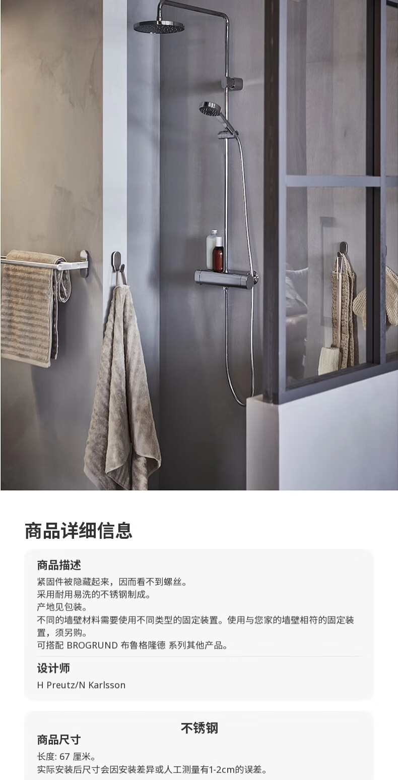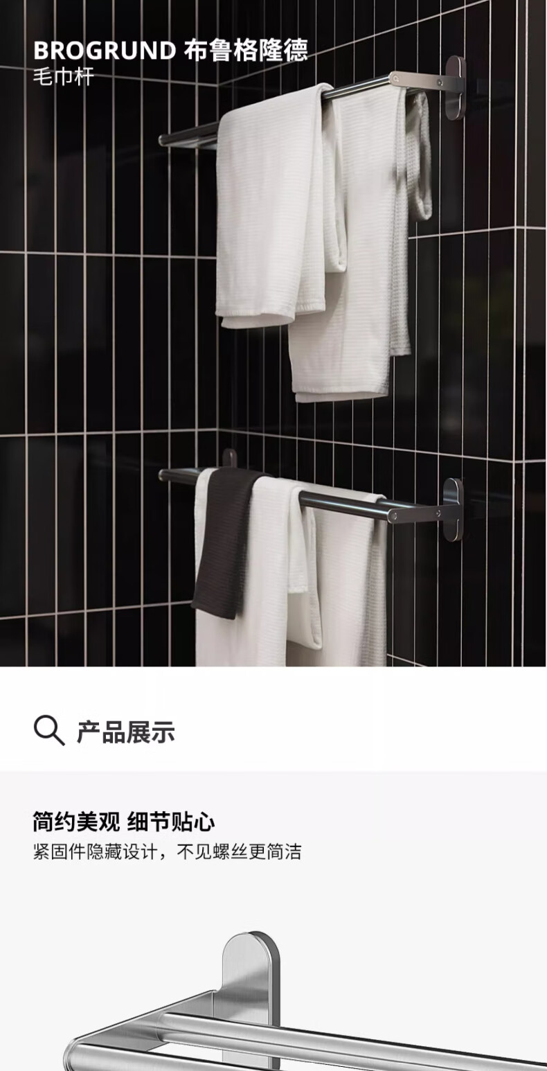宜家(IKEA)BROGRUND布鲁格隆德毛巾杆现代北欧不锈钢浴巾架简约 毛巾杆不锈钢67cm