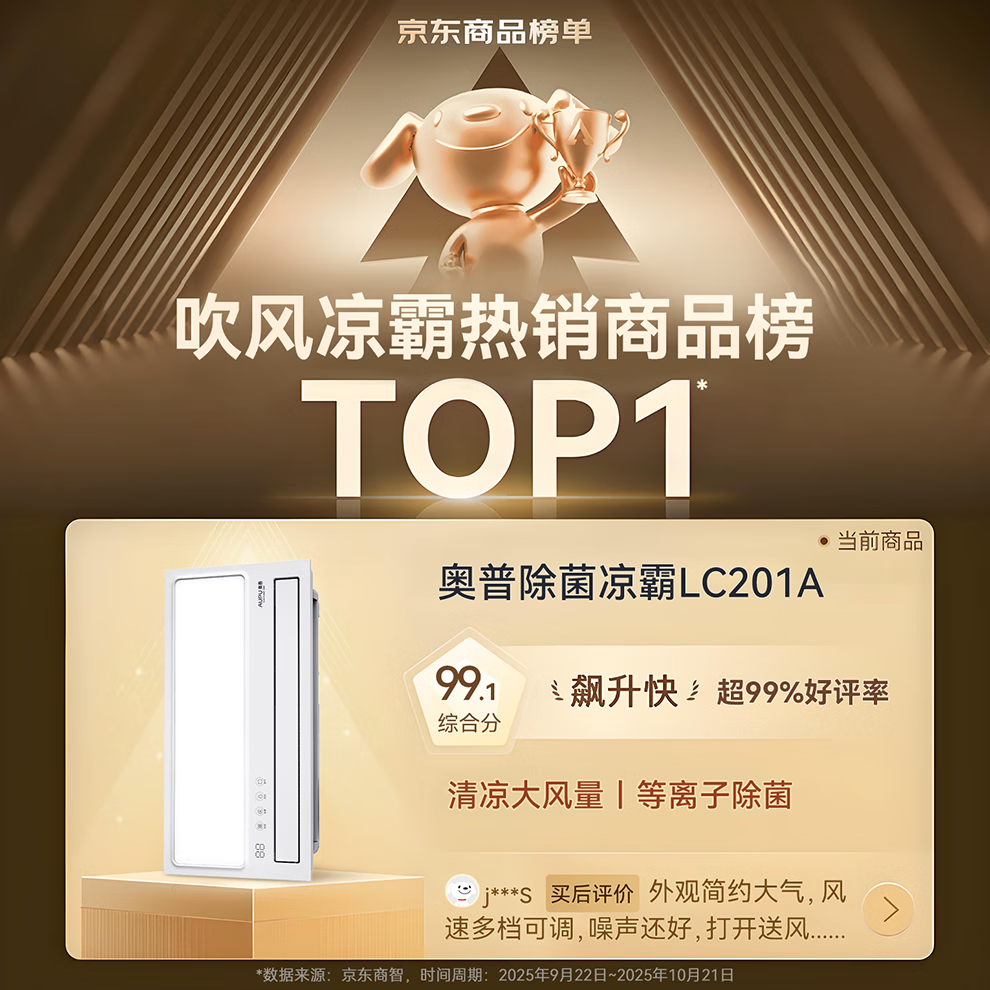 奥普凉霸【政府补贴】厨房照明风扇大风力遥控冷霸空调除菌LC201A