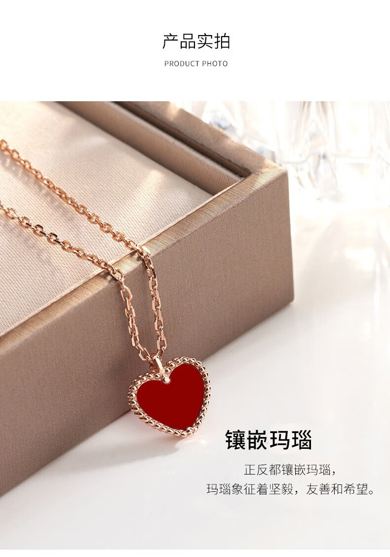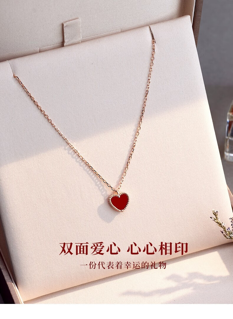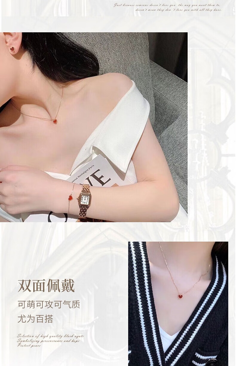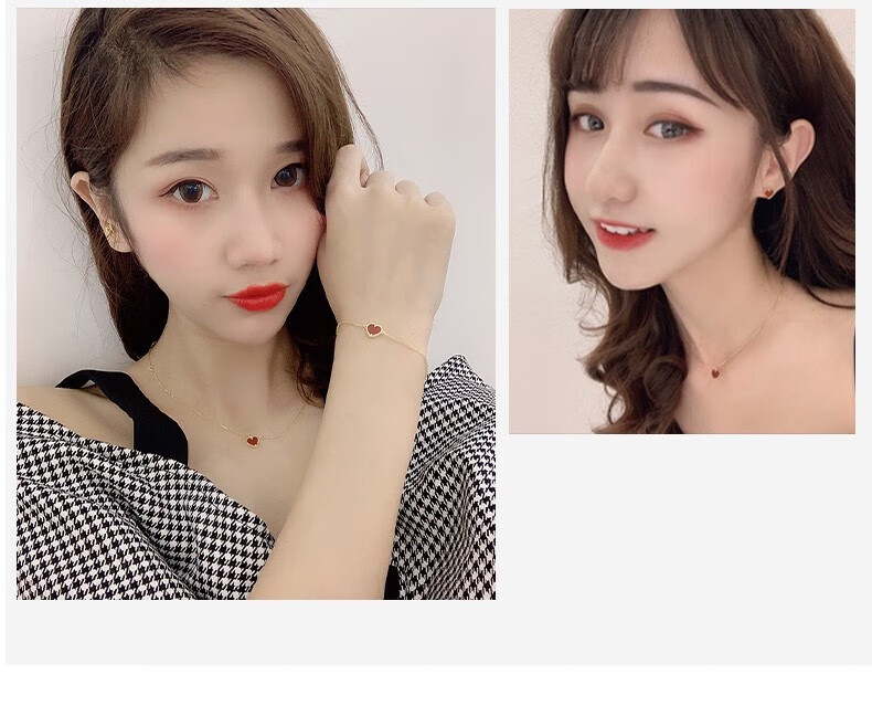 farcoko法国品牌彩金色项链女小红心锁骨链爱心吊坠生日礼物送女友老婆 小红心项链+手链