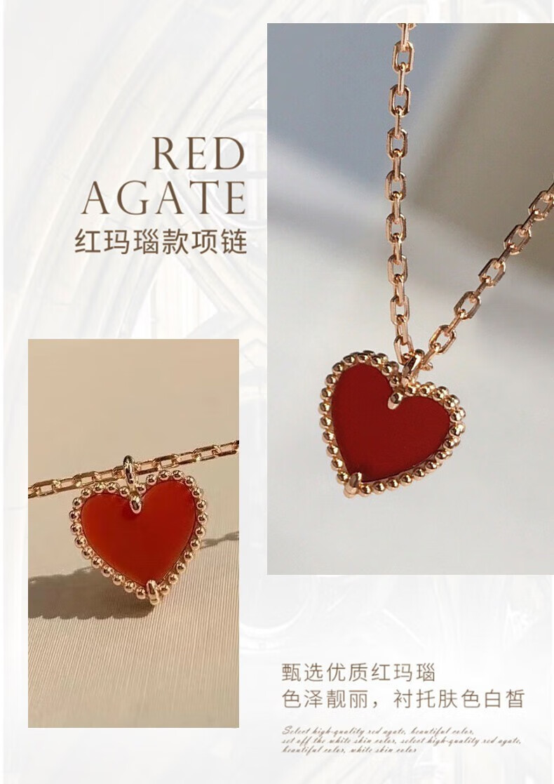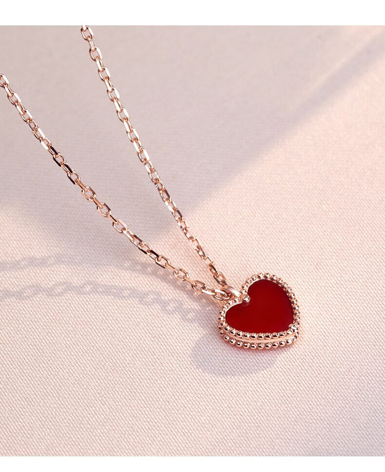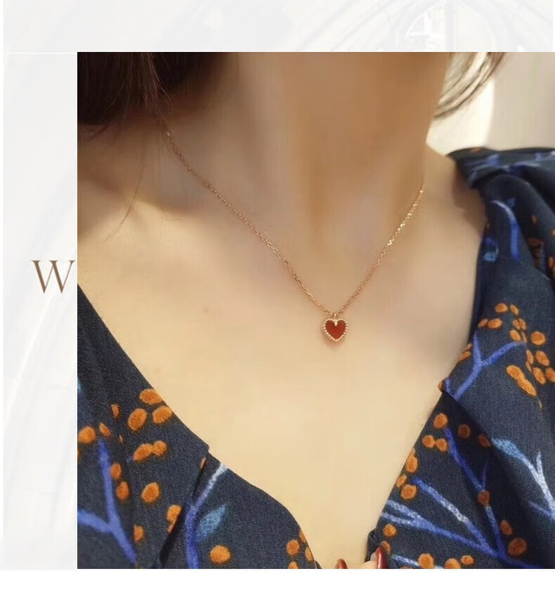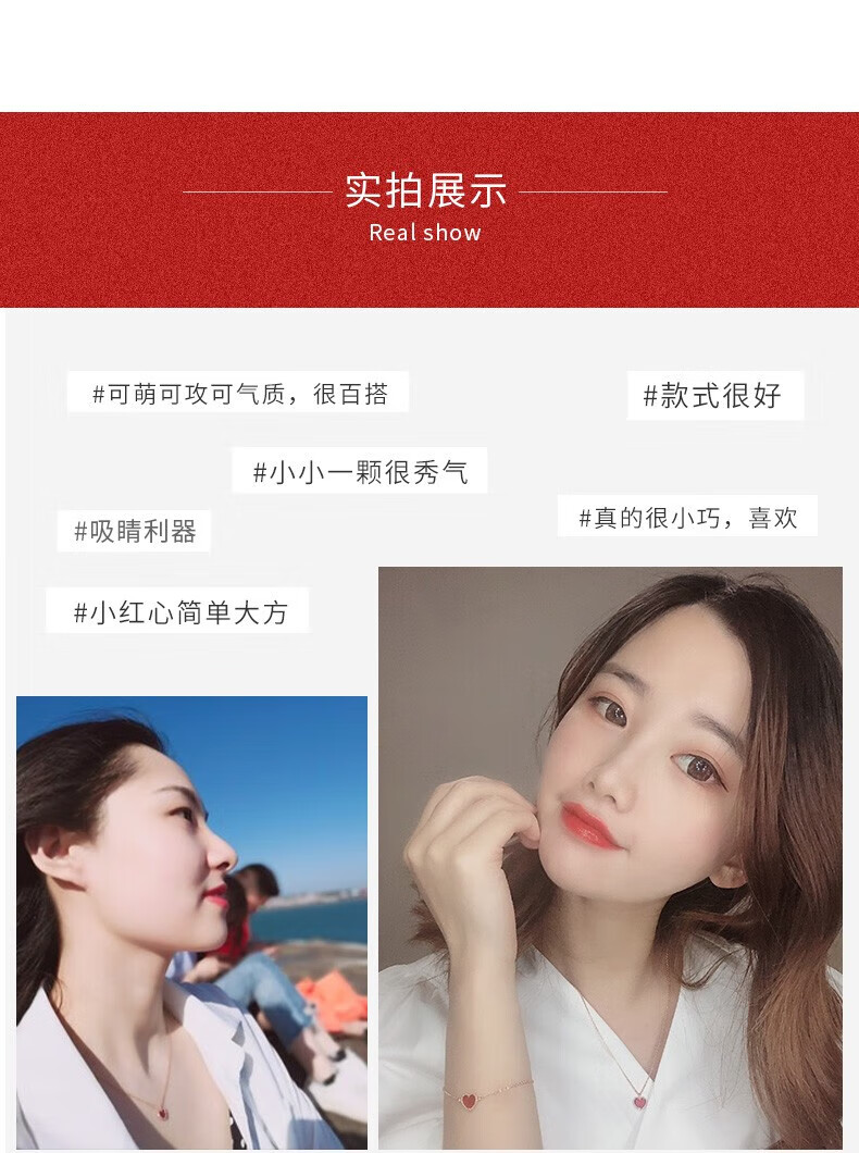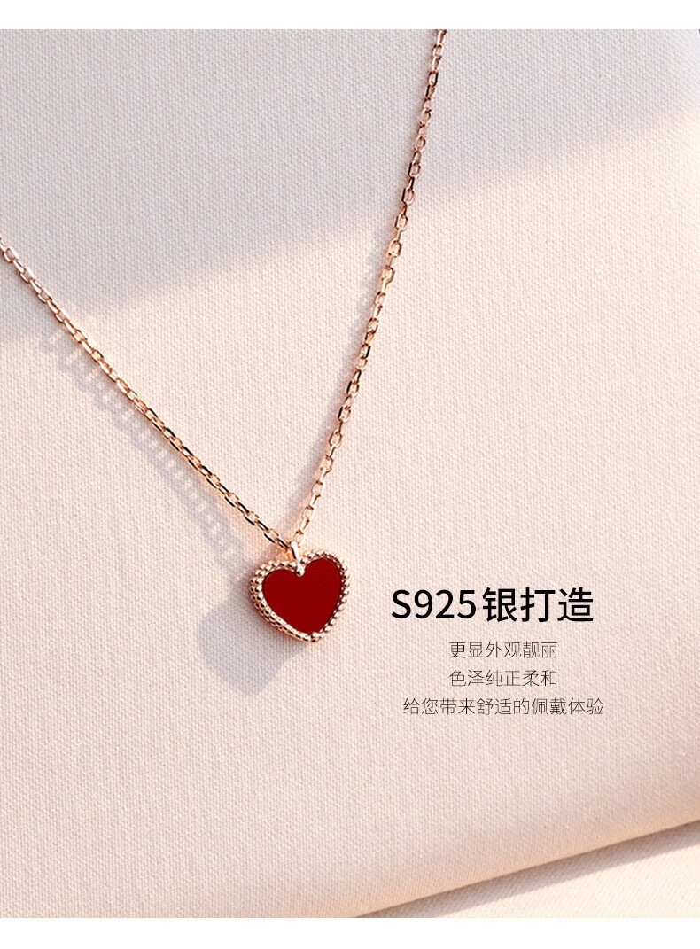 farcoko法国品牌彩金色项链女小红心锁骨链爱心吊坠生日礼物送女友老婆 小红心项链+手链