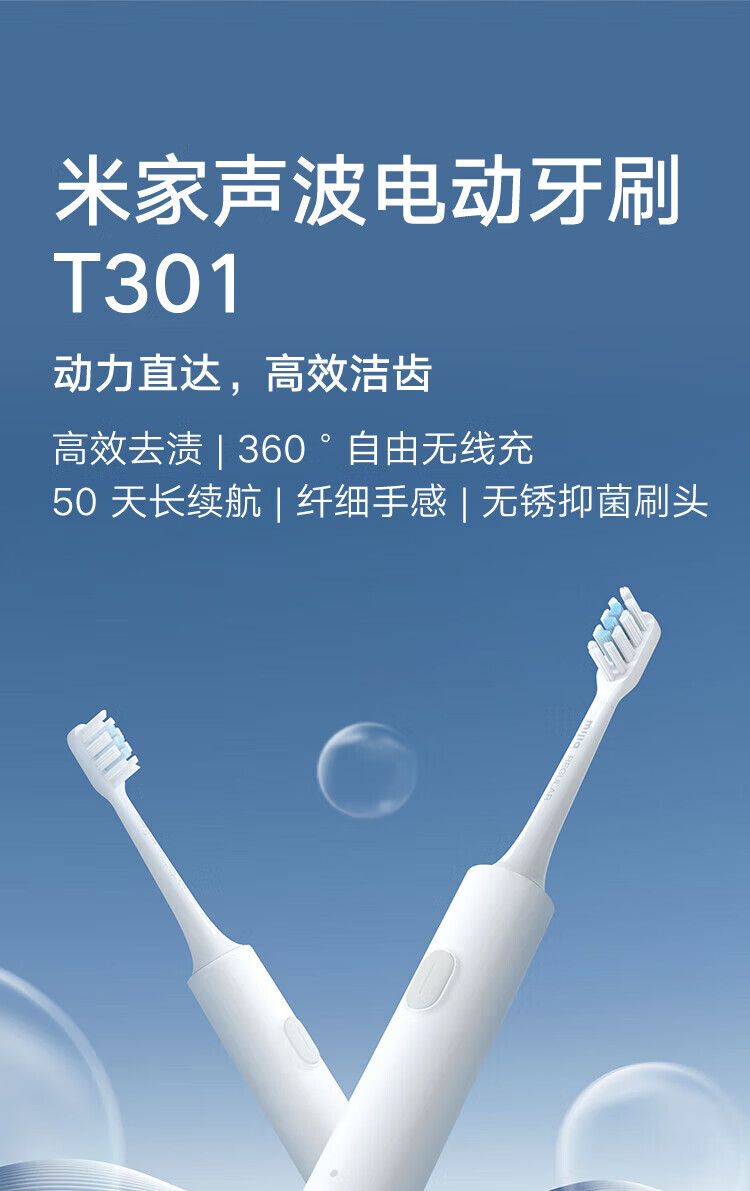 小米(MI)米家电动牙刷成人情侣男女生日礼物软毛超声波实用便携超长续航结婚热门商品中秋礼品 T301白色