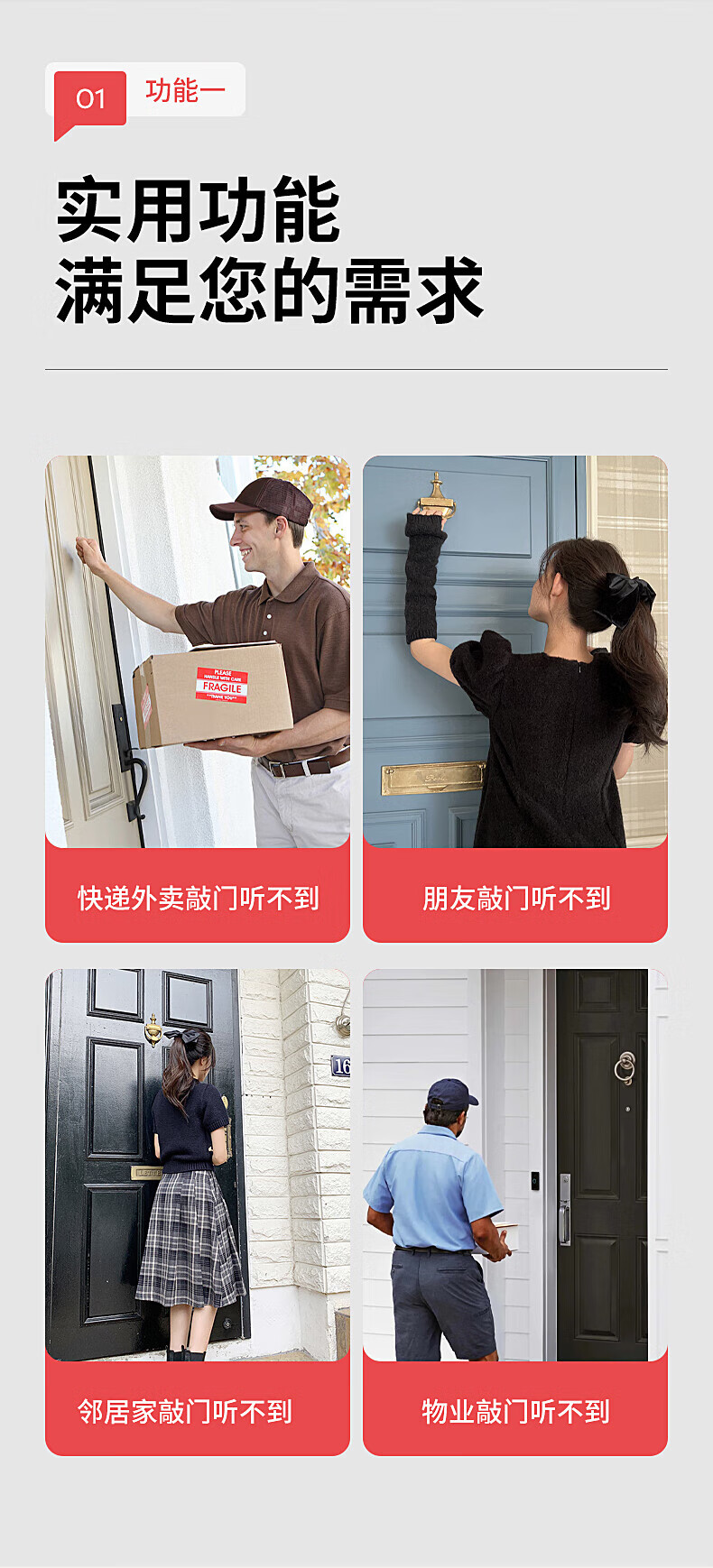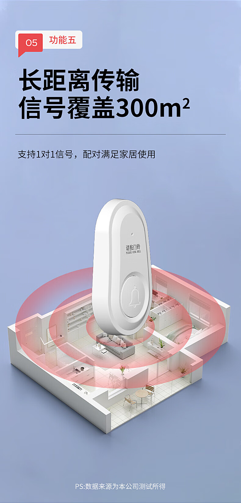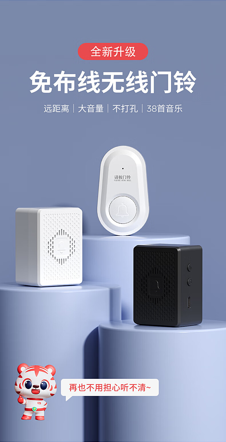 国际电工家用无线门铃远距离叮咚铃老人呼叫器电子遥控大音量入户门铃 白色电池款门铃【1按铃+1响铃】