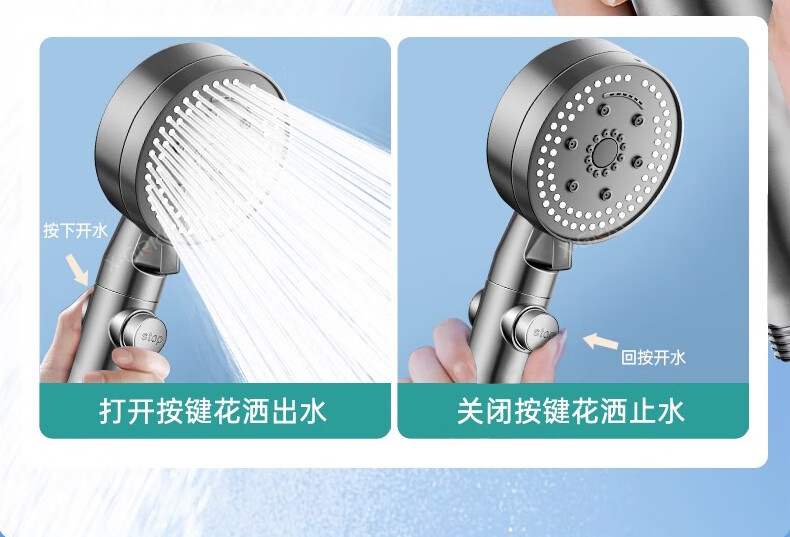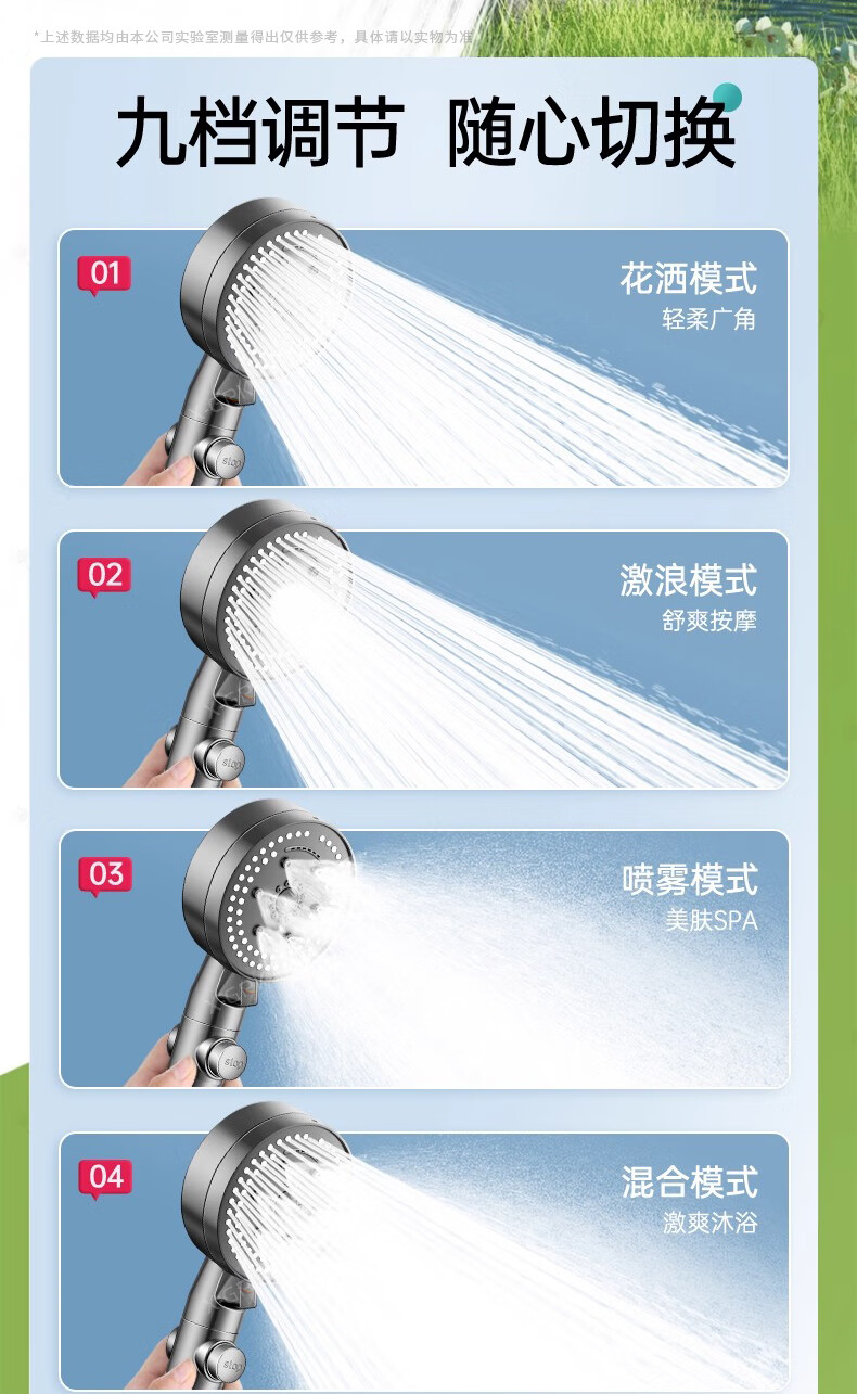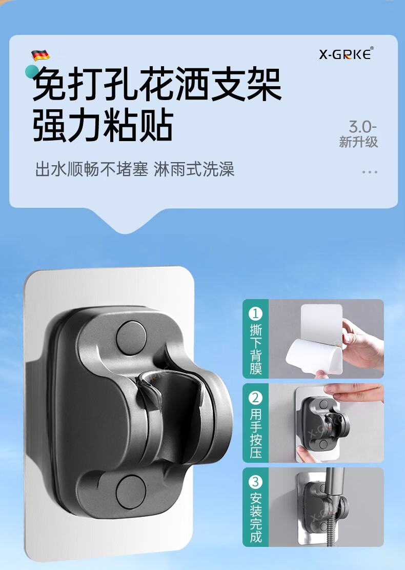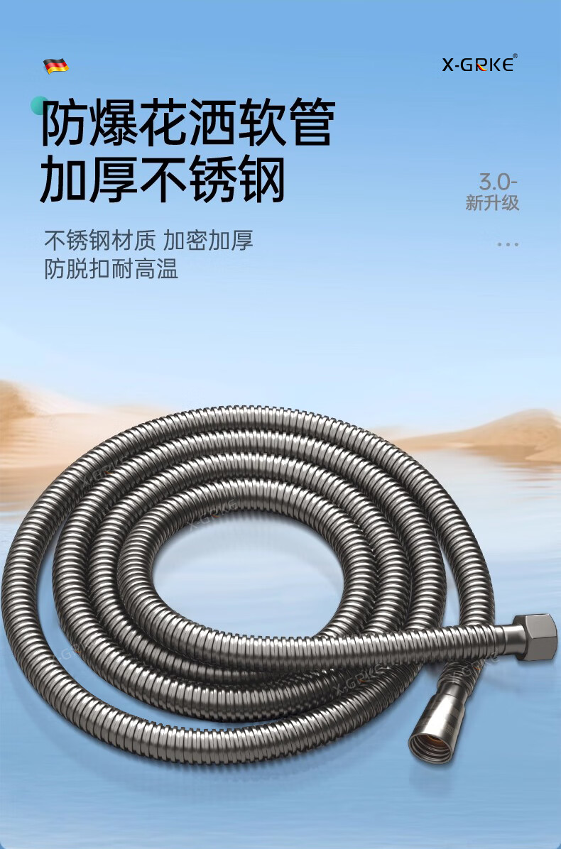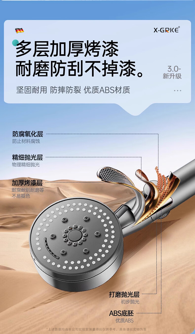 X-GRKE【德国】增压淋浴花洒喷头全套装强劲家用洗澡手持莲蓬头三件套 枪灰色丨新款九档花洒 【强劲九档增压丨密集大出水】