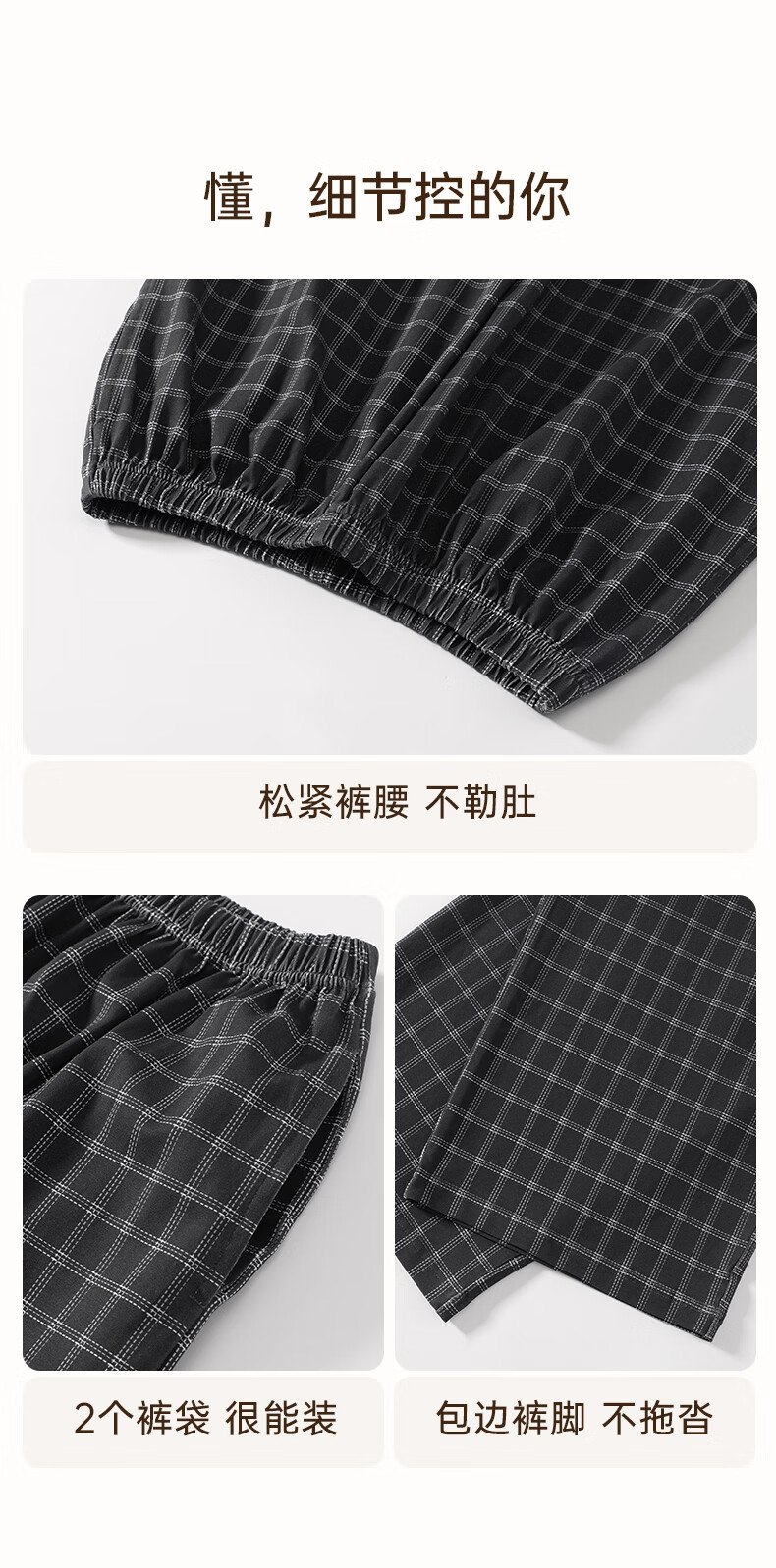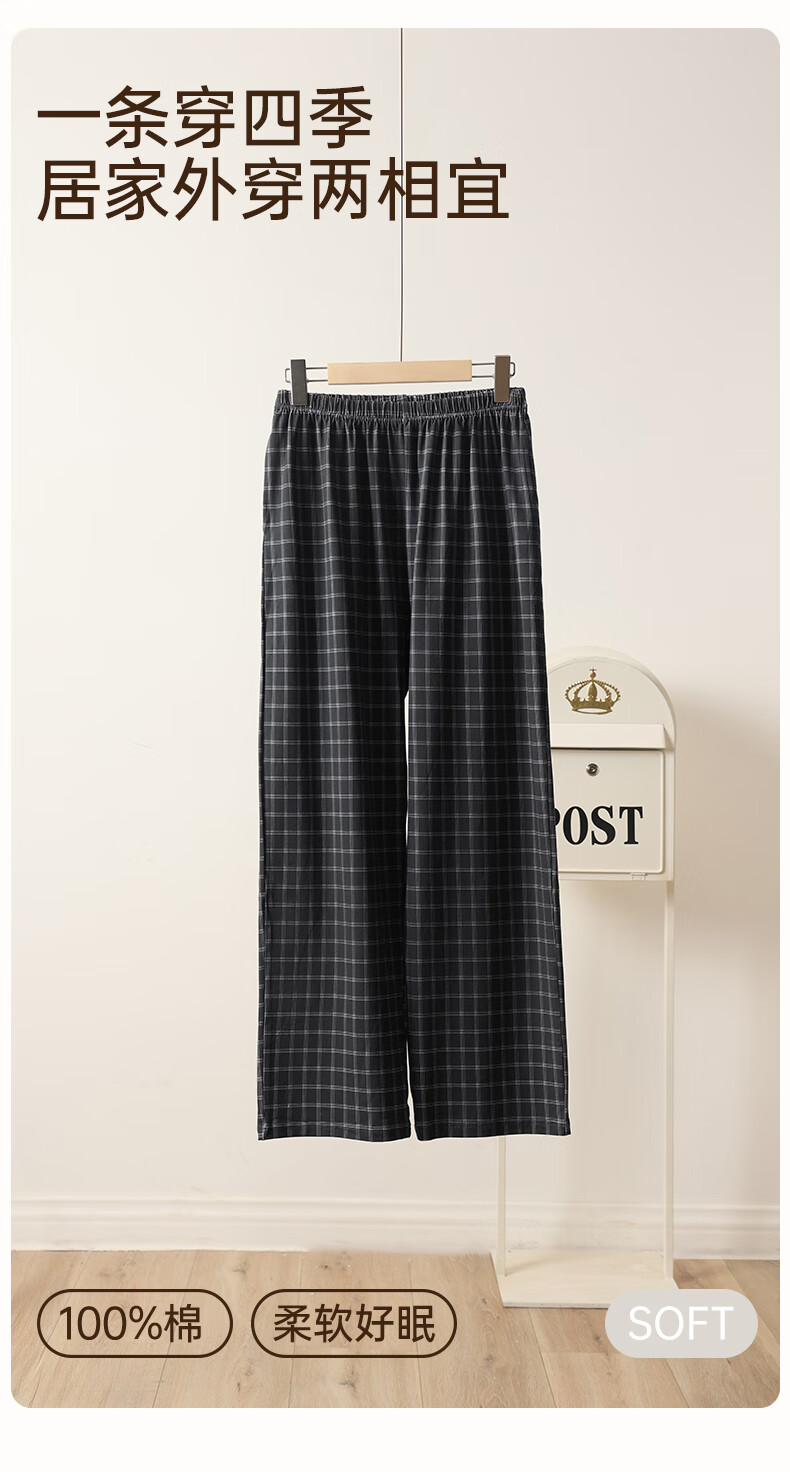 玛伦萨100%纯棉睡裤男2025春秋季新款长裤男士家居裤可外穿休闲裤 灰格 L