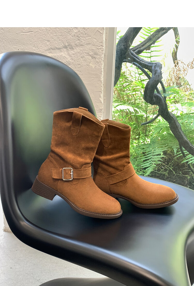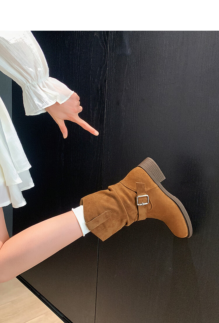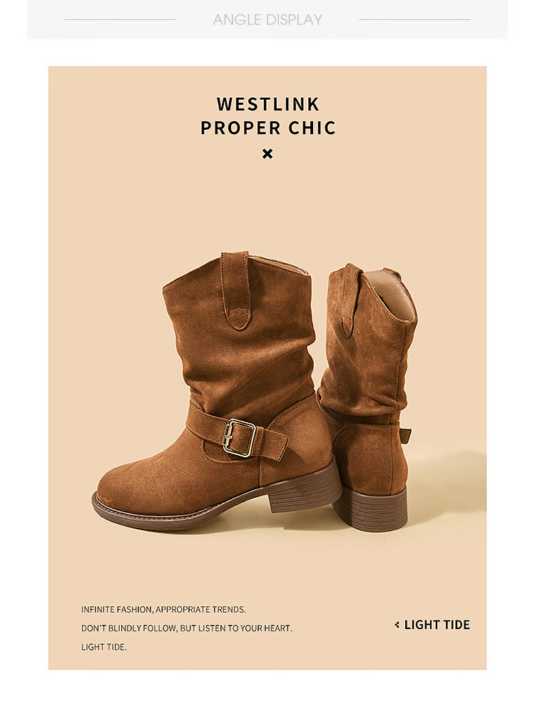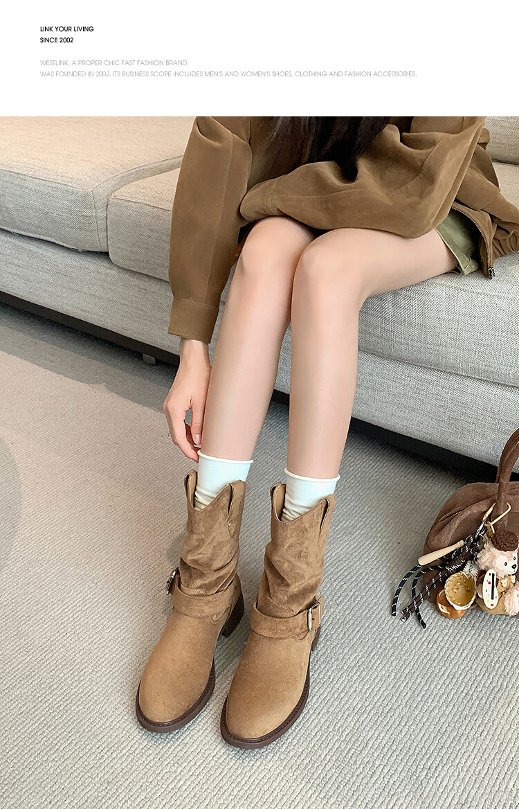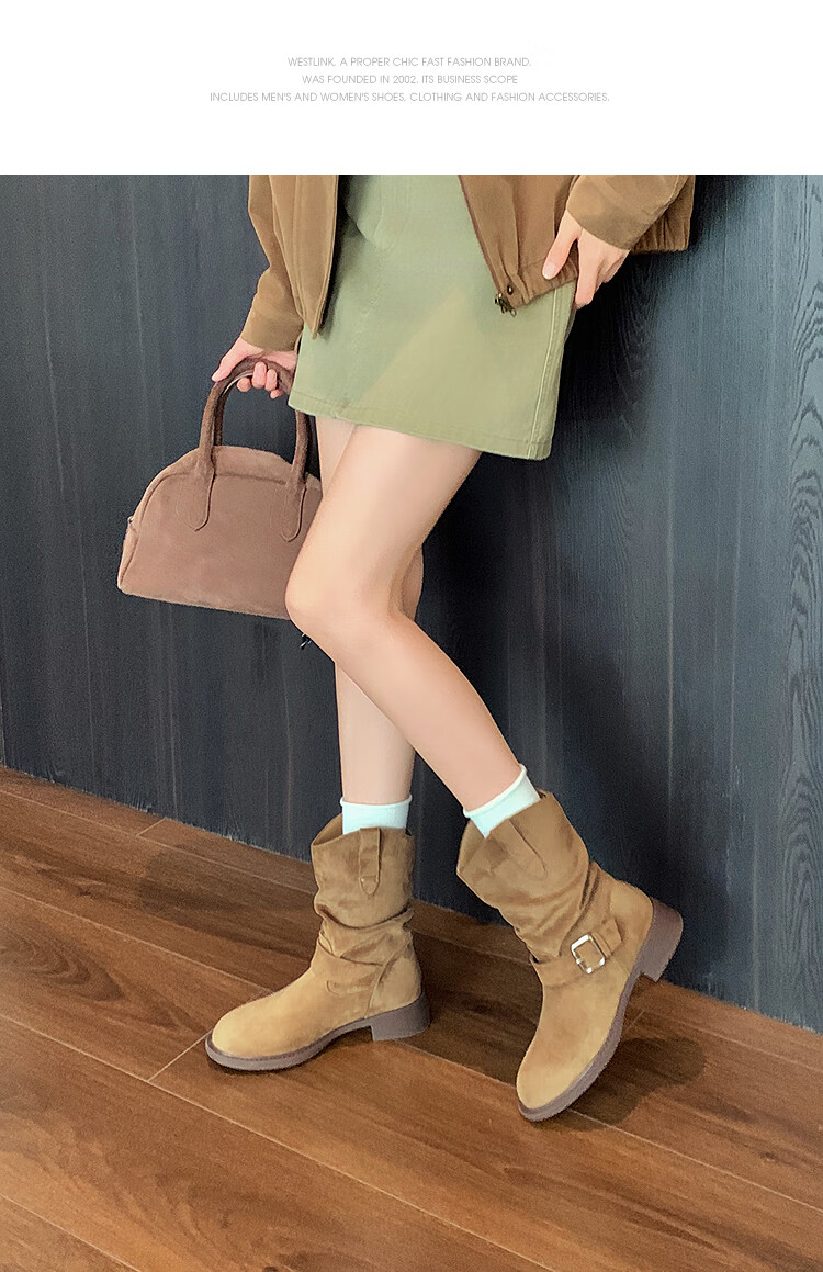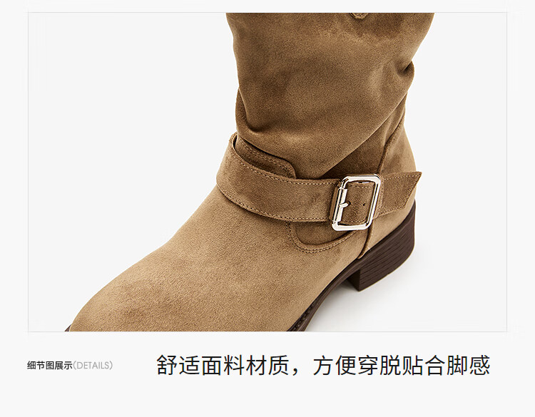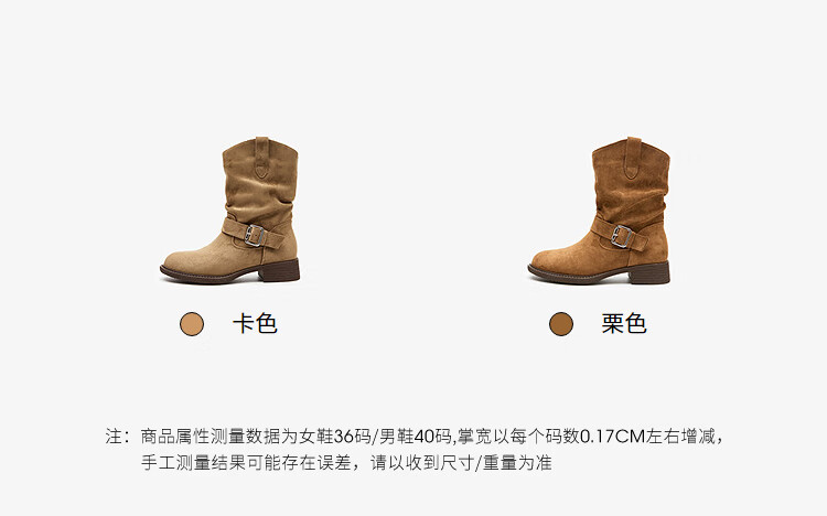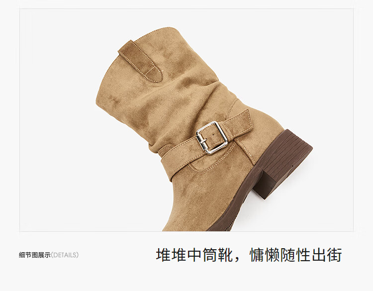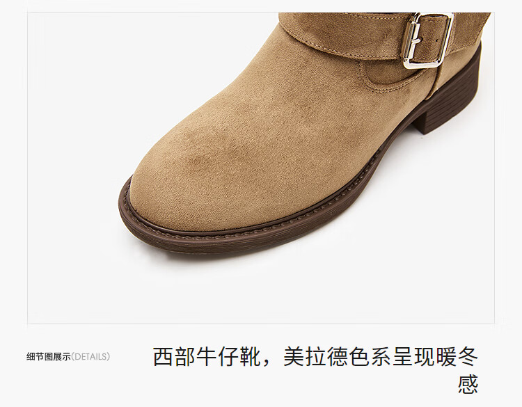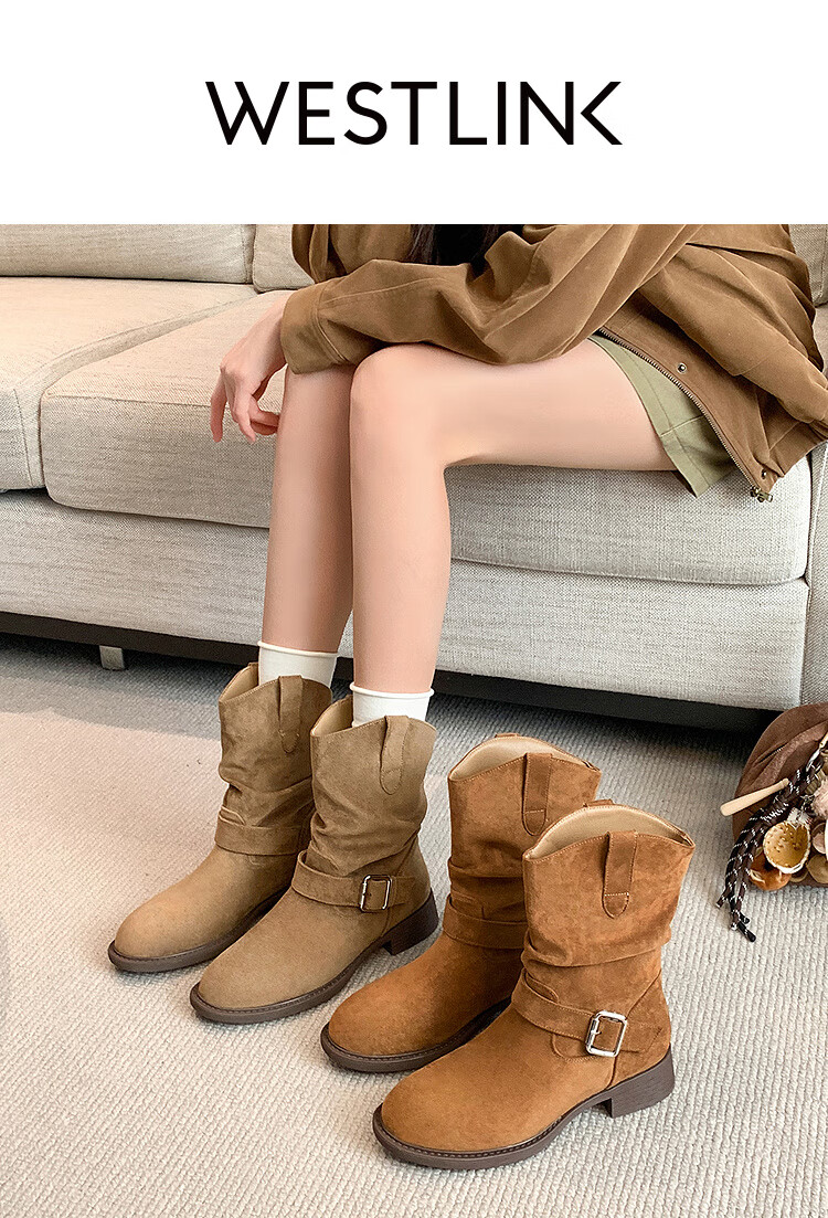 西遇(Westlink)美拉德短靴女2025新款秋冬百搭复古西部牛仔靴绒面堆堆靴 卡色 35 (225)