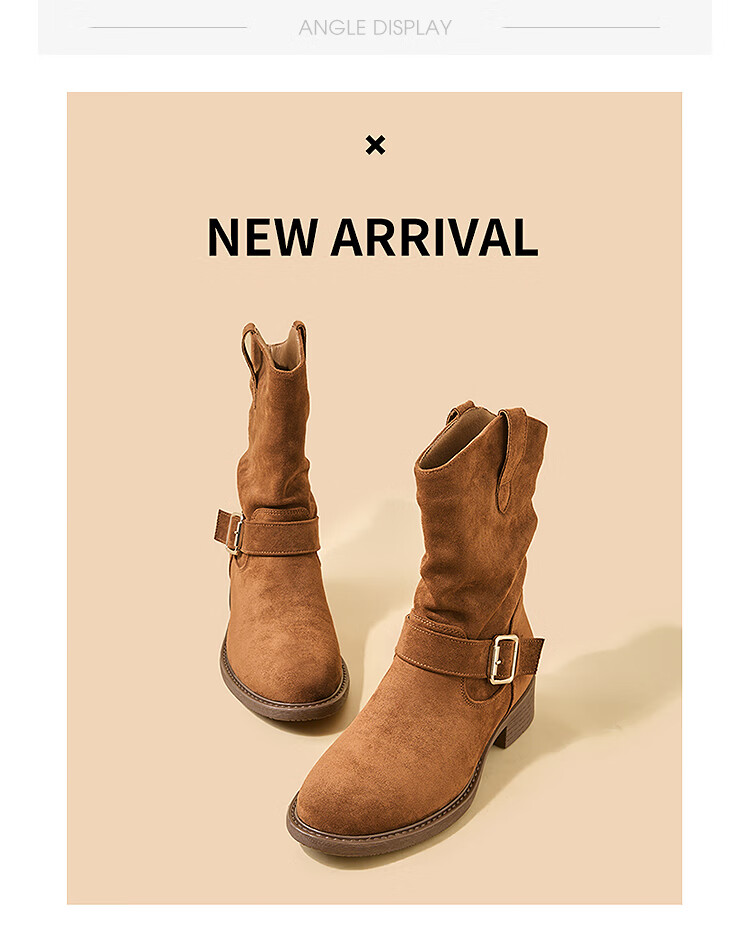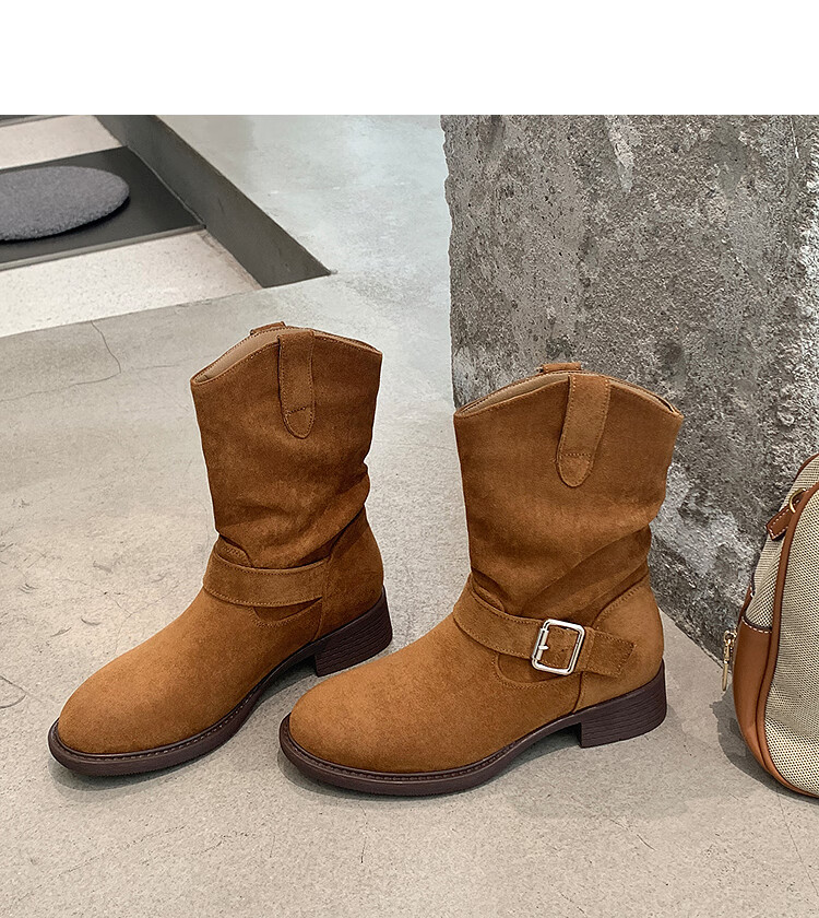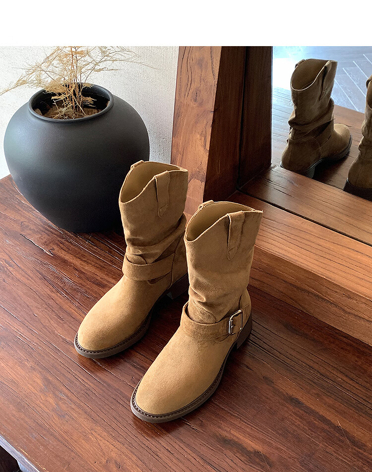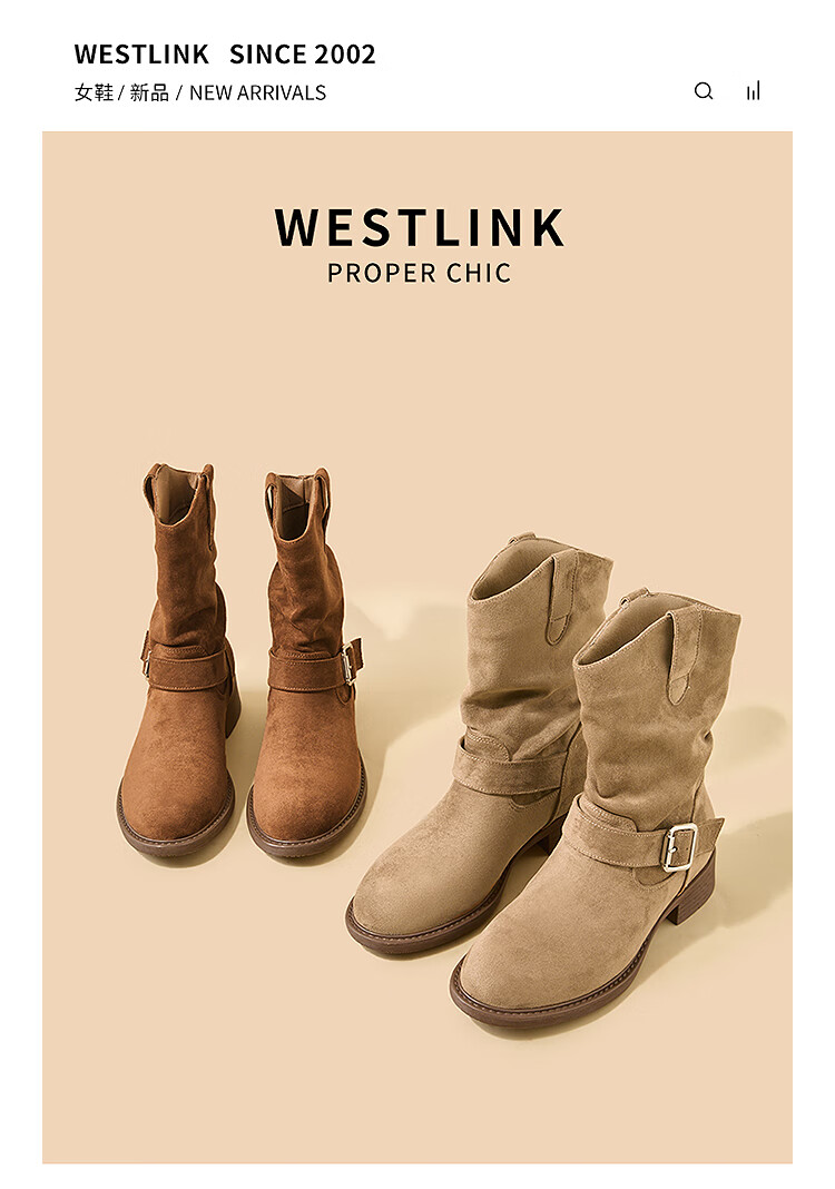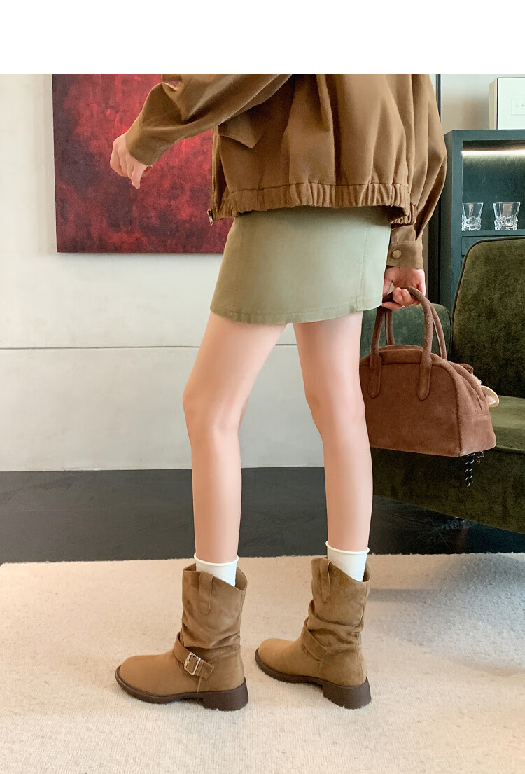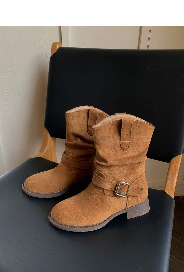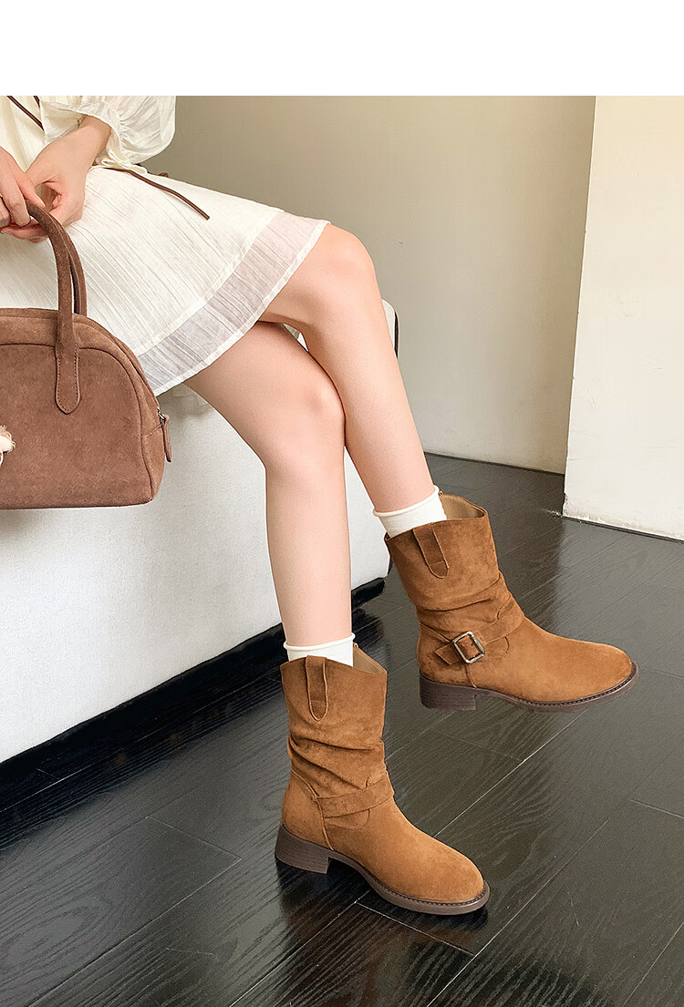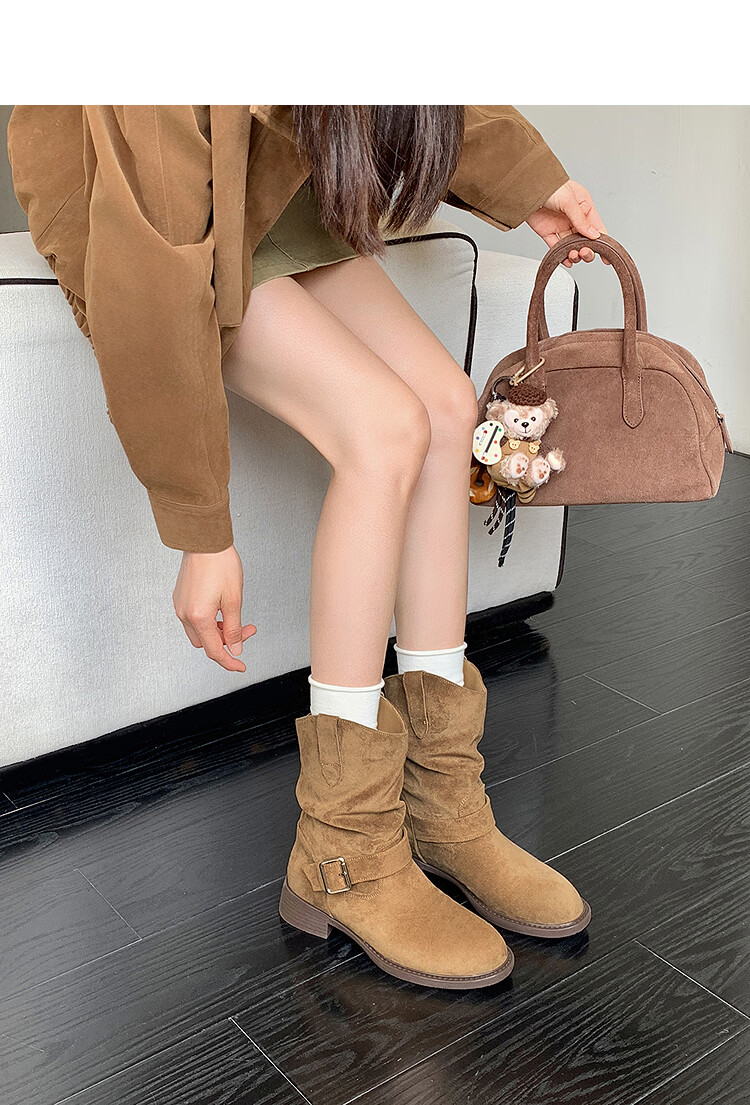 西遇(Westlink)美拉德短靴女2025新款秋冬百搭复古西部牛仔靴绒面堆堆靴 卡色 35 (225)