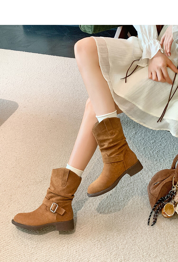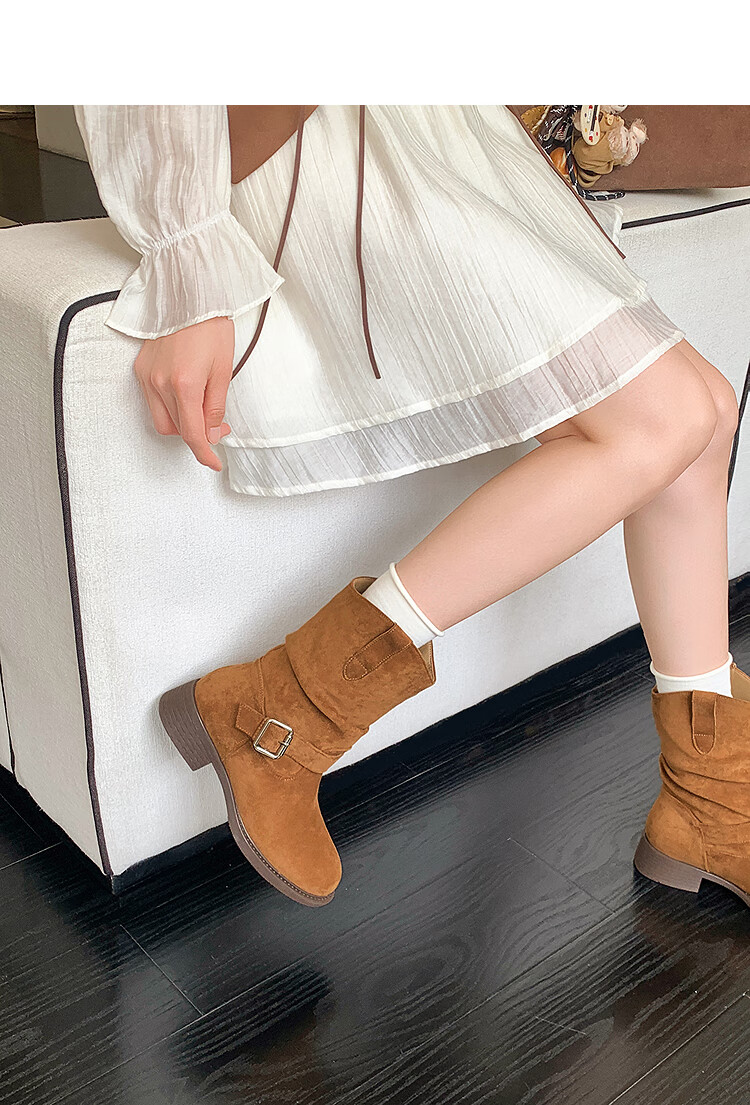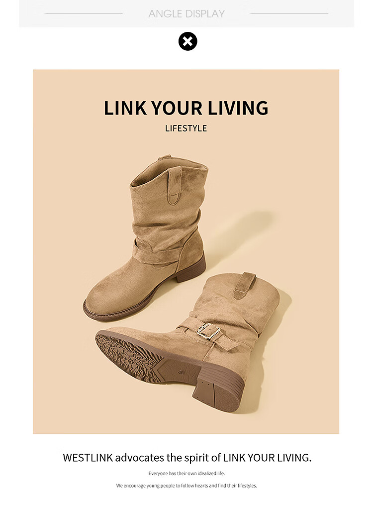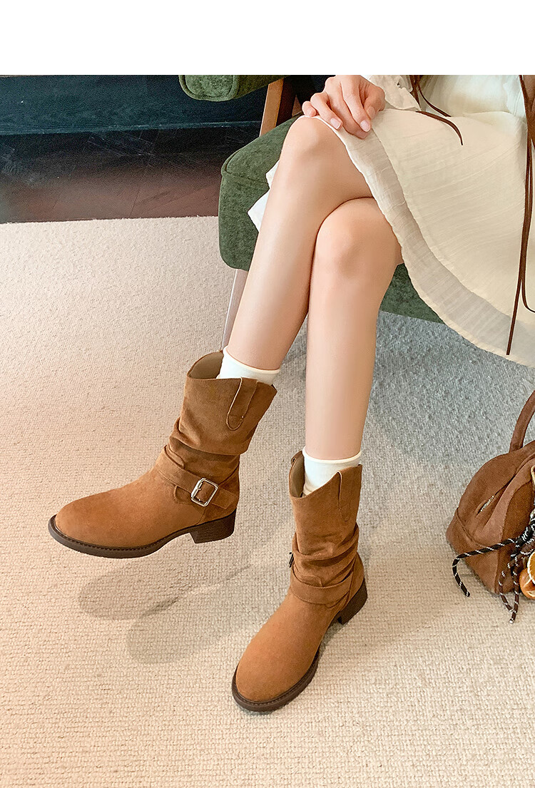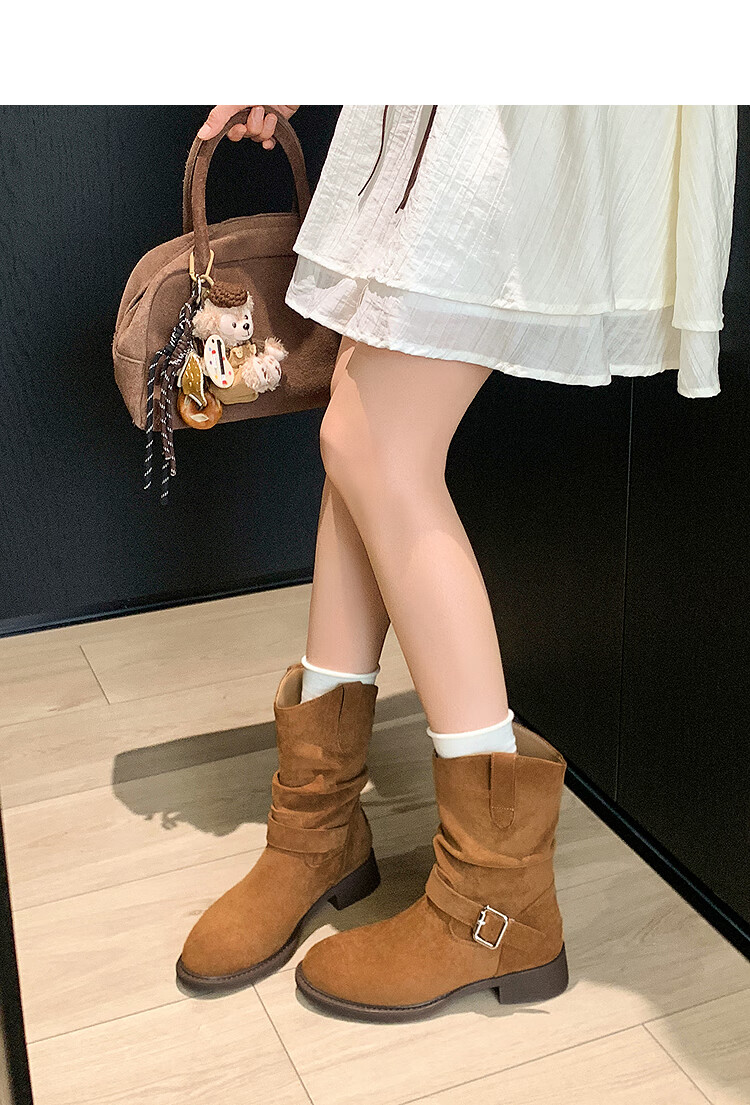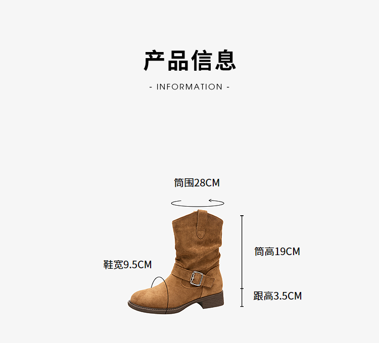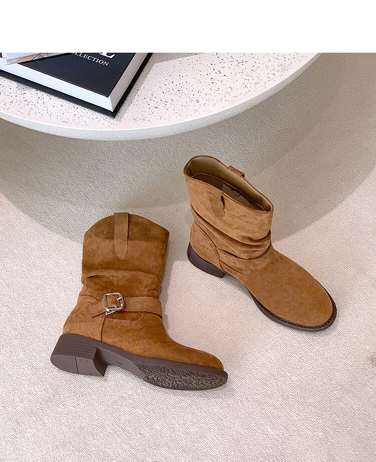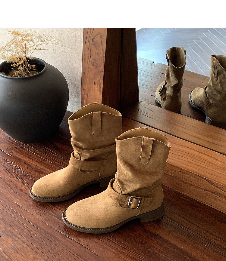 西遇(Westlink)美拉德短靴女2025新款秋冬百搭复古西部牛仔靴绒面堆堆靴 卡色 35 (225)