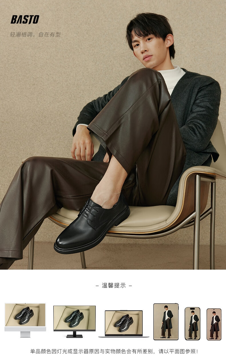 奥康官方男鞋 秋季新款男士低帮商务正装皮鞋百搭婚鞋时尚布洛克单鞋 黑色T243211131 42