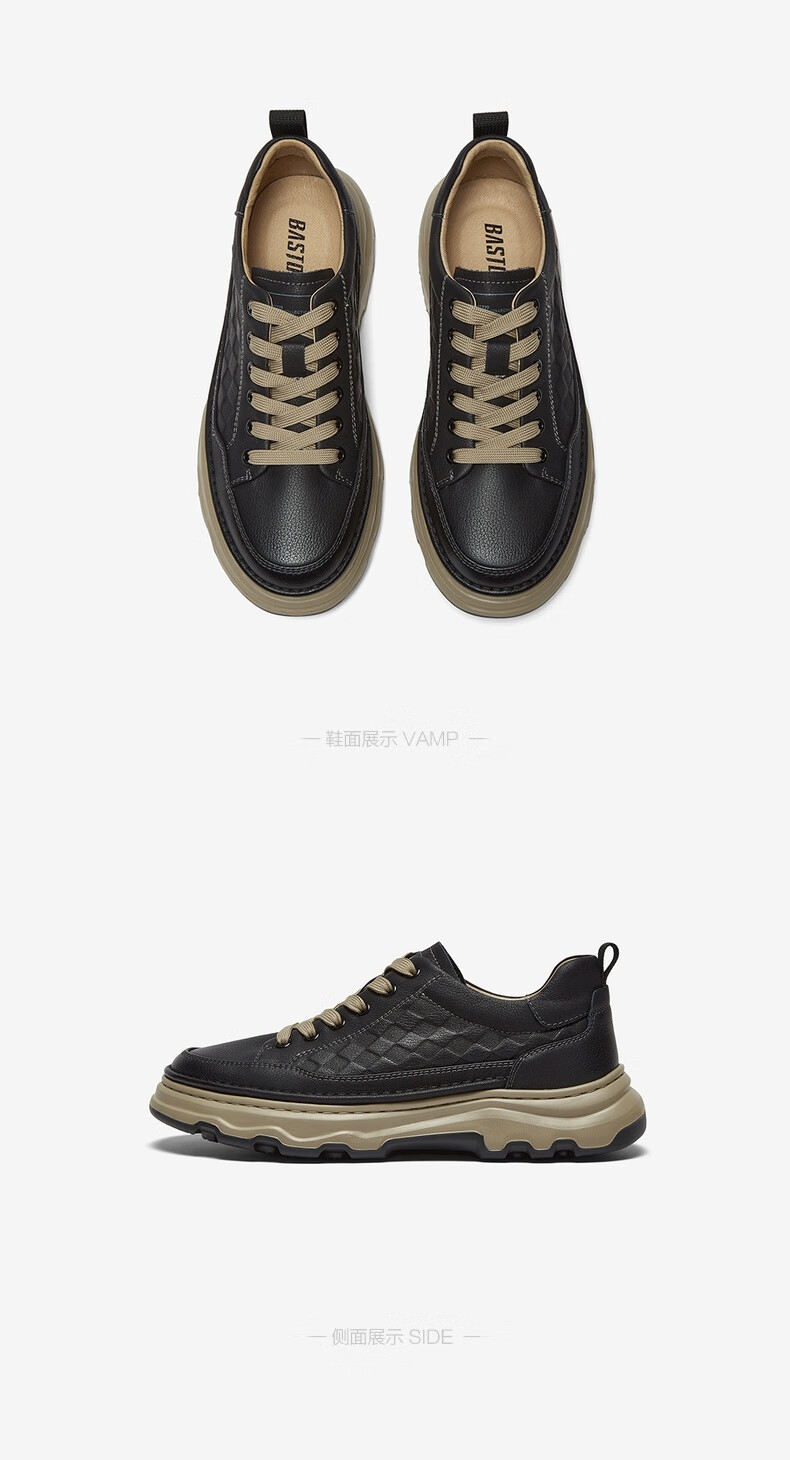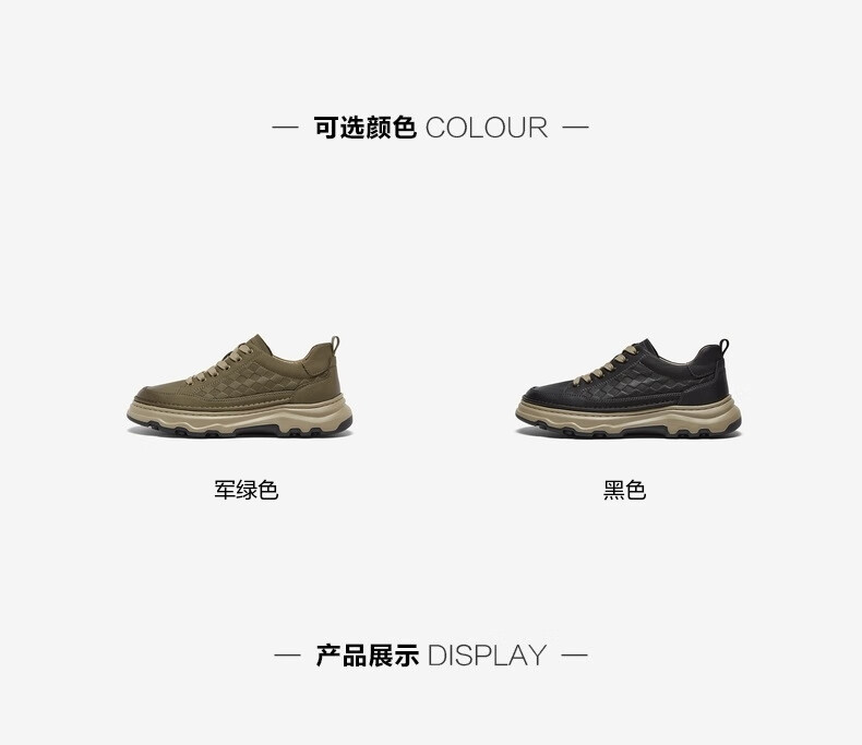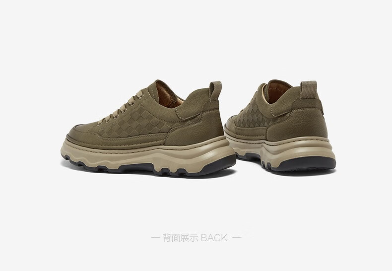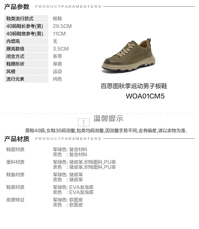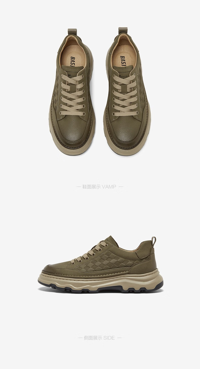 百思图2025秋季商场新款绿色板鞋潮流男鞋厚底休闲运动鞋WOA01CM5 军绿色 38