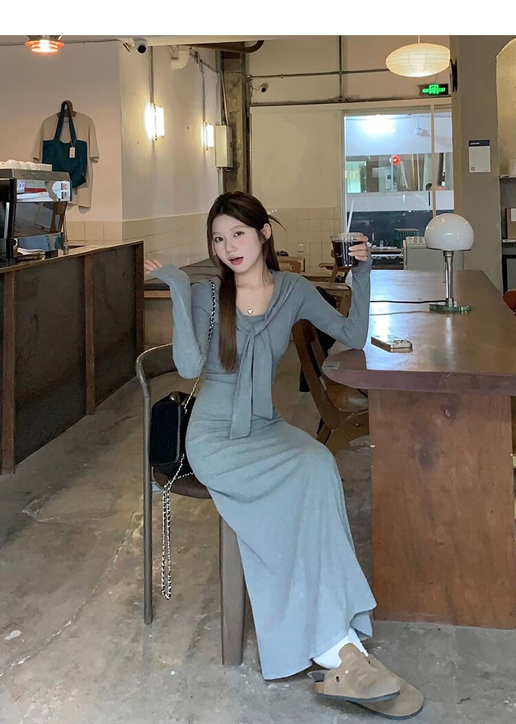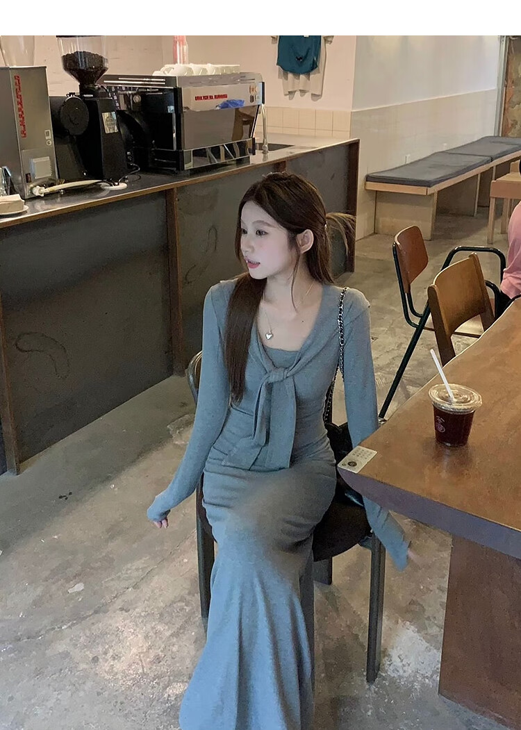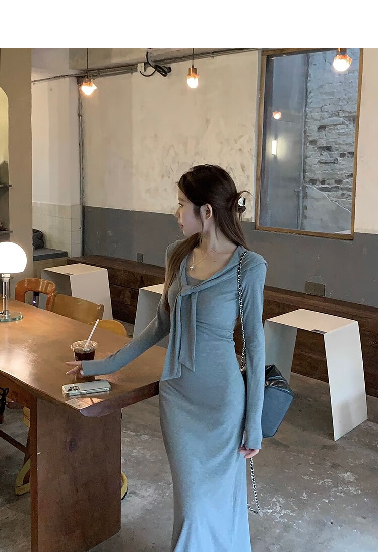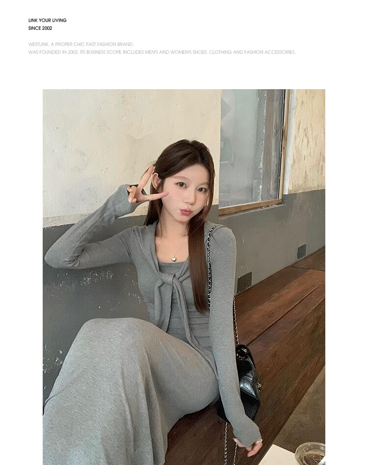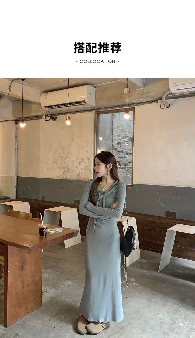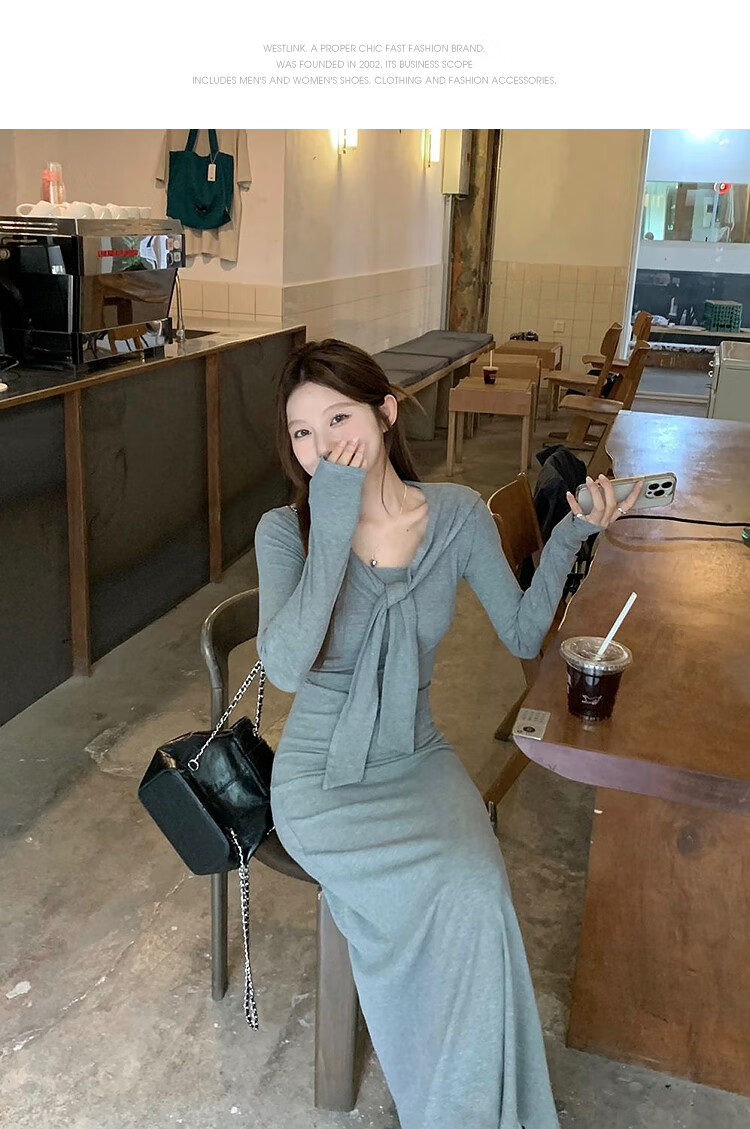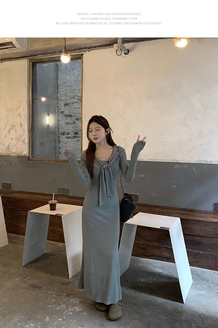 西遇(Westlink)西遇针织连衣裙长款女2025年秋季新款灰色假两件披肩修身显瘦长裙 灰色 (预售15天) M (160)