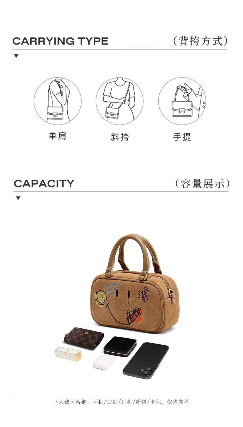 百丽女包包SMILEY联名流浪吐司25商城新手提波士顿包X7428CX5 岩石灰 F