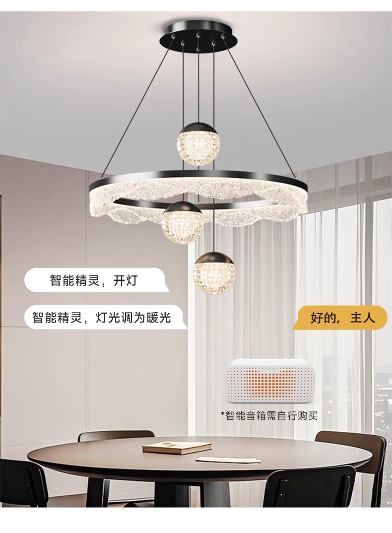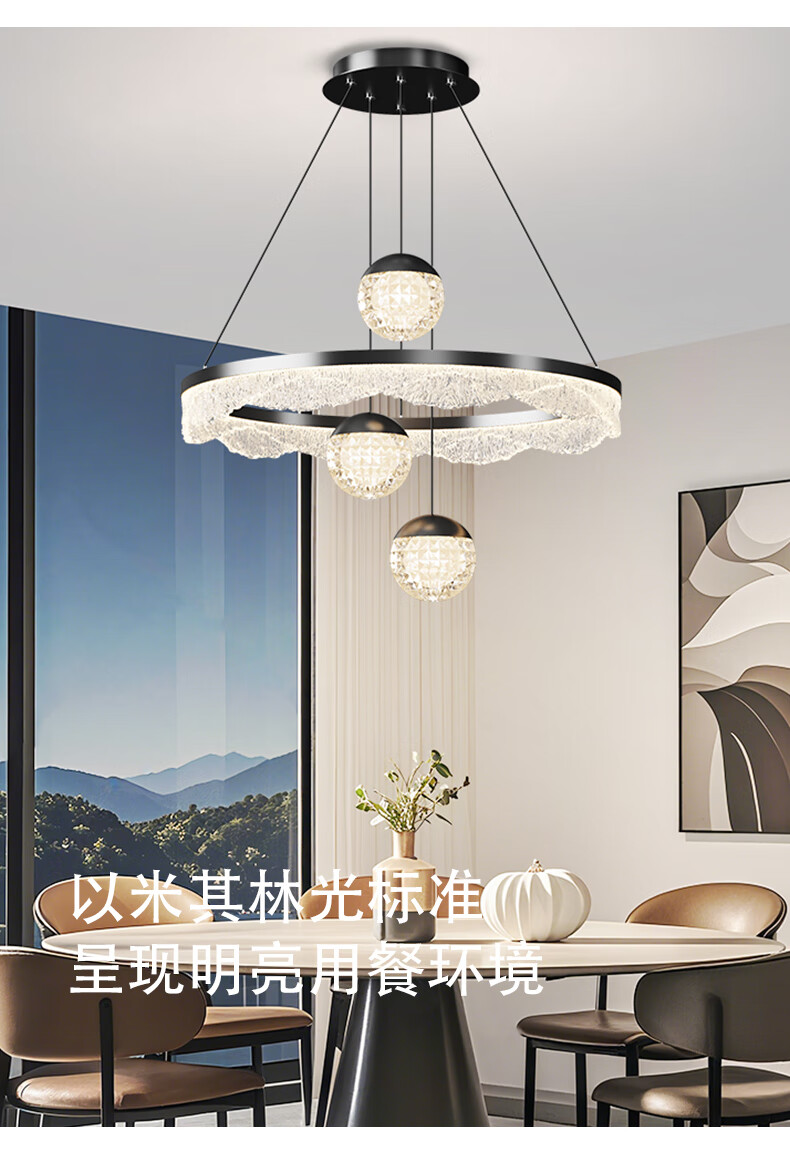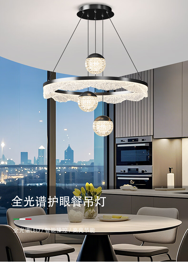 华艺照明意式简约创意造型餐厅吊灯现代轻奢风餐厅灯全光谱护眼餐吊灯RG0 【RG0】璀璨圆环-50W*2-三色变光