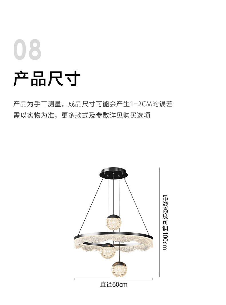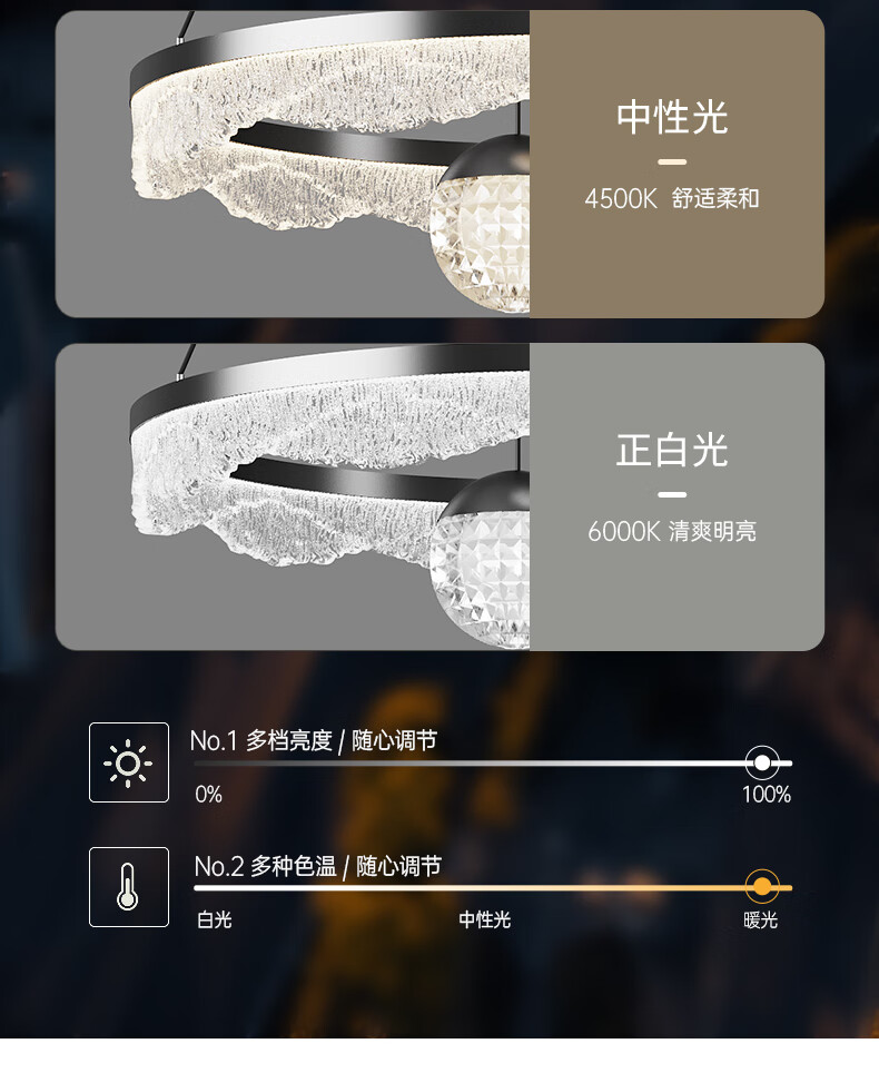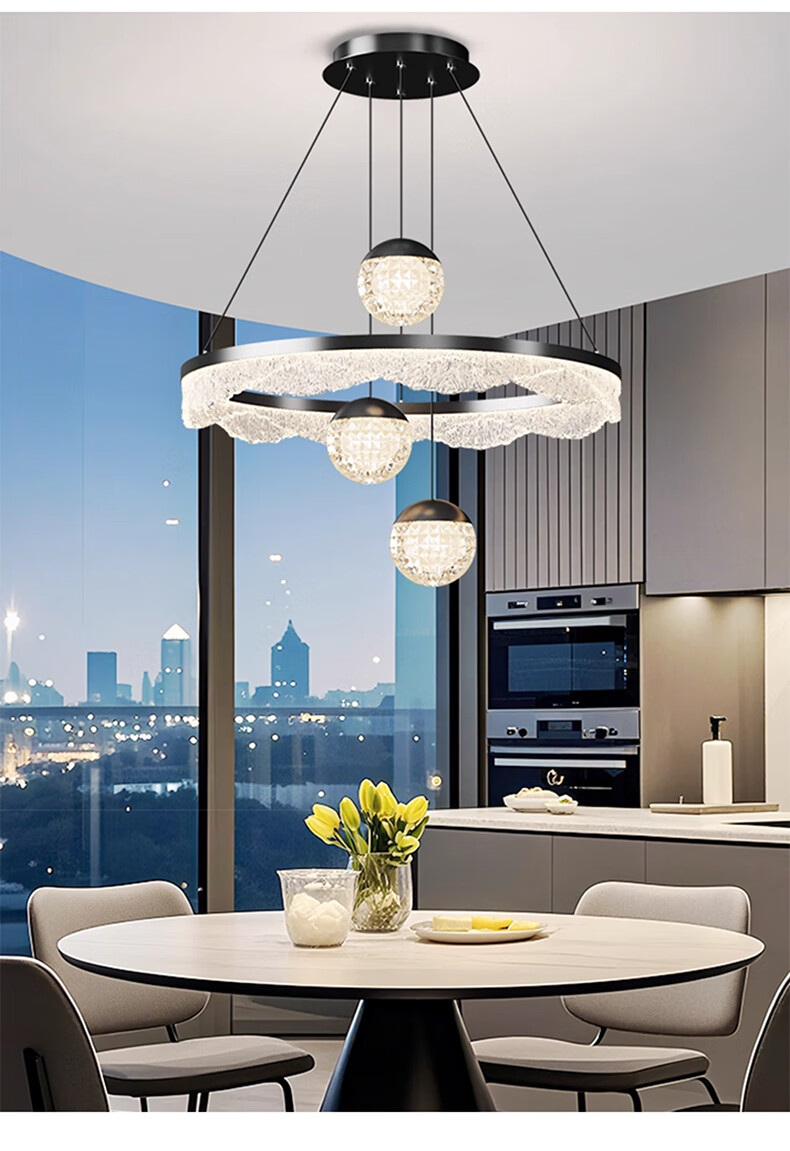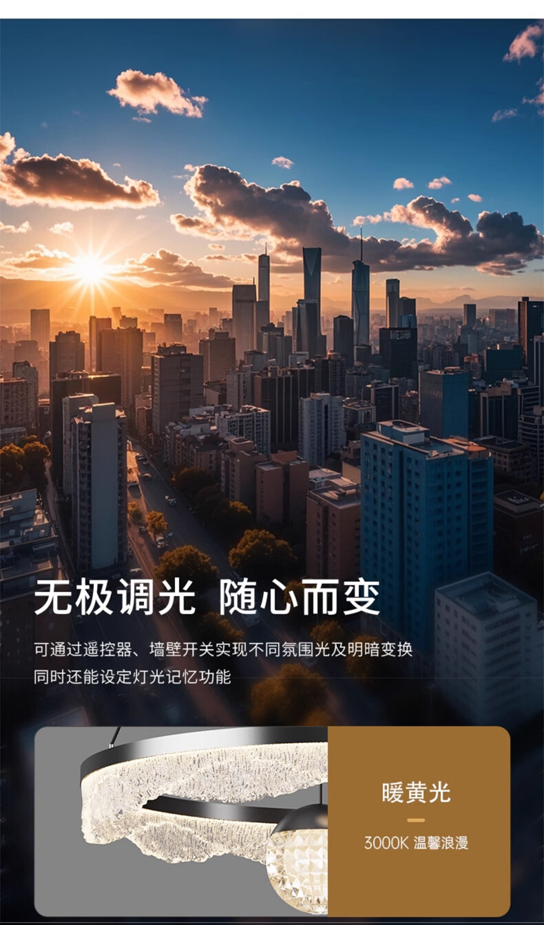 华艺照明意式简约创意造型餐厅吊灯现代轻奢风餐厅灯全光谱护眼餐吊灯RG0 【RG0】璀璨圆环-50W*2-三色变光