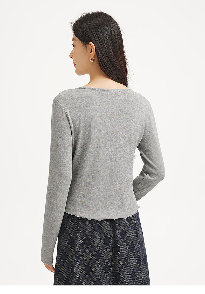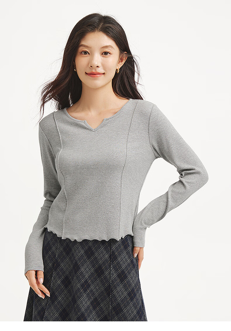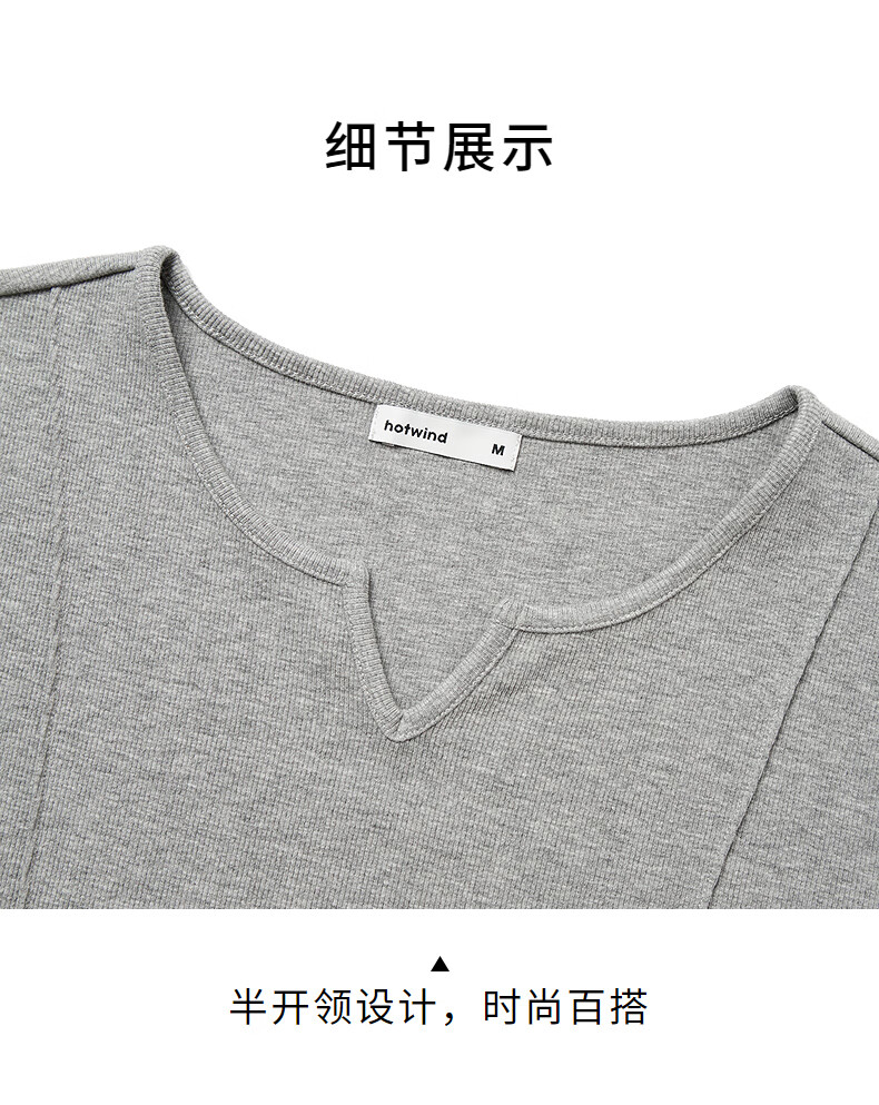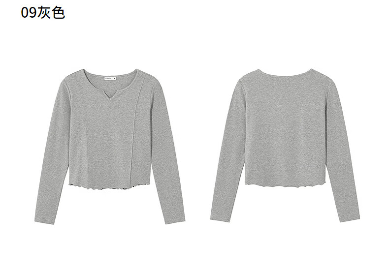 热风(Hotwind)女士长袖T恤上衣2025年秋季新款基础修身长袖T恤小个子内搭T 09灰色 S