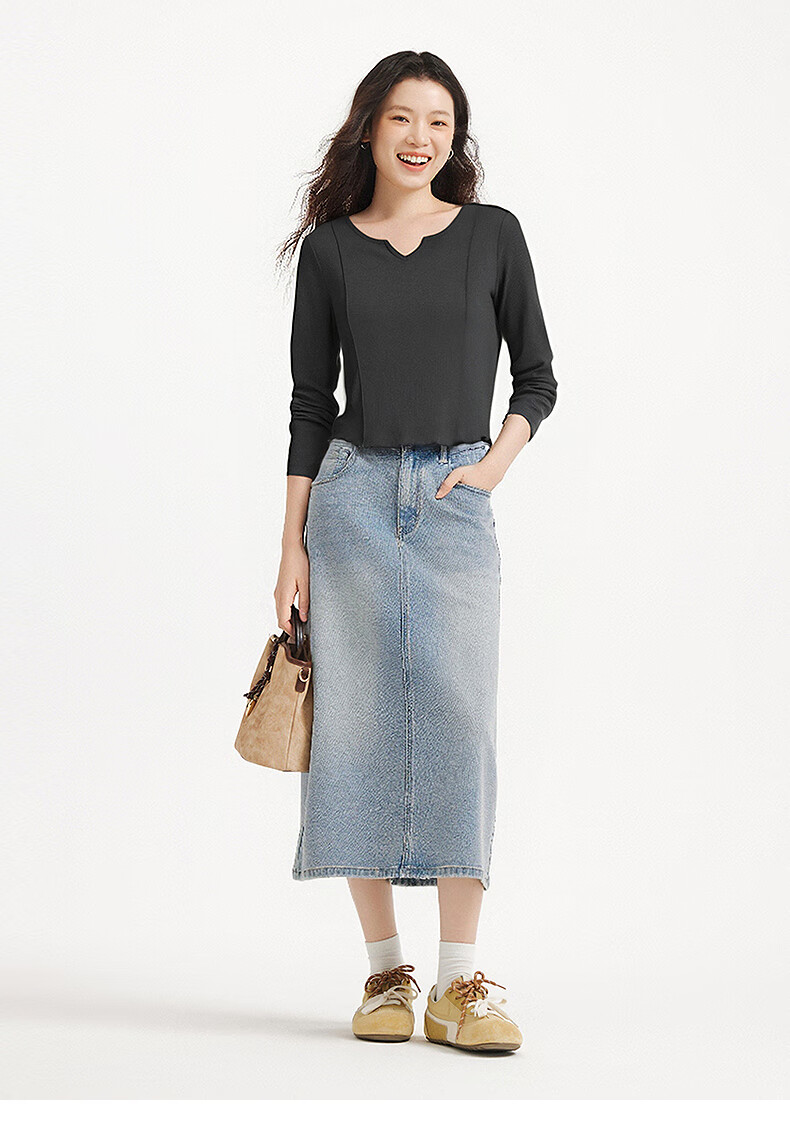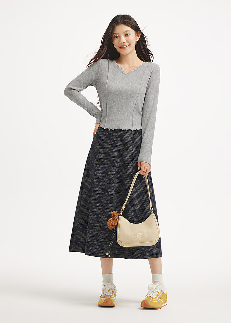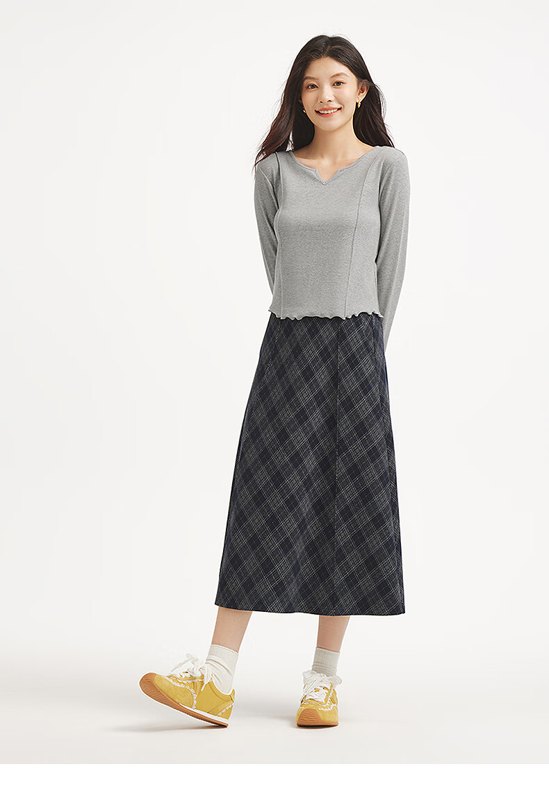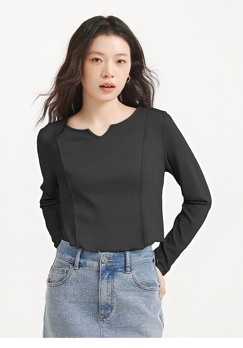 热风(Hotwind)女士长袖T恤上衣2025年秋季新款基础修身长袖T恤小个子内搭T 09灰色 S