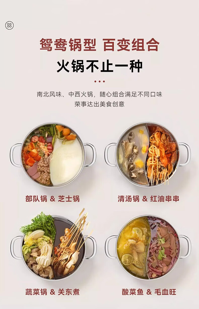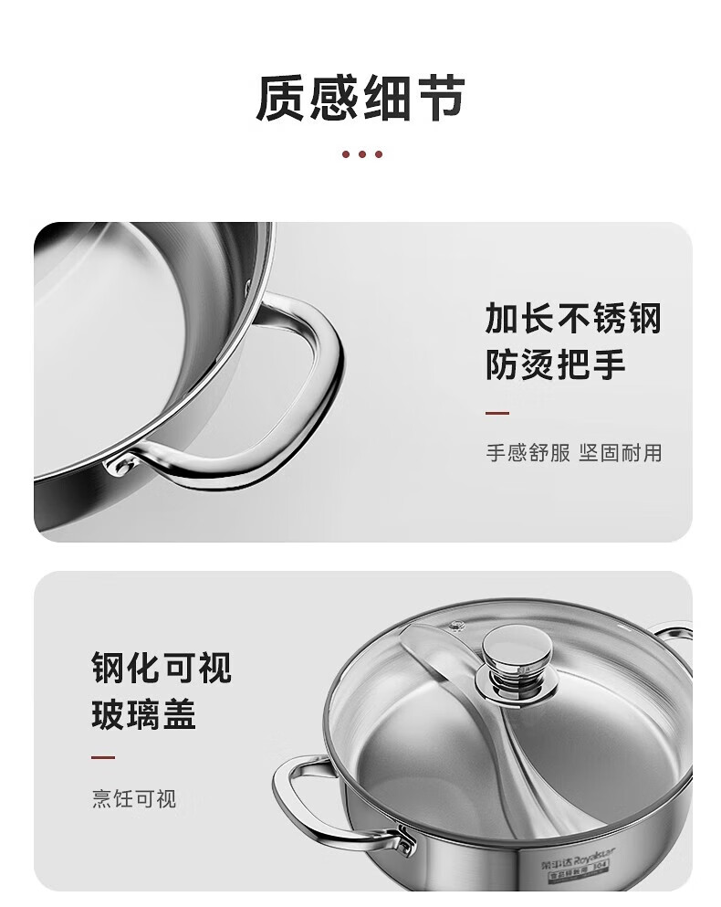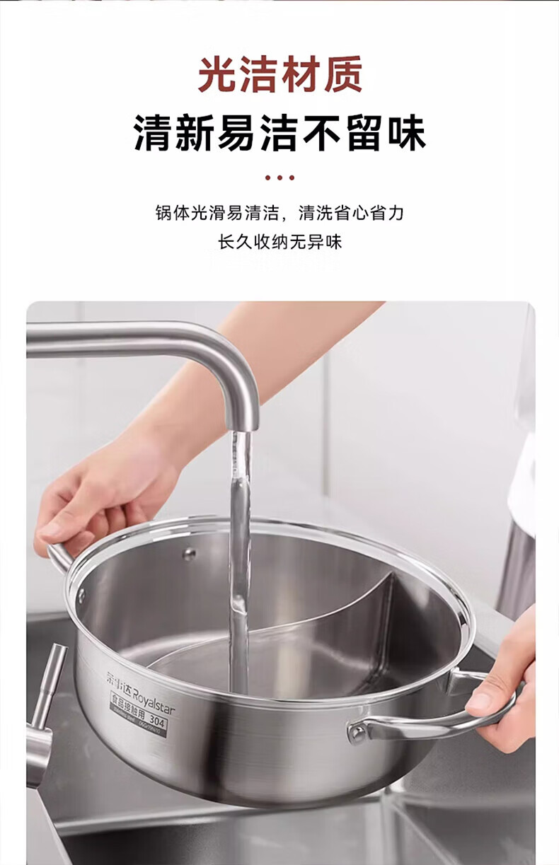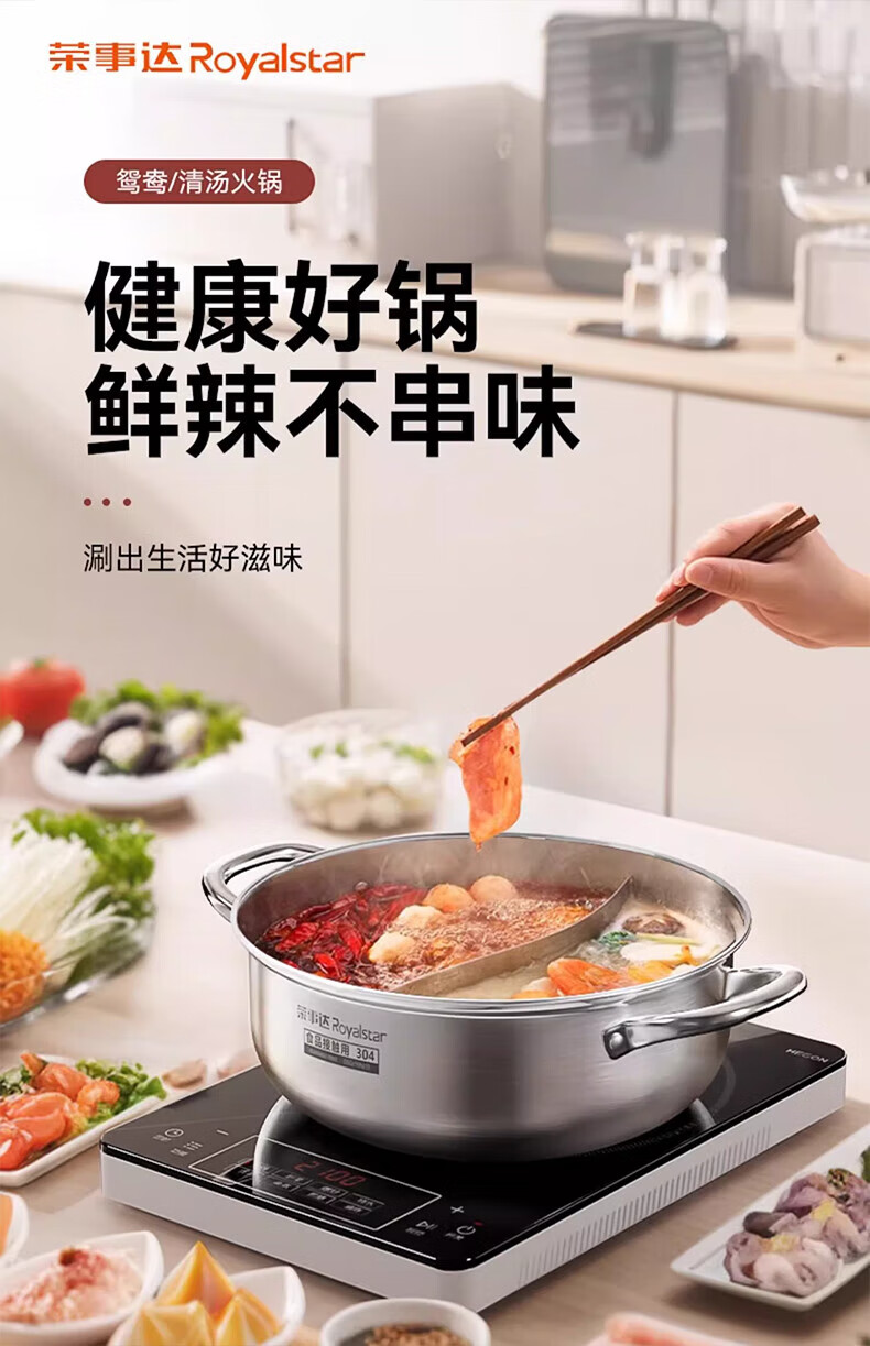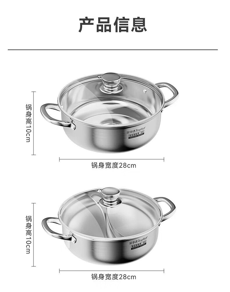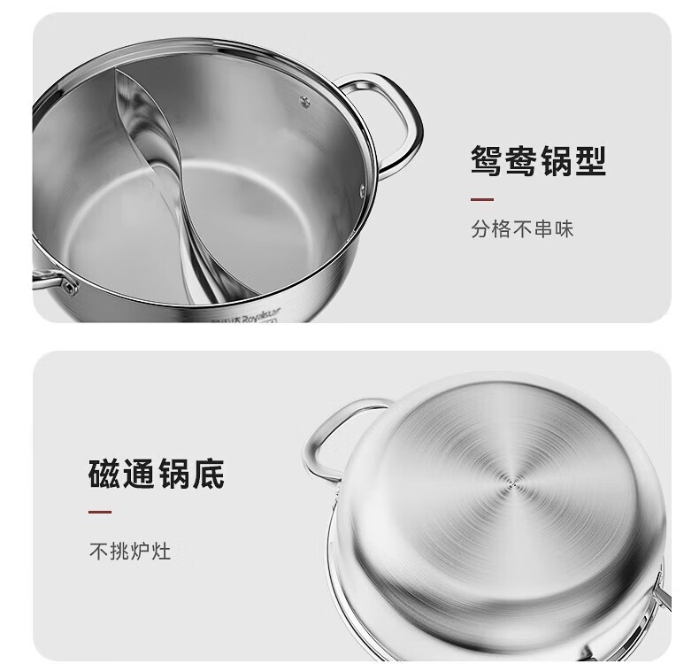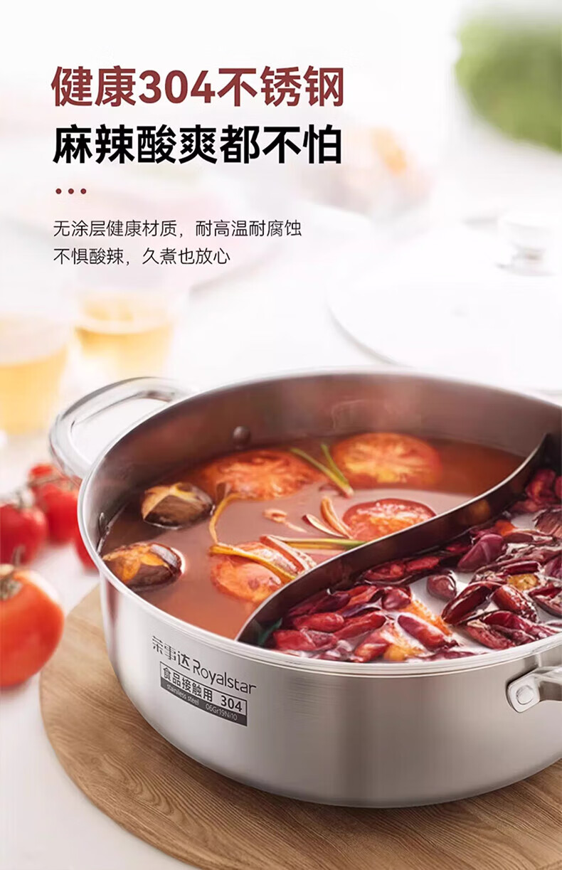 荣事达鸳鸯锅/清汤锅304不锈钢电磁炉专用加厚火锅盆火锅锅具家用 304鸳鸯锅 (赠汤漏勺+盖子) 34cm