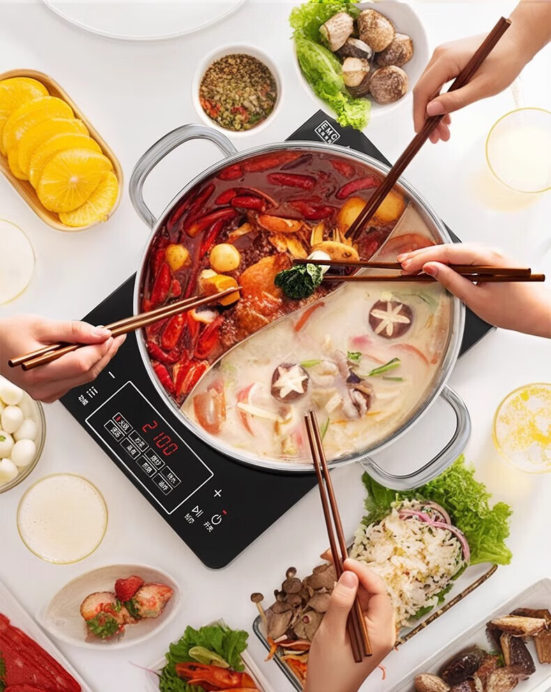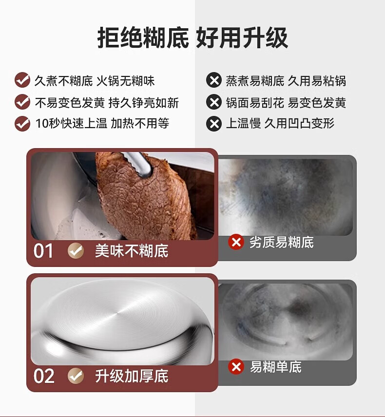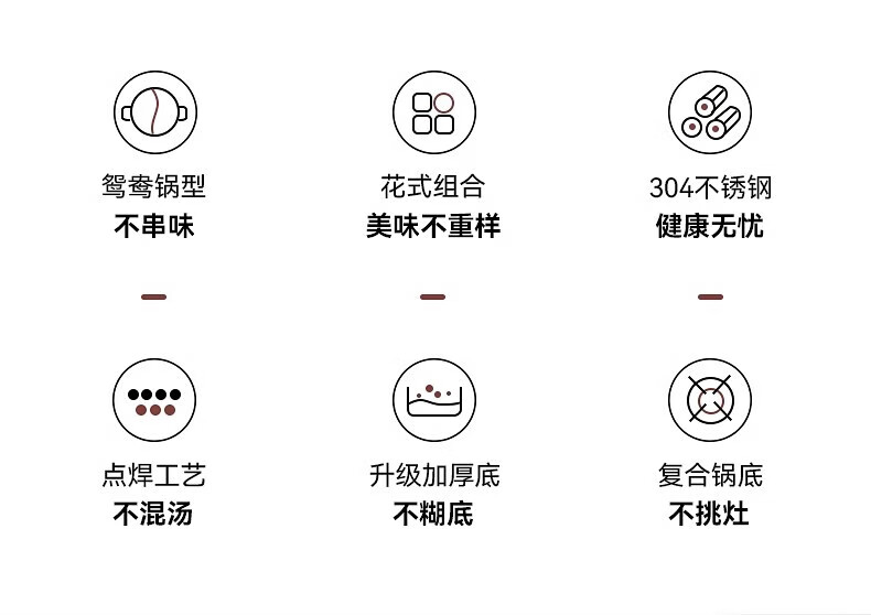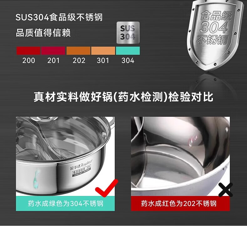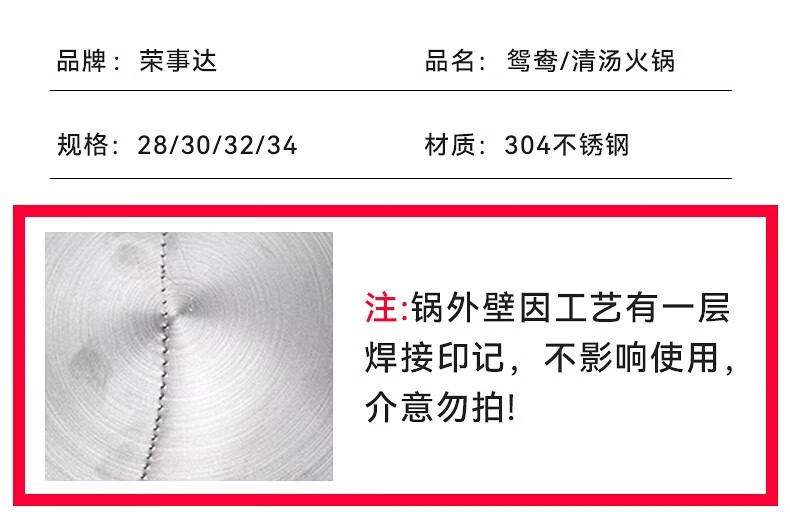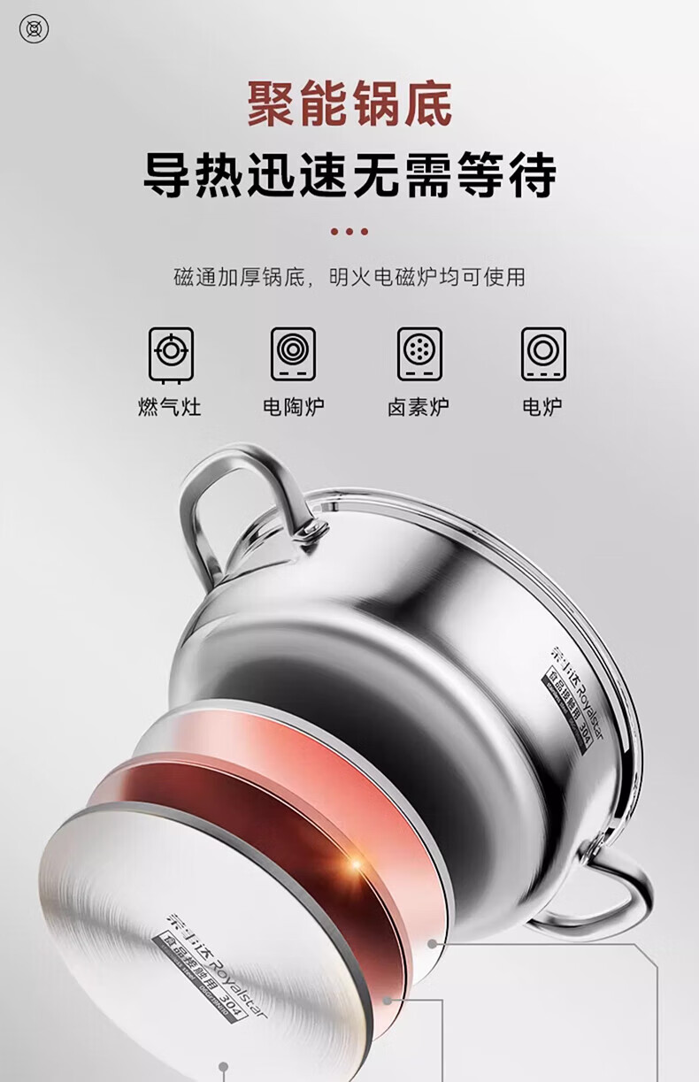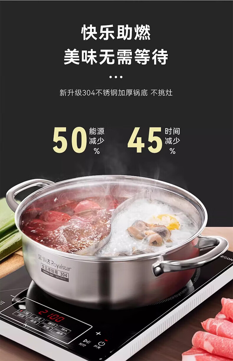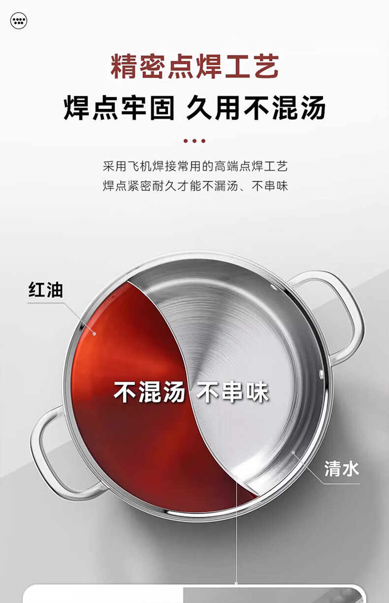 荣事达鸳鸯锅/清汤锅304不锈钢电磁炉专用加厚火锅盆火锅锅具家用 304鸳鸯锅 (赠汤漏勺+盖子) 34cm