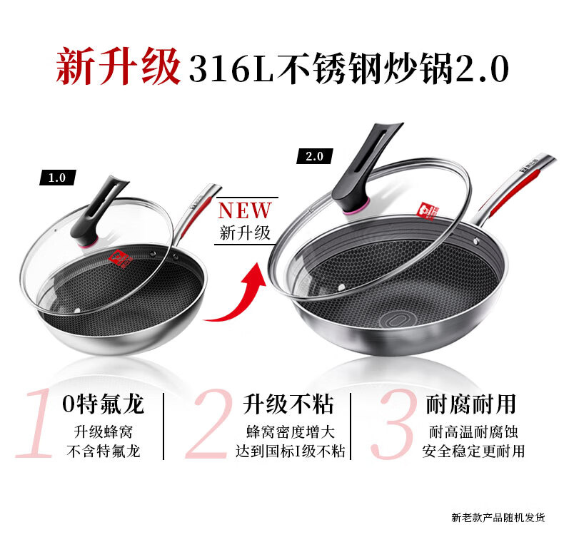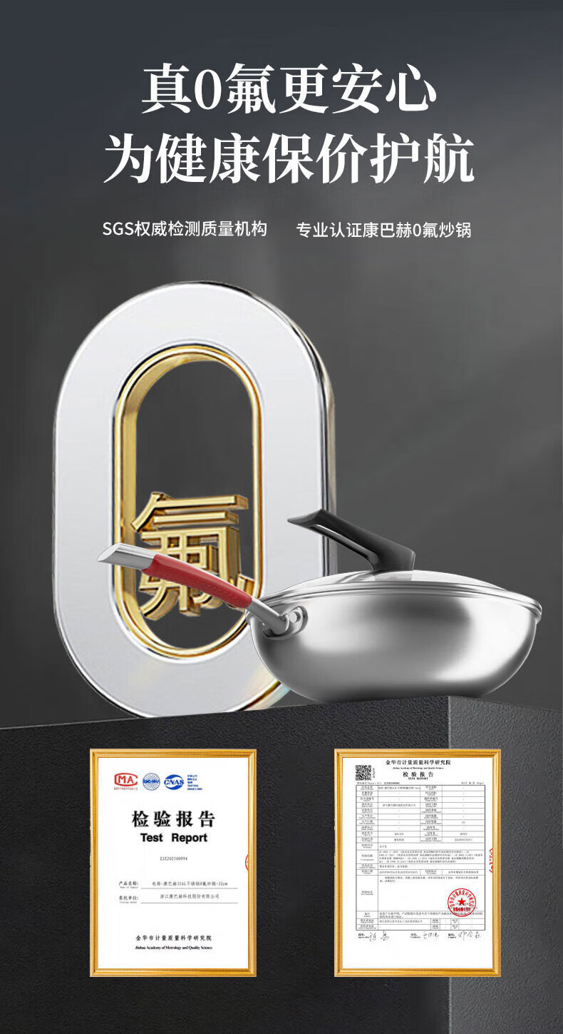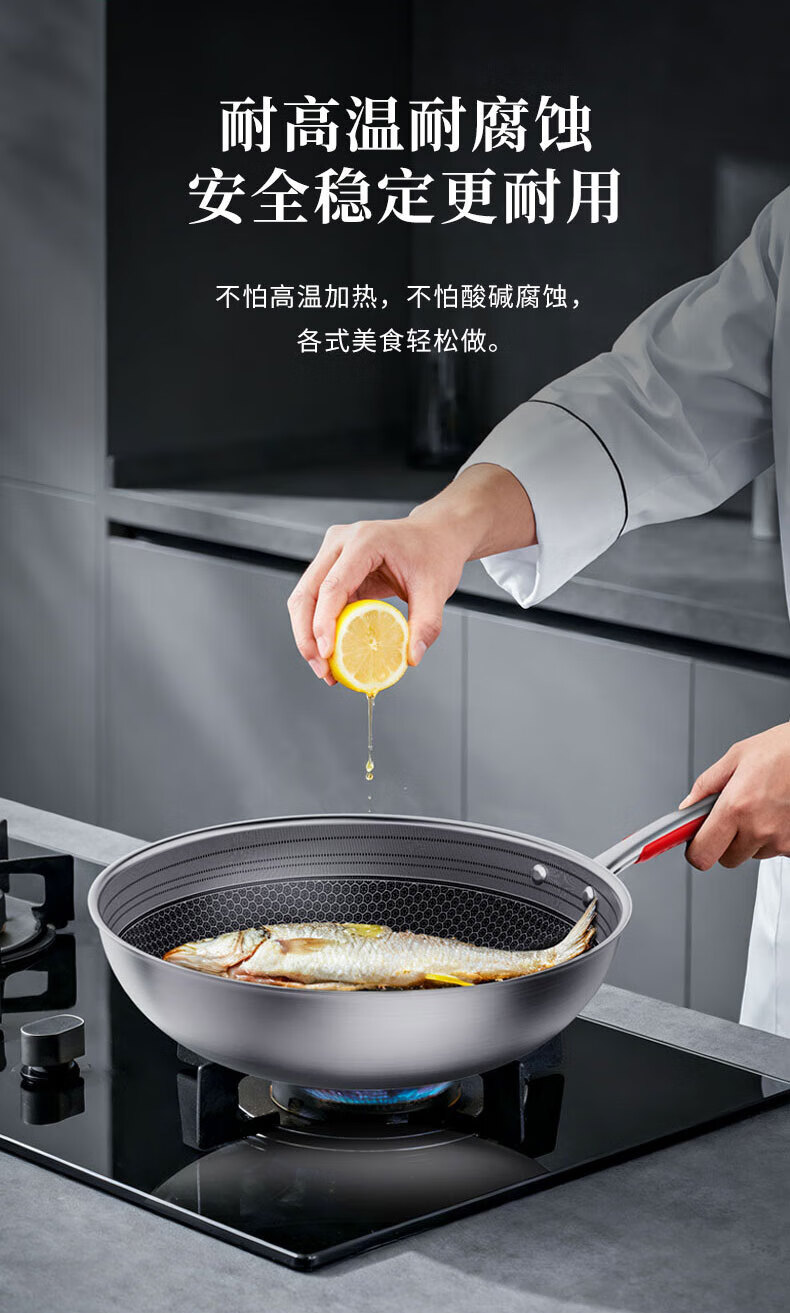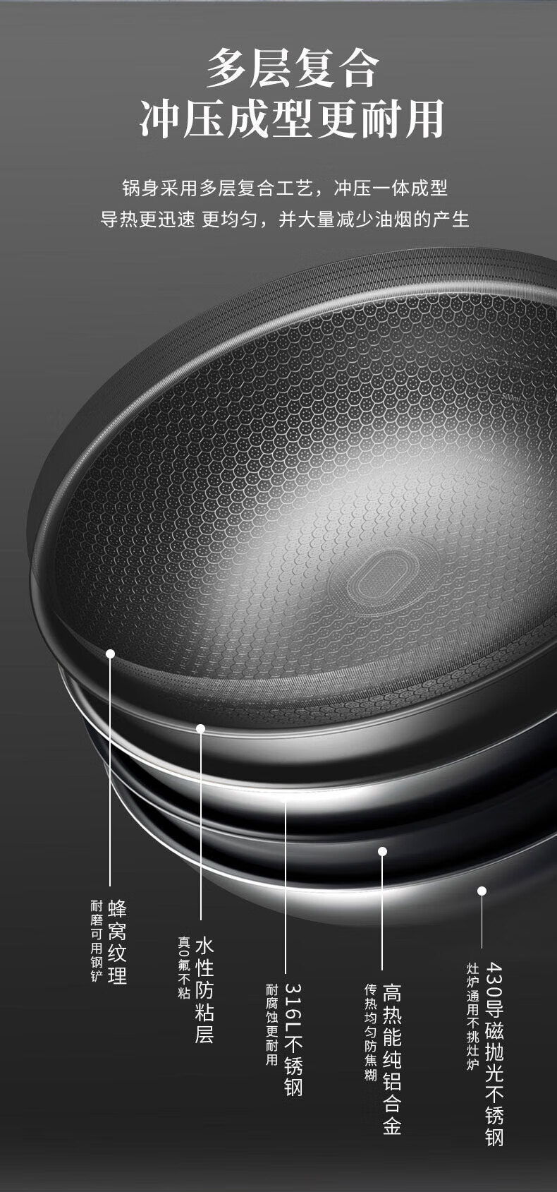 康巴赫炒锅316L不锈钢炒菜锅少油烟不粘锅家用电磁炉燃气灶通用32cm