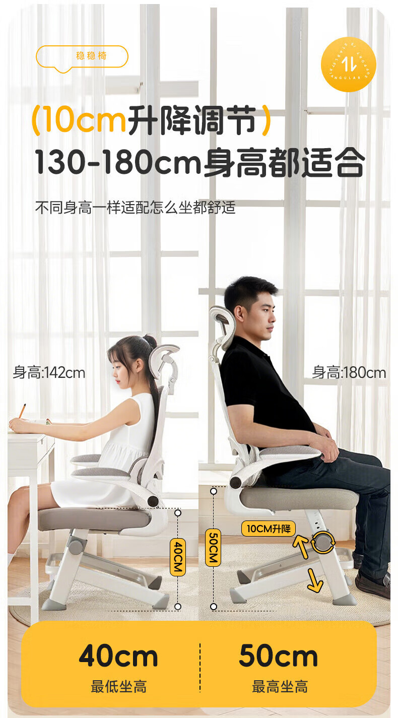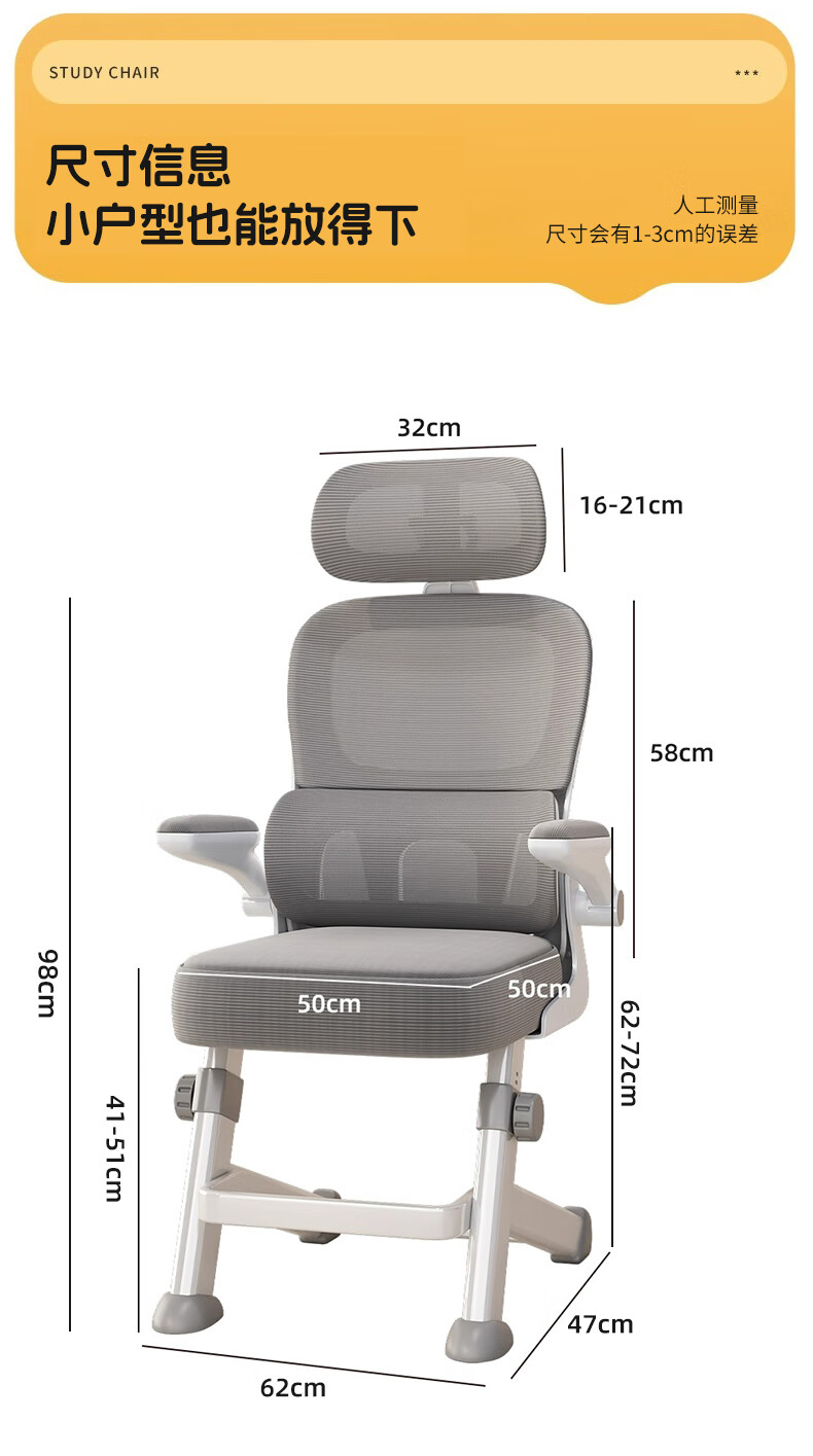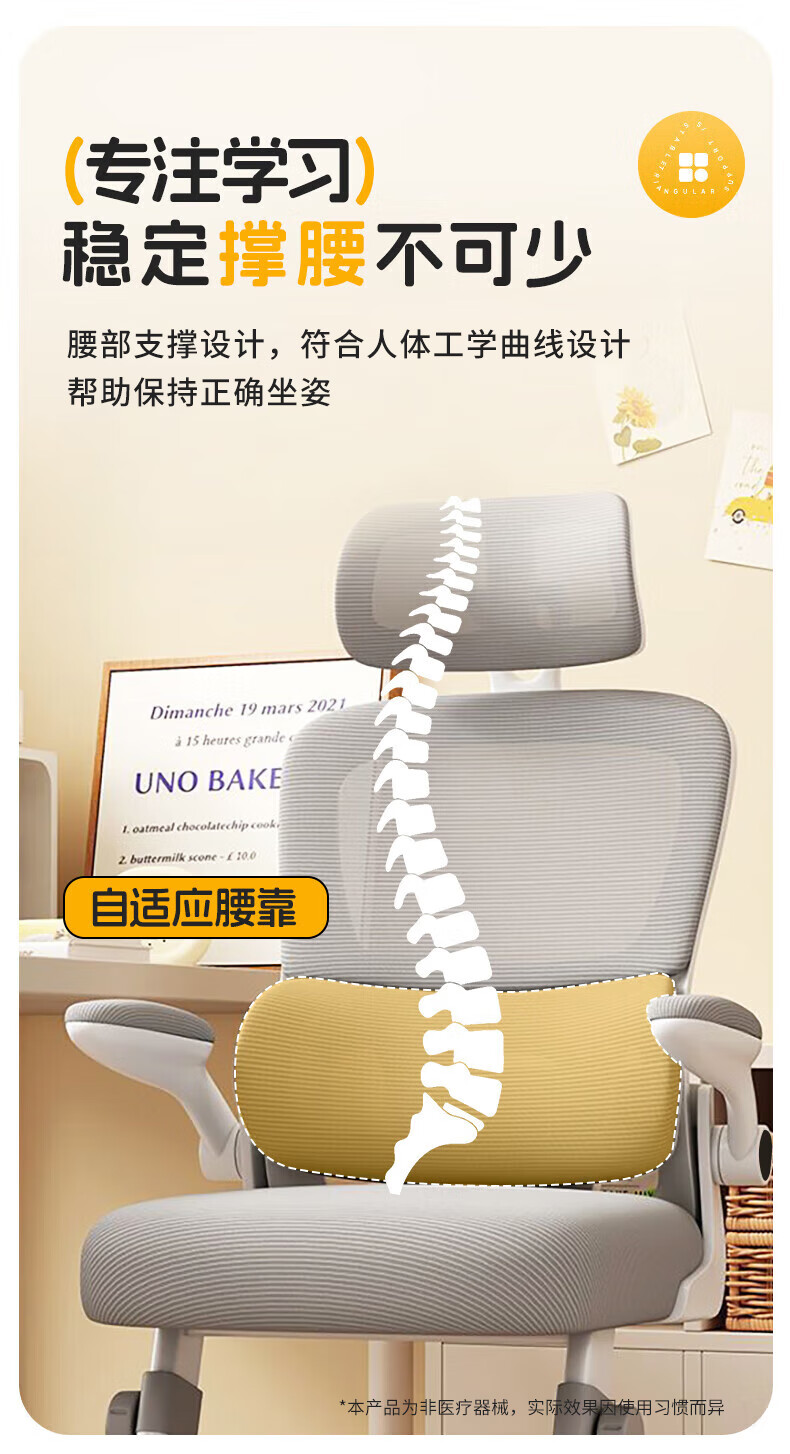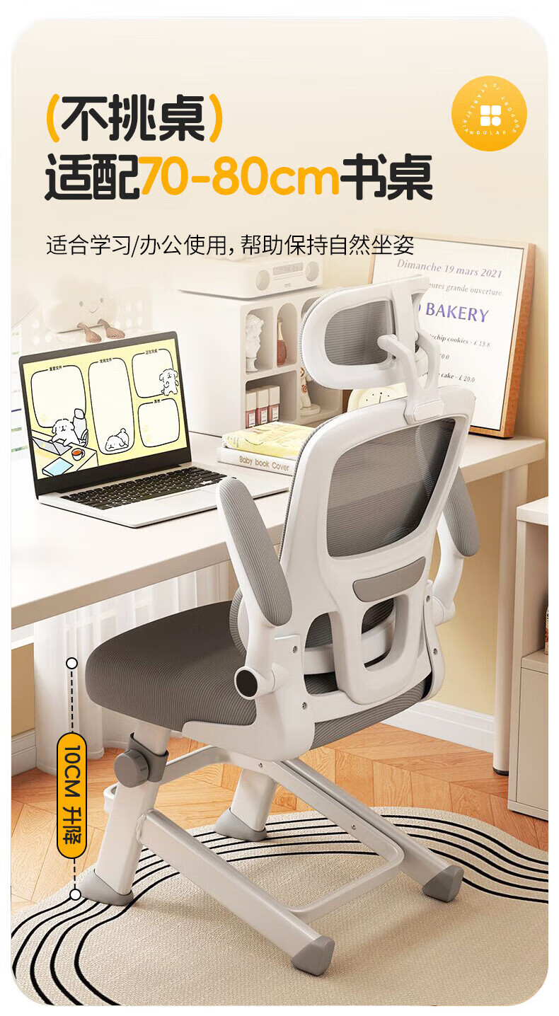 全品屋电脑椅学习椅办公椅人体工学椅学生椅撑腰椅子转椅电竞椅可升降