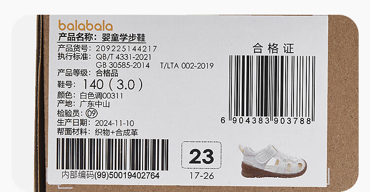 巴拉巴拉童鞋宝宝学步鞋儿童凉鞋鞋子婴儿2025夏季沙滩鞋透气209225144217