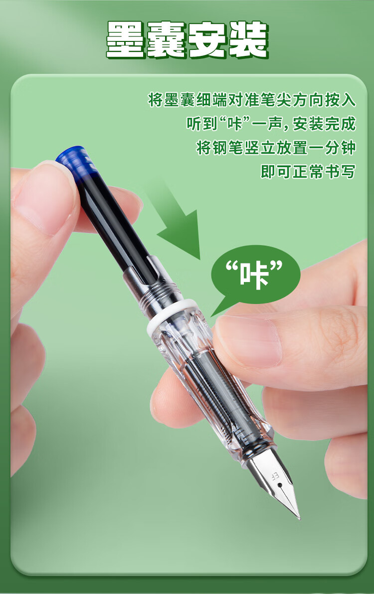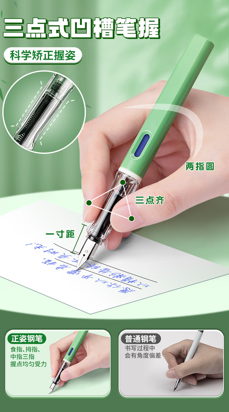 真彩(TRUECOLOR)学生钢笔纯蓝小学三年级专用EF尖3.4mm口径书法练字可替换墨囊书写正姿钢笔套装不可擦 4支/盒1069