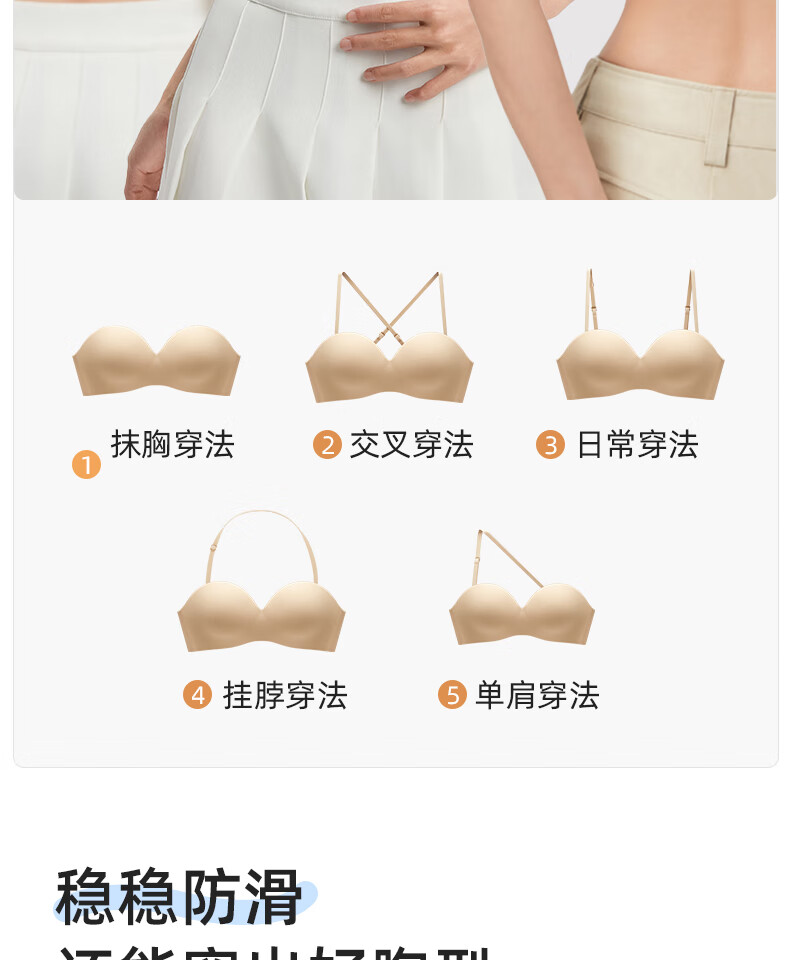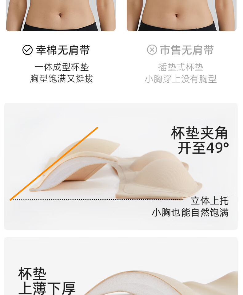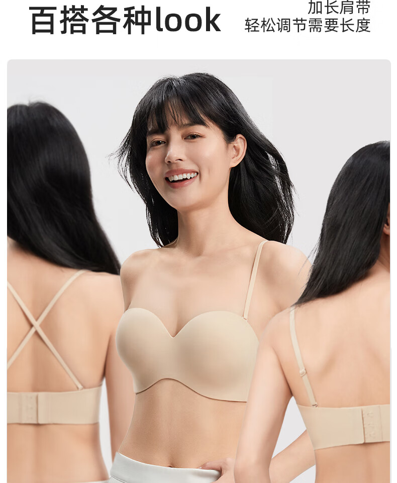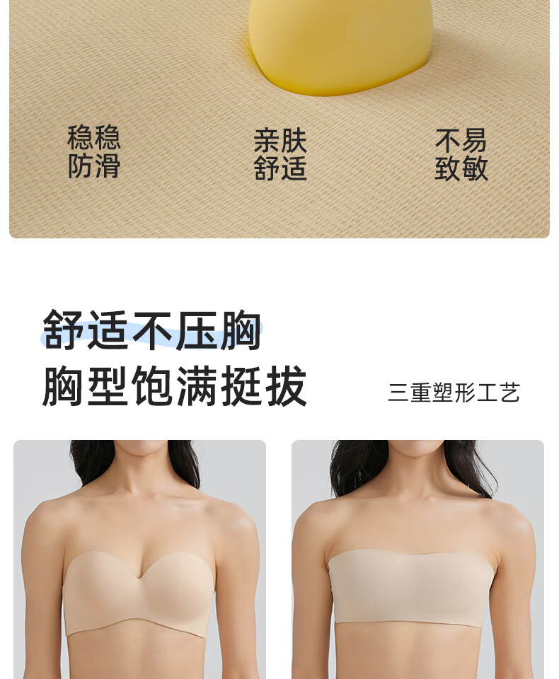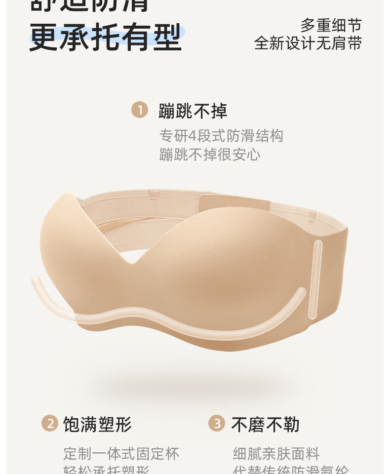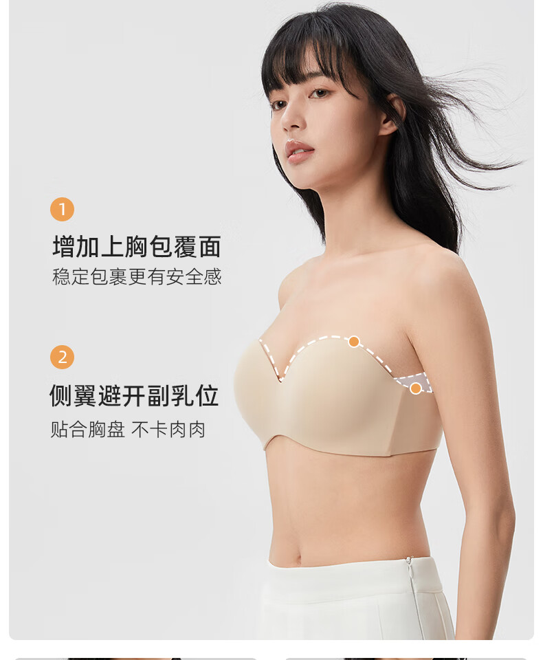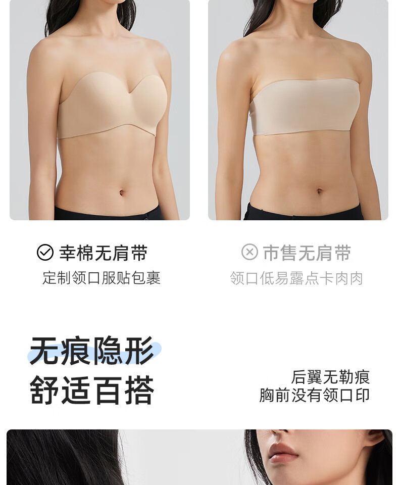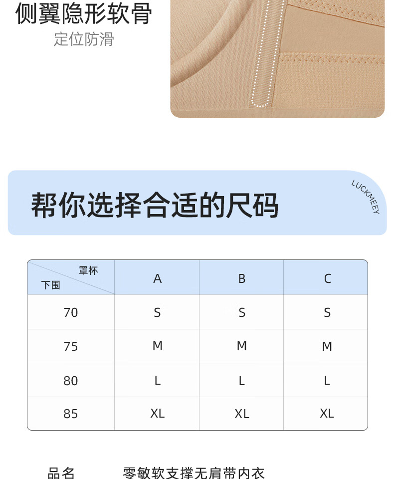 幸棉(LUCKMEEY)零敏无肩带文胸防滑裹胸式无痕隐形舒适塑形小胸内衣 肤色 M (75ABC)