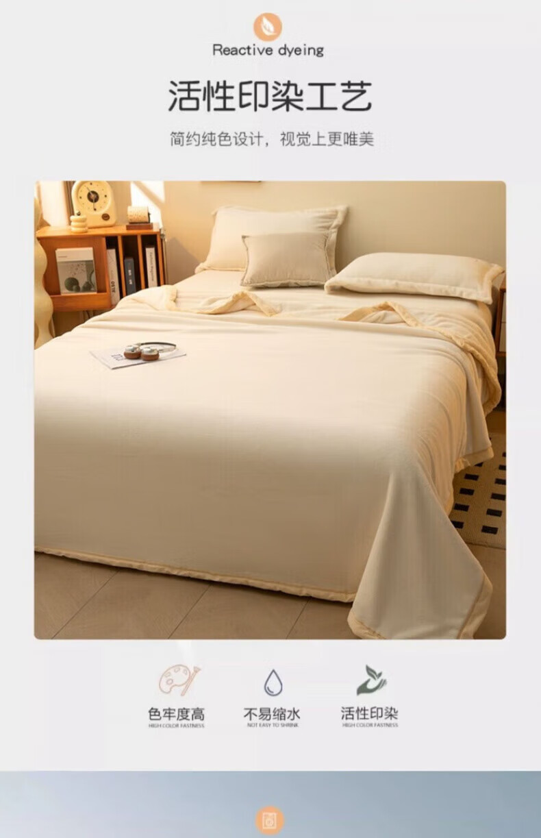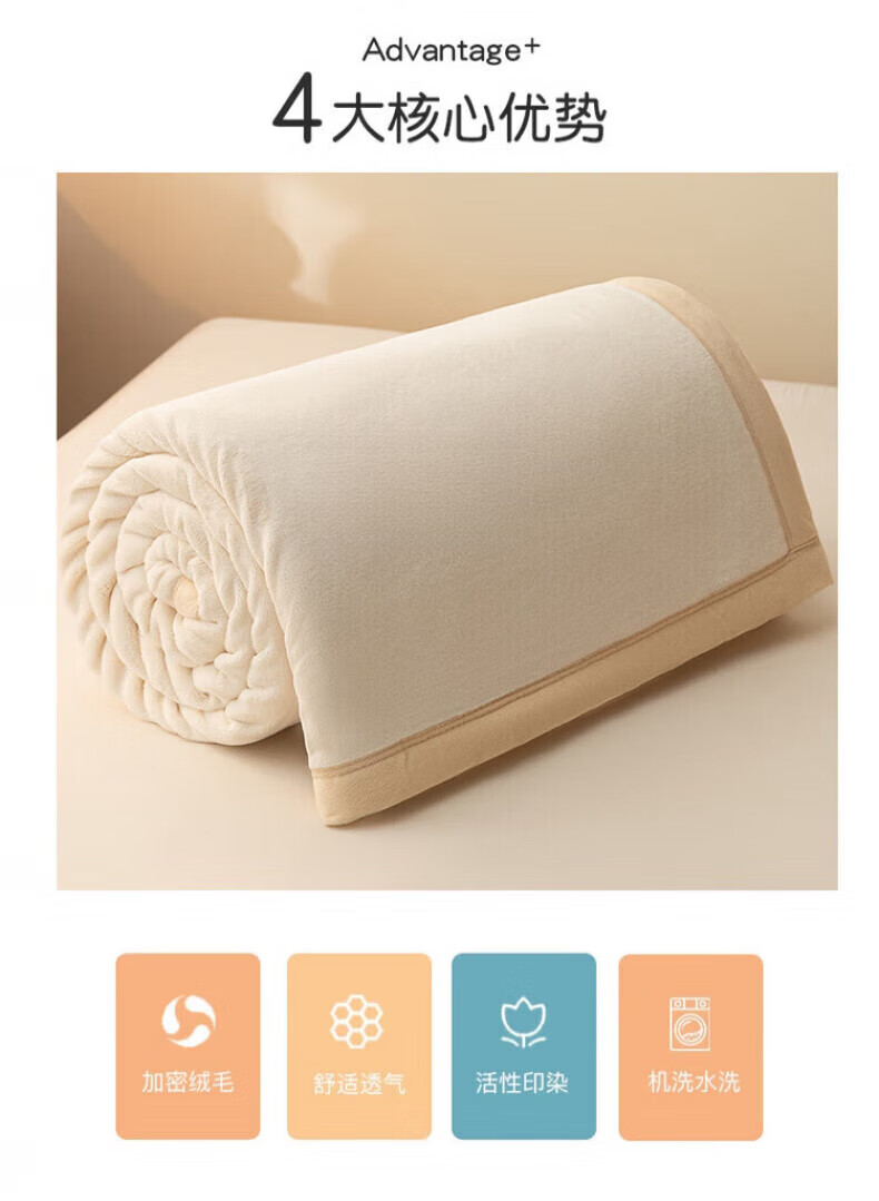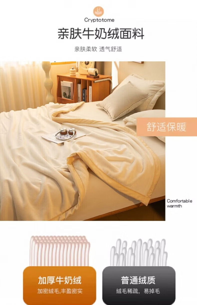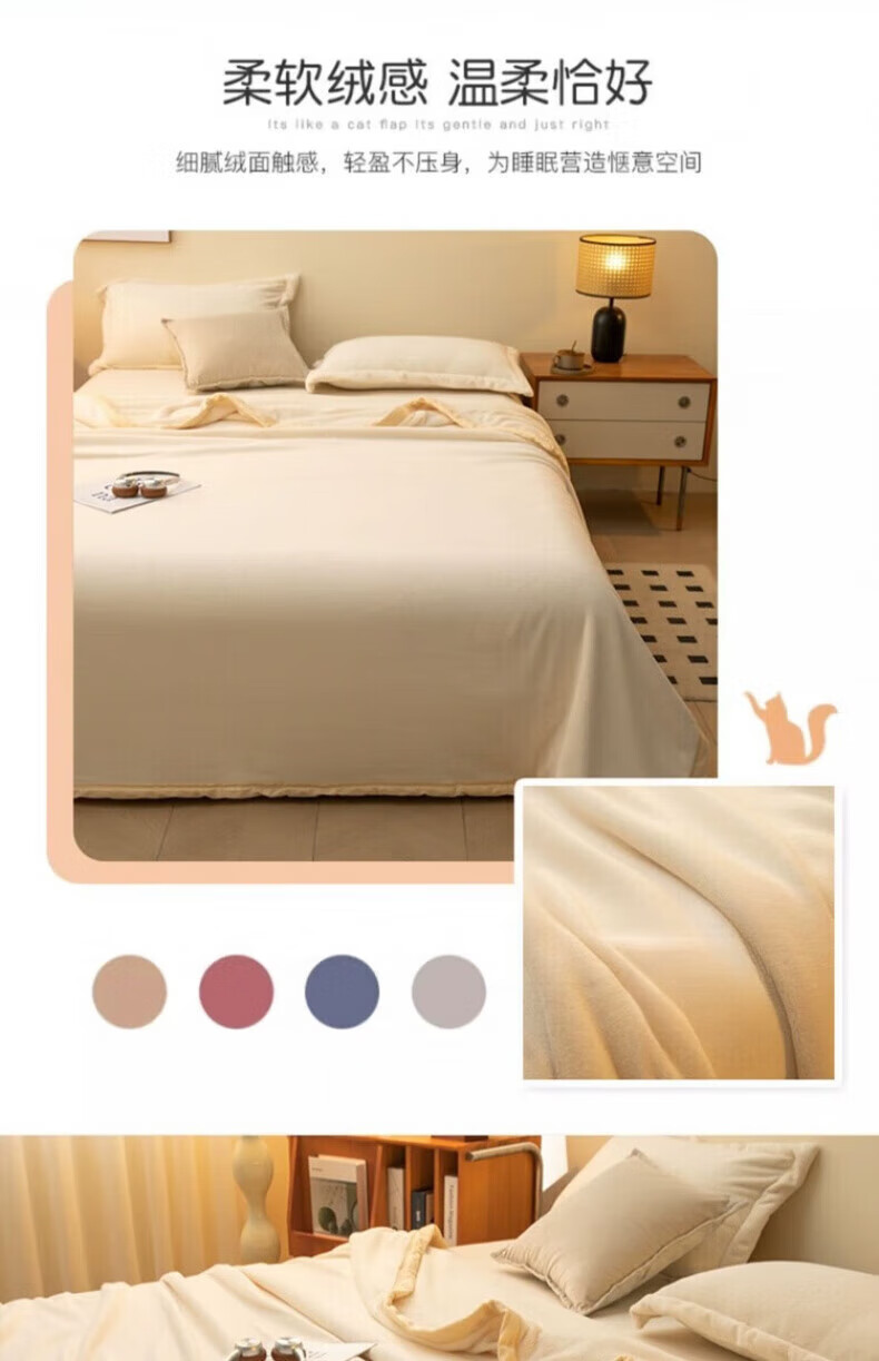 雅鹿纯色秋冬季牛奶绒保暖四件套珊瑚绒床上绒加厚法兰绒被套三件套 米杏+茶咖【高克重牛奶绒 厚实保暖】 1.8m四件套 床单款 (被套200*230cm)