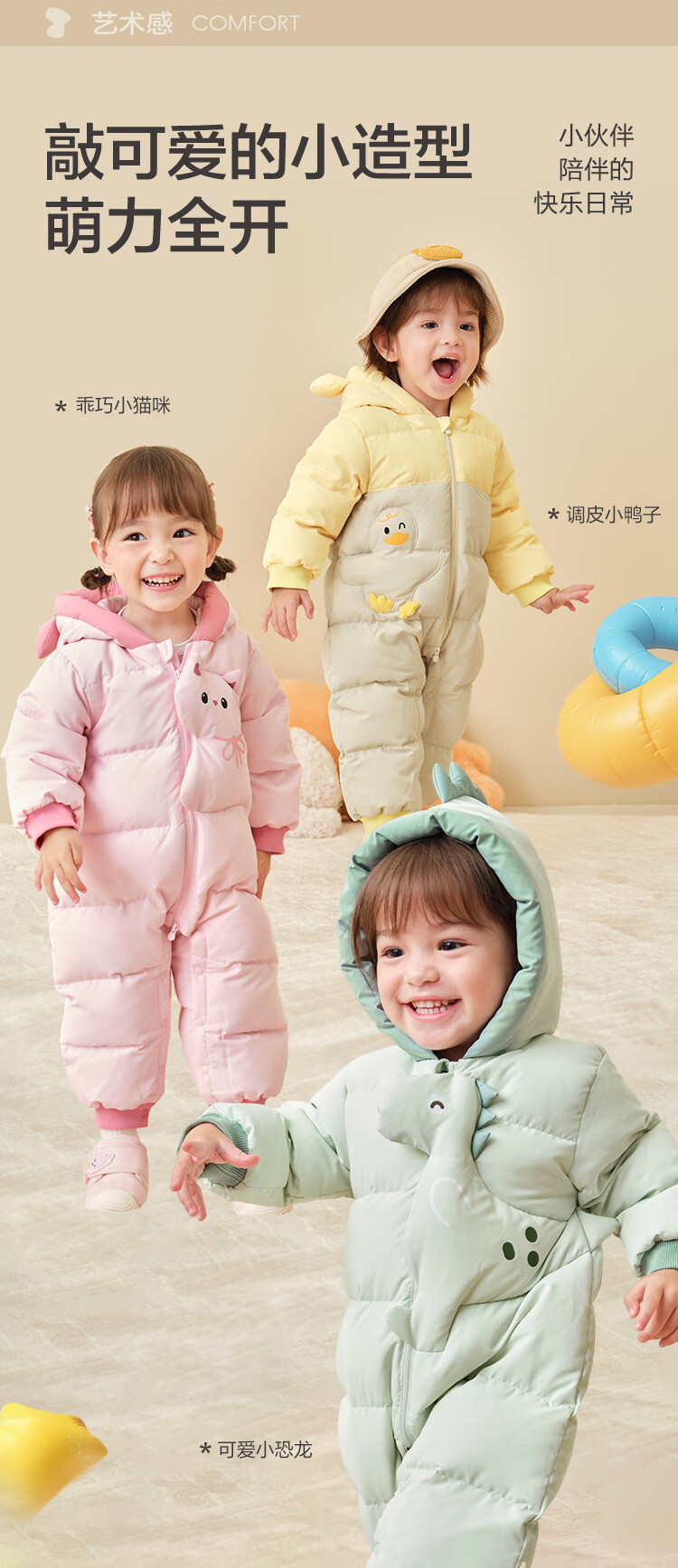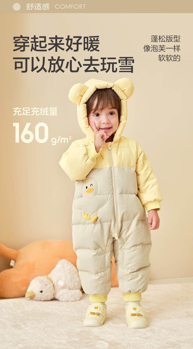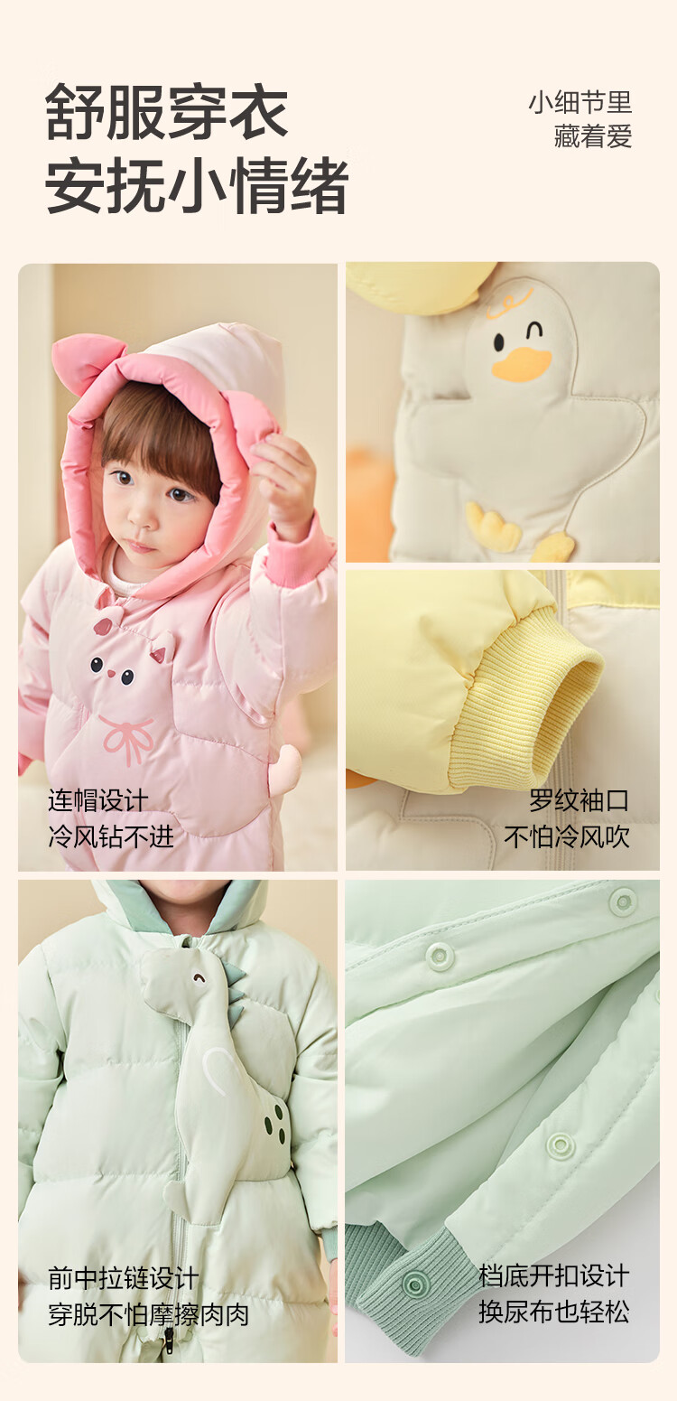 巴拉巴拉童装婴儿羽绒服连体衣2025宝宝冬装加厚哈衣爬服萌趣208425120214