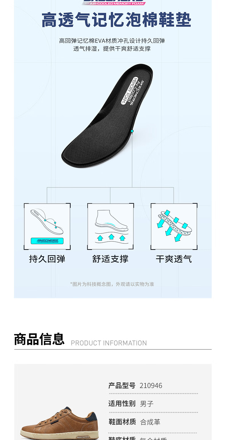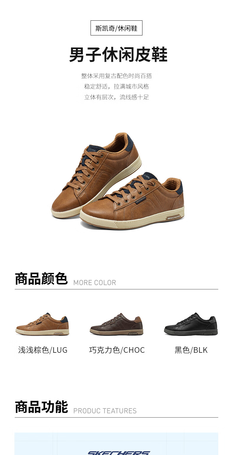 斯凯奇(Skechers)男鞋秋季复古商务板鞋休闲鞋软底减震百搭舒适通勤平底鞋210946