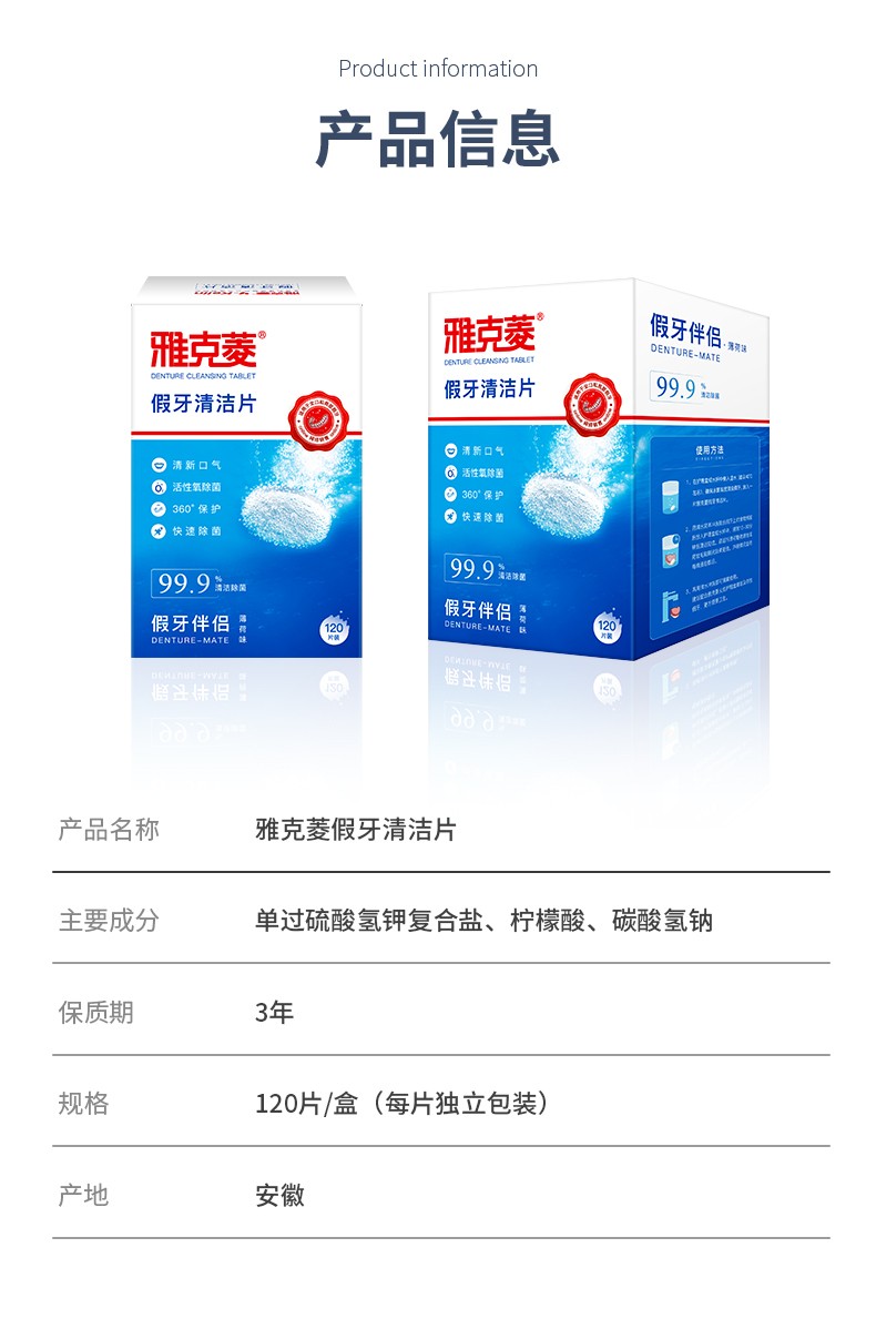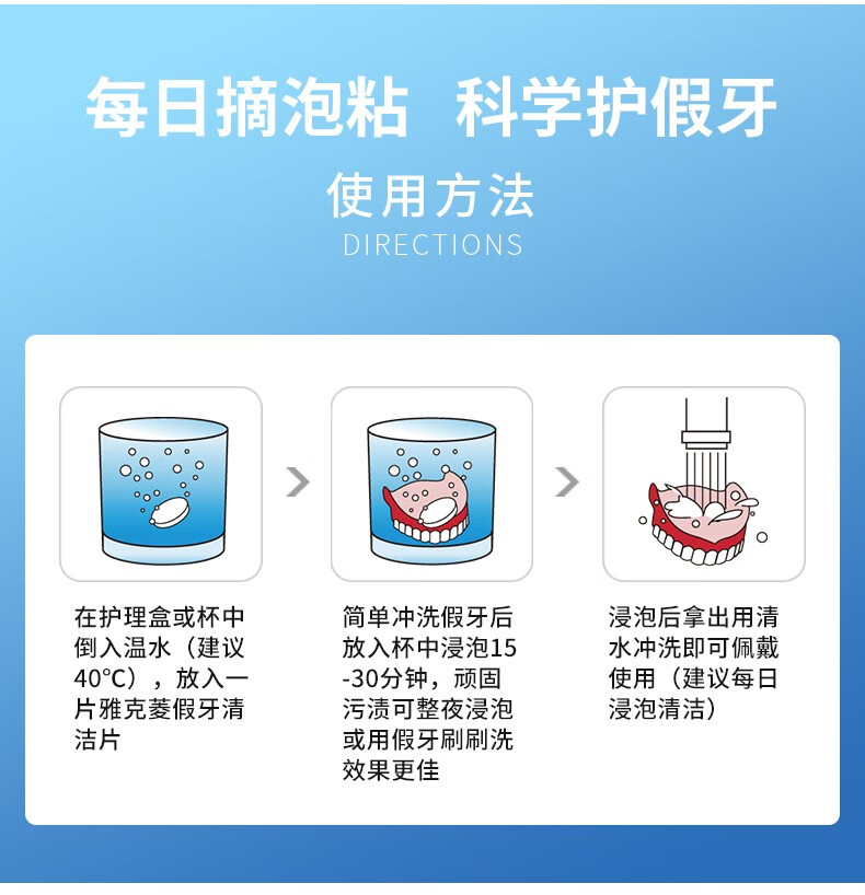 雅克菱 假牙清洁片120片泡腾全口半口义齿保持器牙套清洗剂官方旗舰正品 120片