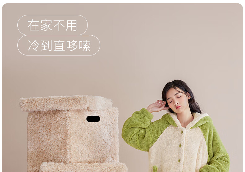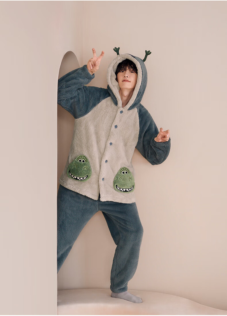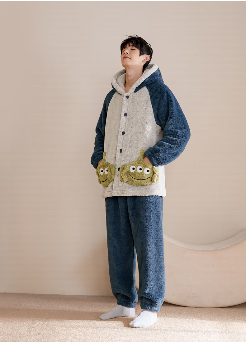静韵【超柔软】三眼仔睡衣女秋冬珊瑚绒加厚保暖软棉棉家居服套装男