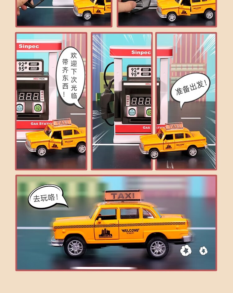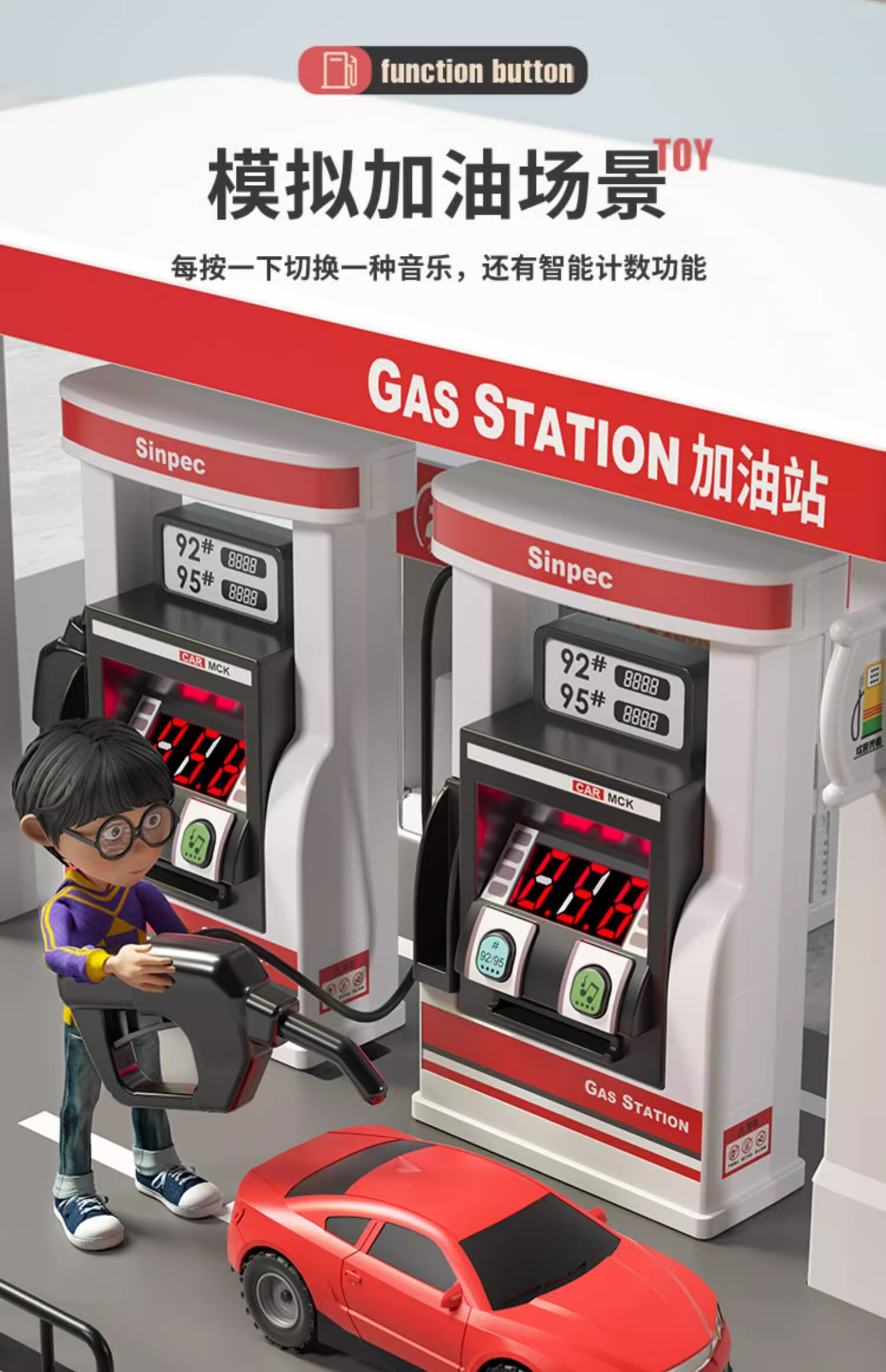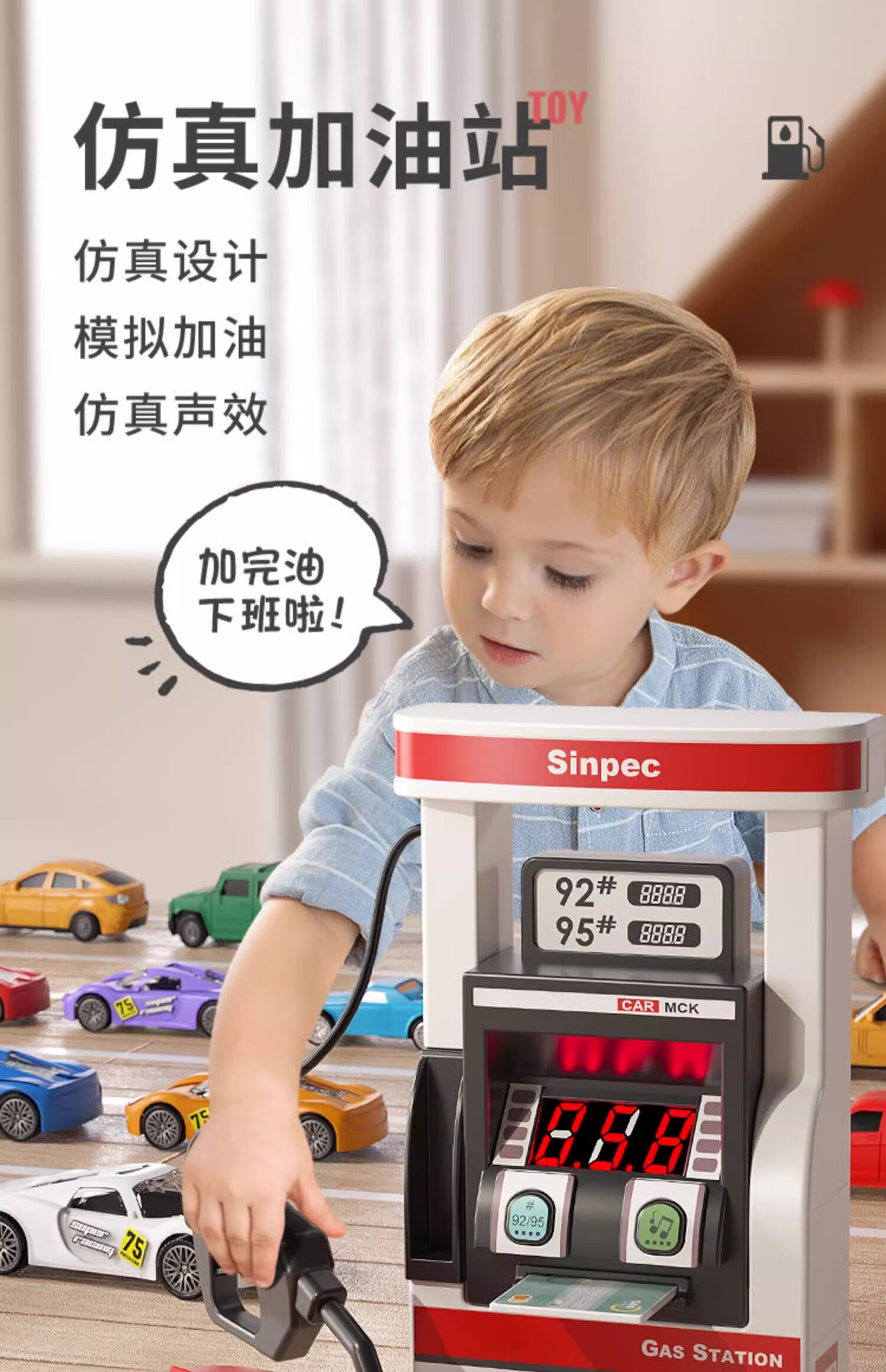 妈宝孖宝加油站玩具仿真儿童小汽车男孩3-6岁2套装生日礼物宝宝模拟加油枪