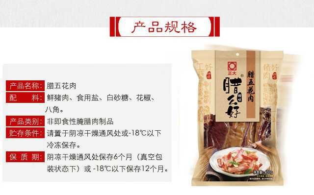 正大腊么好腊五花肉400g/袋 冷熏烟熏 腊肉腊肠香肠 湖北特色腊味特产