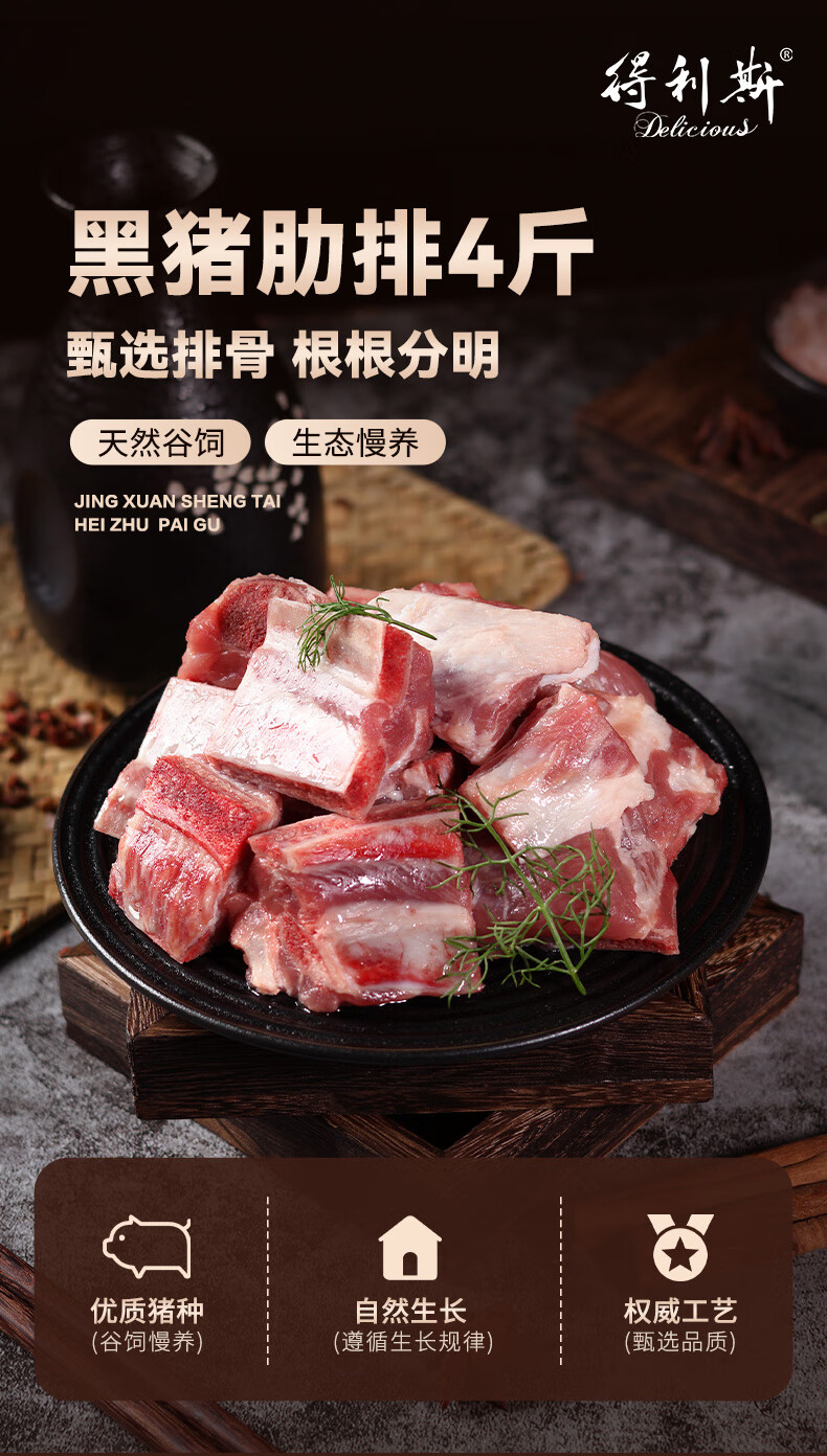 得利斯黑猪肋排净重4斤 猪排骨 肋排块 生鲜食材【源头直发】